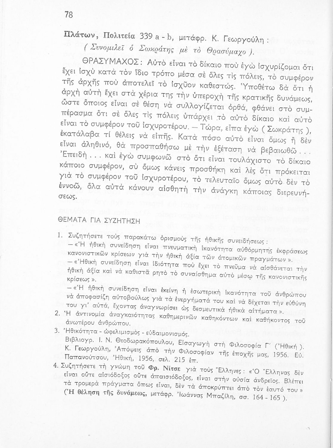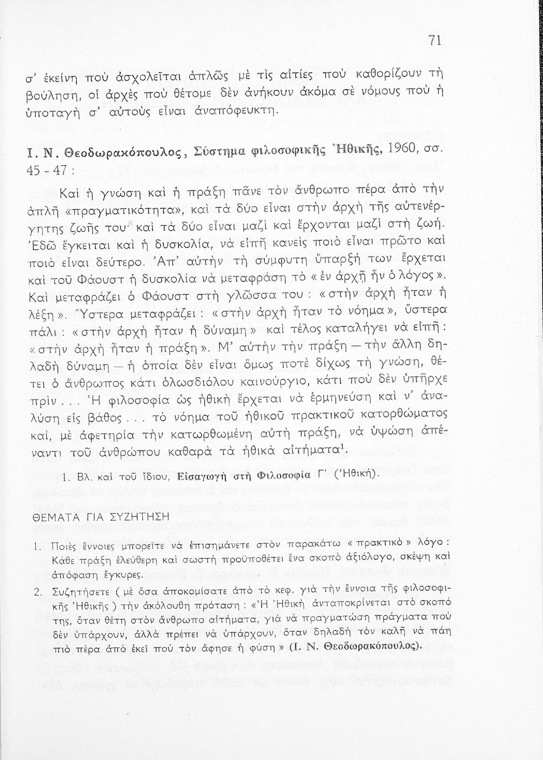 Σχολικό εγχειρίδιο Φιλοσοφίας για την ΣΤ΄ Γυμνασίου που περιέχει αποσπάσματα από διάσημα φιλοσοφικά κείμενα τόσο της ελληνικής αρχαιότητας όσο και της σύγχρονης ευρωπαϊκής σκέψης και θέματα προς συζήτηση. ...