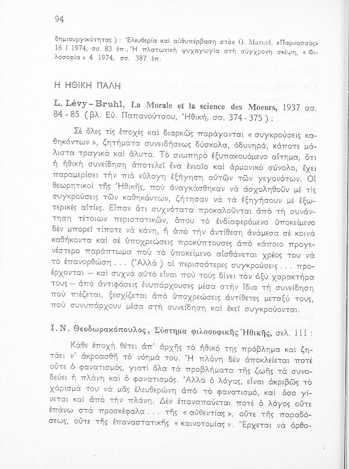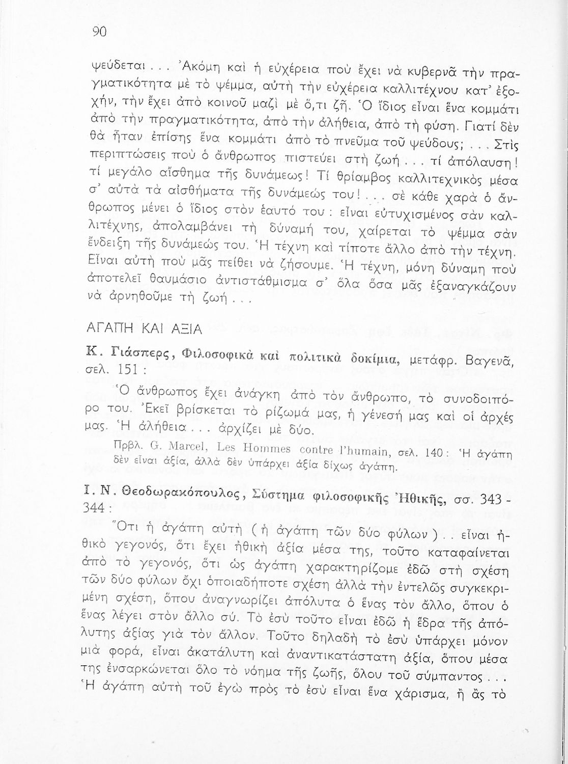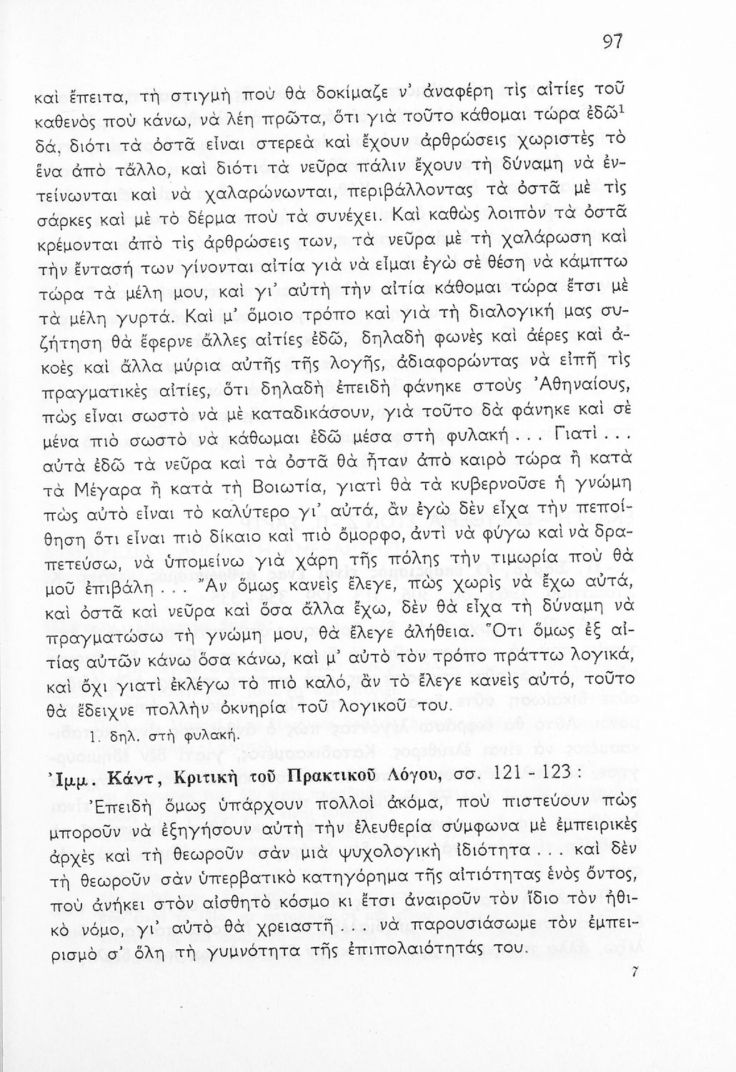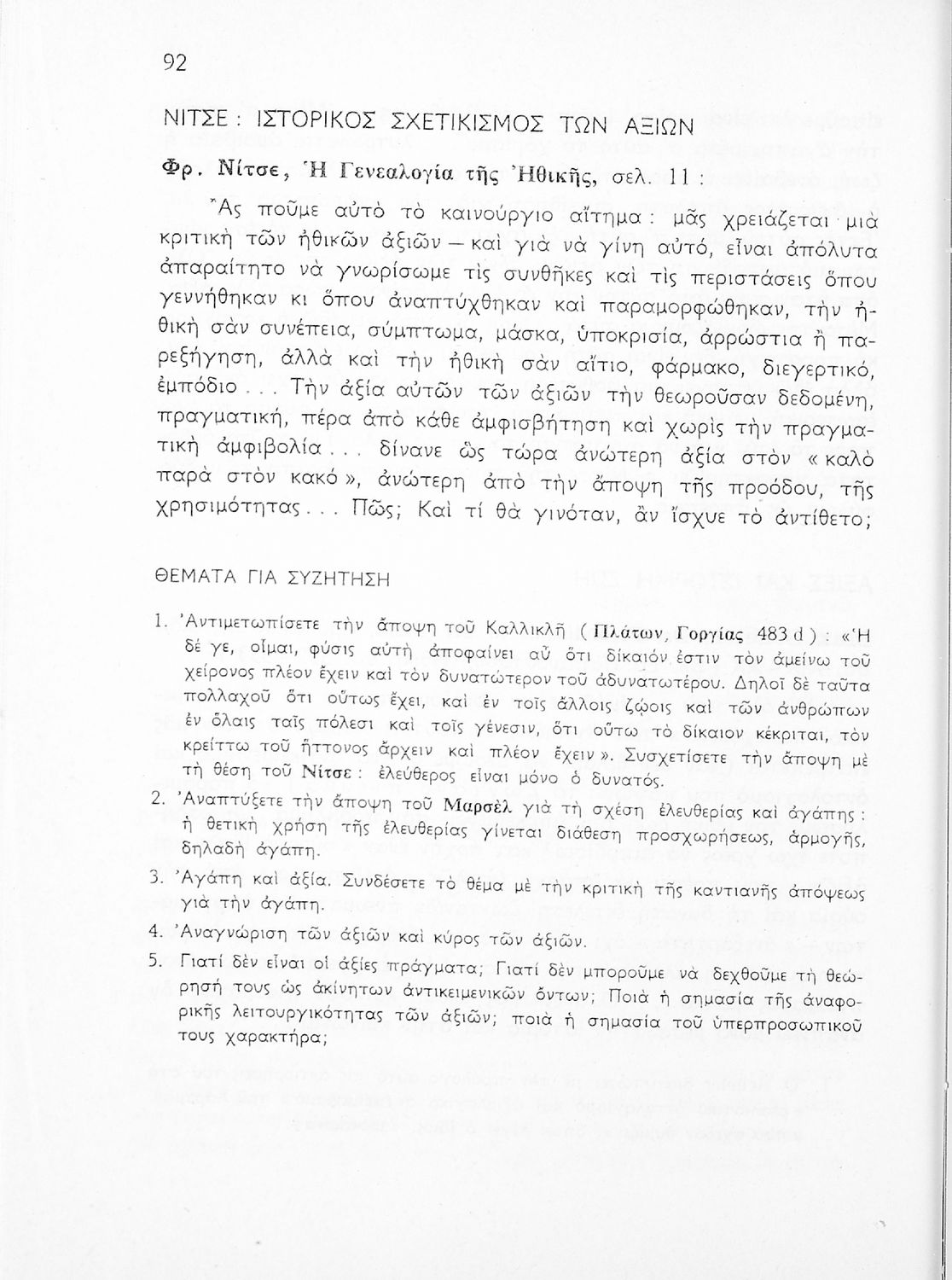 Σχολικό εγχειρίδιο Φιλοσοφίας για την ΣΤ΄ Γυμνασίου που περιέχει αποσπάσματα από διάσημα φιλοσοφικά κείμενα τόσο της ελληνικής αρχαιότητας όσο και της σύγχρονης ευρωπαϊκής σκέψης και θέματα προς συζήτηση. Περιλαμβάνει και λεξιλόγιο φιλοσοφικών όρων και ειδικό κεφάλαιο για τους προσωκρατικούς.