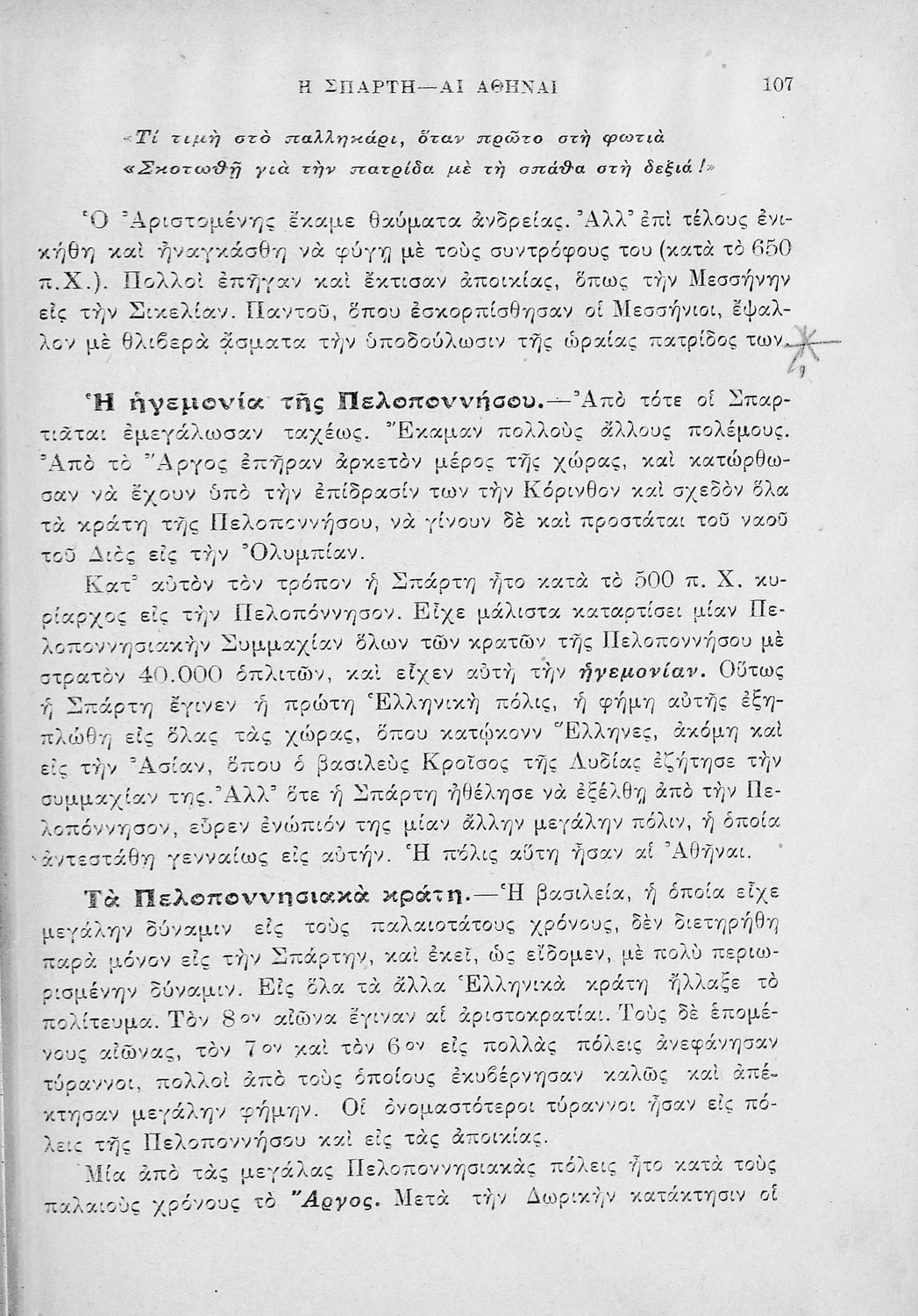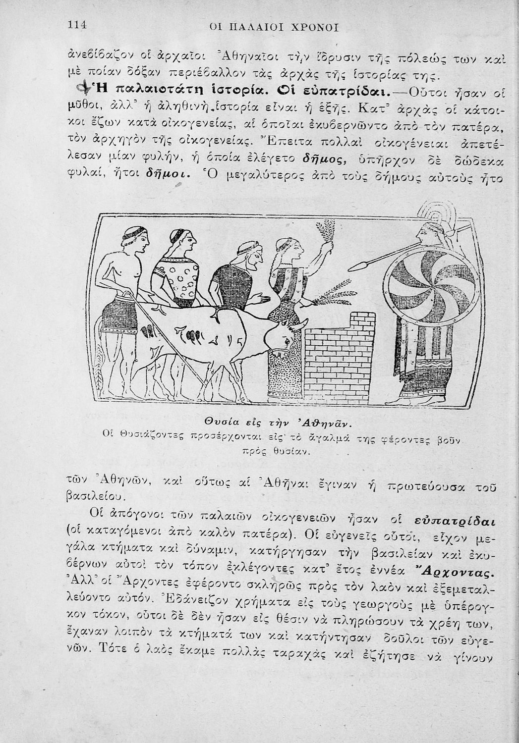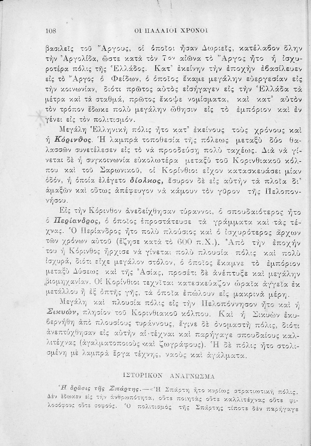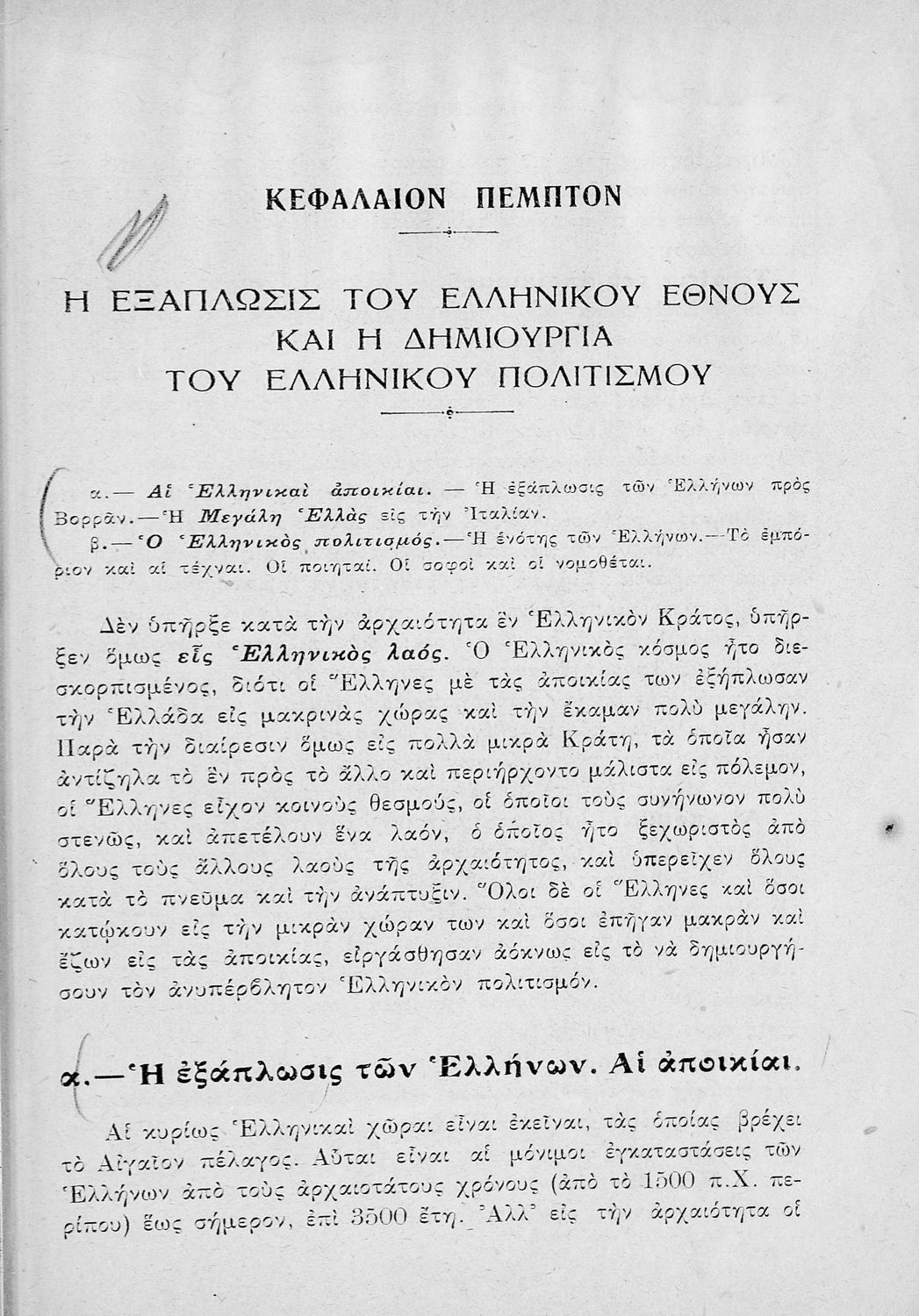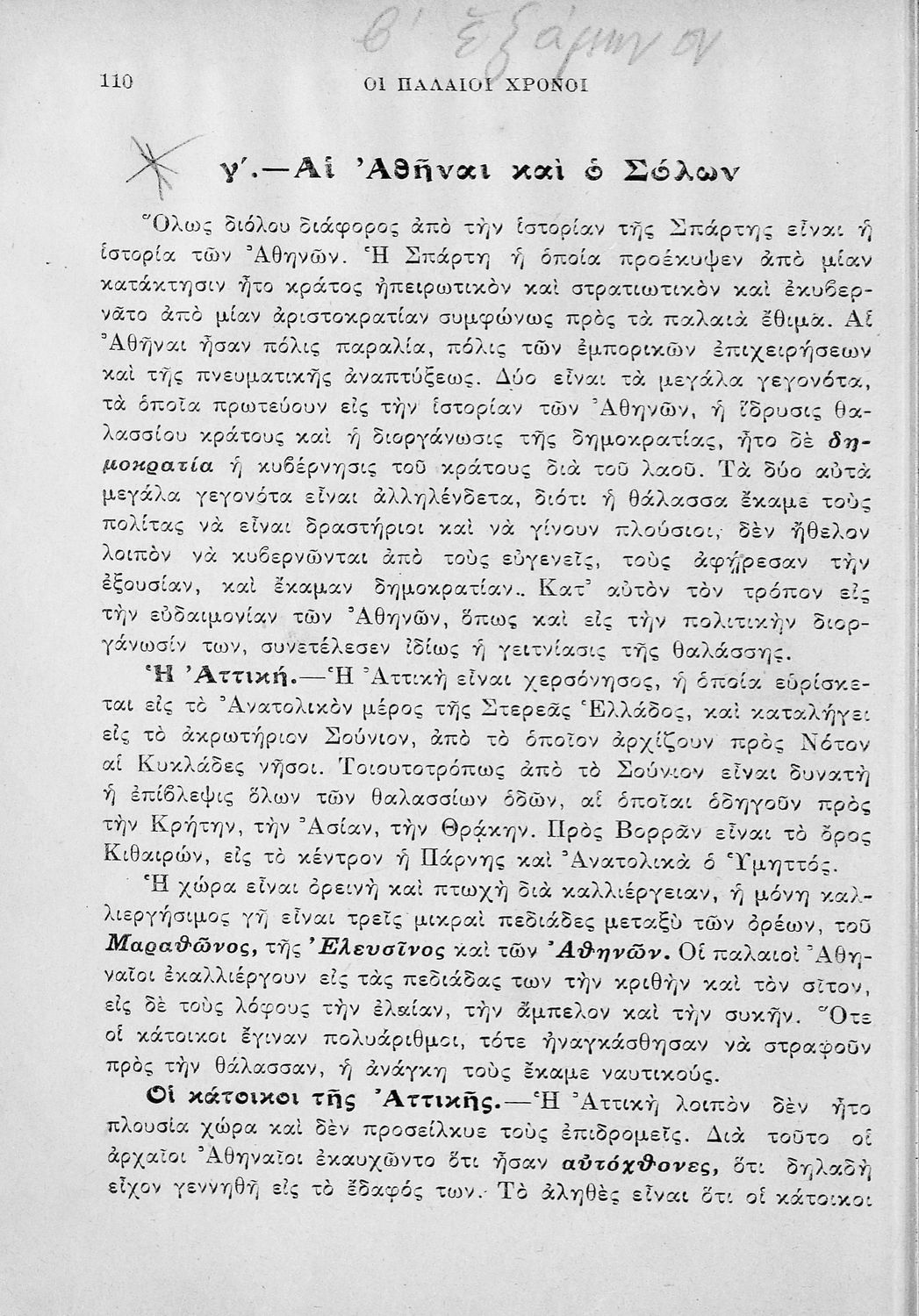 Σχολικό εγχειρίδιο Ιστορίας Α΄ Γυμνασίου που υιοθετεί το σχήμα του Παπαρρηγόπουλου και καλύπτει την περίοδο από τα προϊστορικά χρόνια μέχρι και τη Μακεδονική Ηγεμονία.