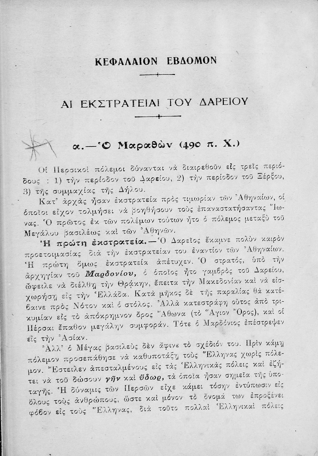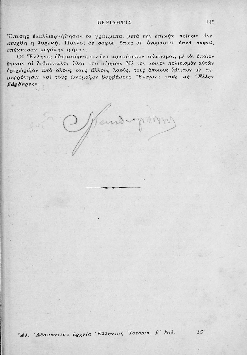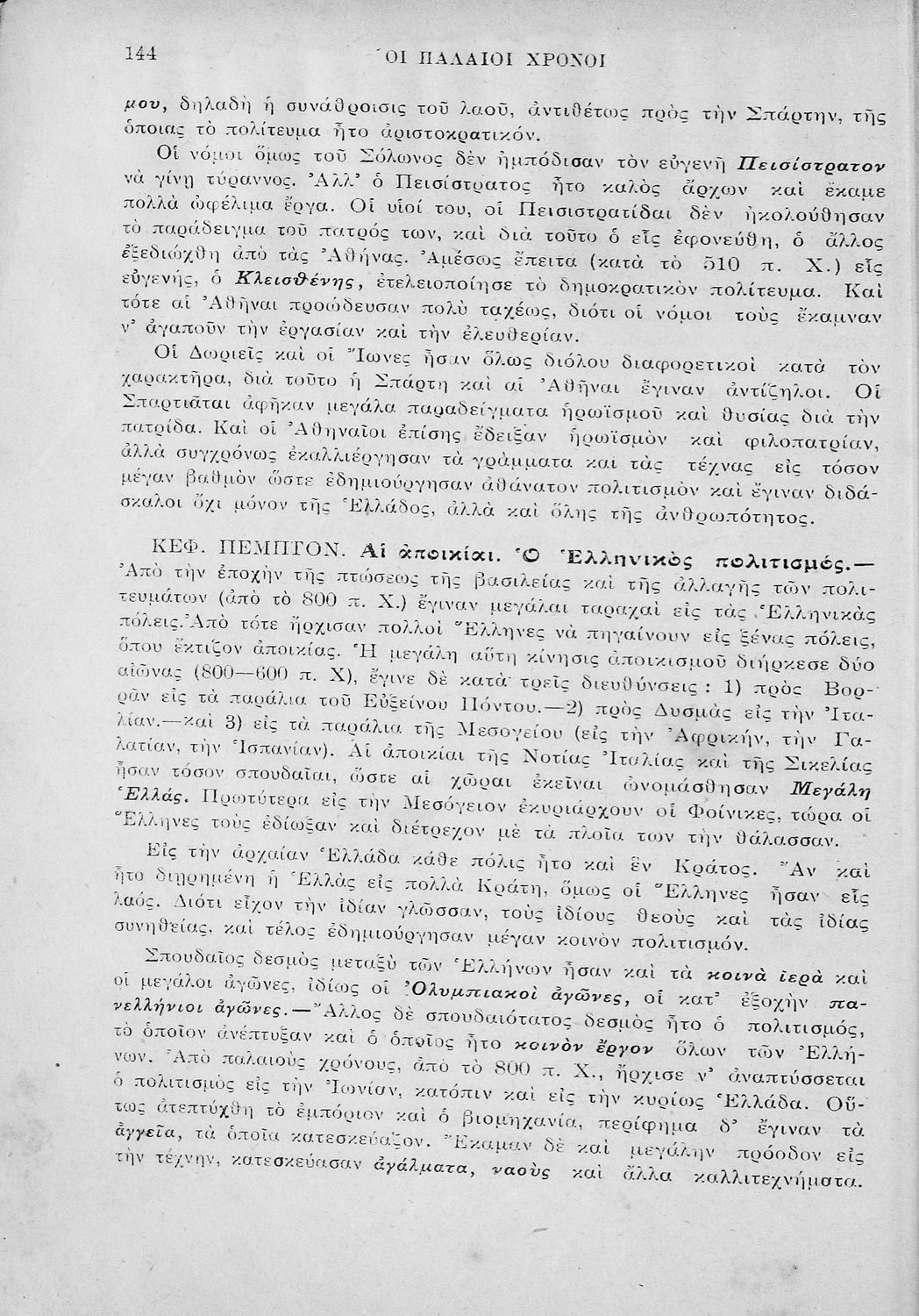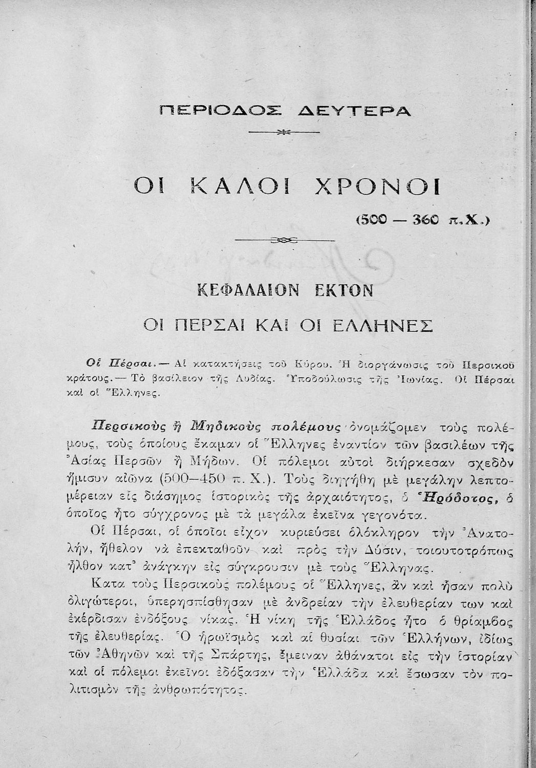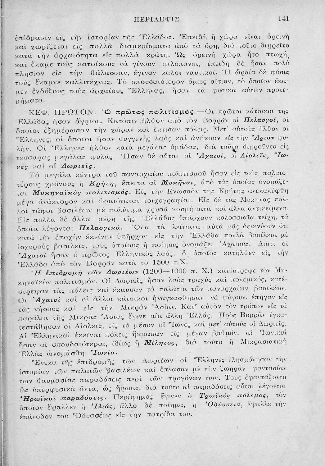 Σχολικό εγχειρίδιο Ιστορίας Α΄ Γυμνασίου που υιοθετεί το σχήμα του Παπαρρηγόπουλου και καλύπτει την περίοδο από τα προϊστορικά χρόνια μέχρι και τη Μακεδονική Ηγεμονία.