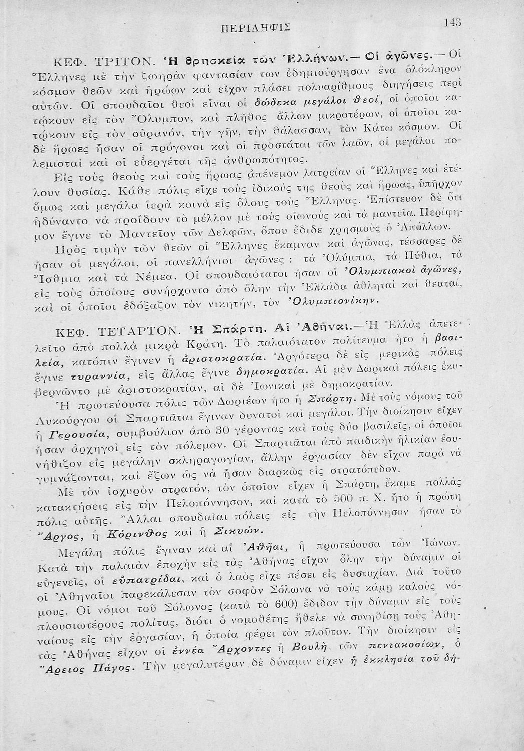 Σχολικό εγχειρίδιο Νέων Ελληνικών Γ΄ Γυμνασίου και Α' Αστικού Σχολείου που περιέχει πεζά και ποιήματα Ελλήνων συγγραφέων εμπνευσμένα από τη θρησκευτική και κοινωνική ζωή, την ελληνική μυθολογία, την αρχαία και