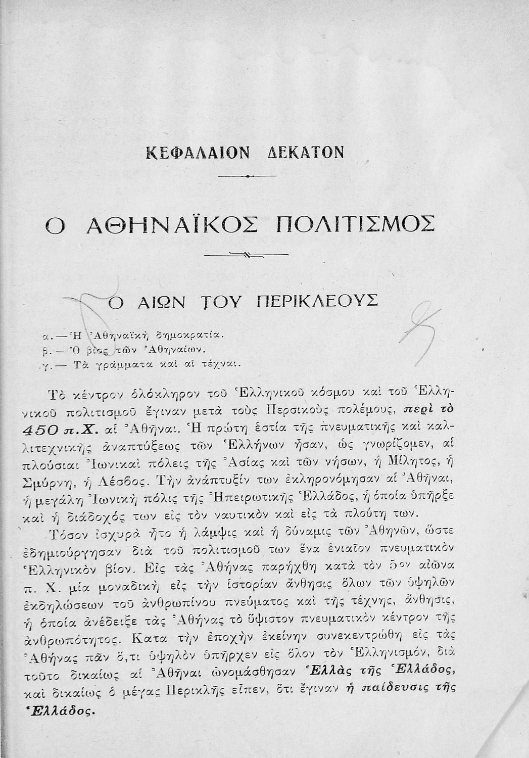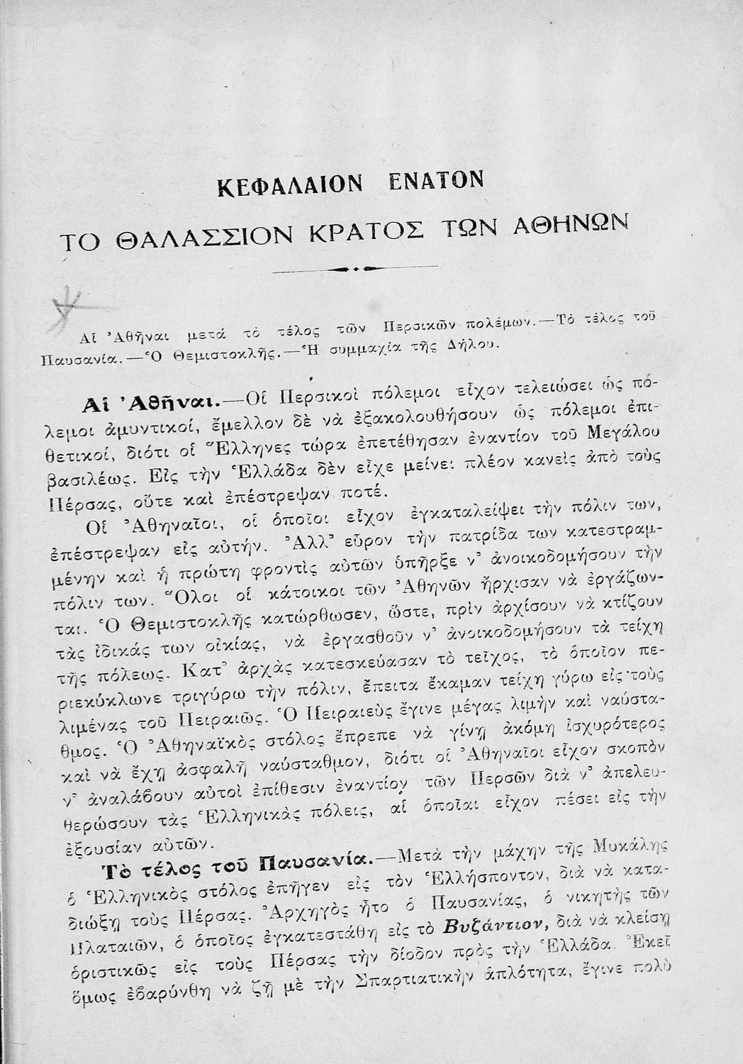 Σχολικό εγχειρίδιο Ιστορίας Α΄ Γυμνασίου που υιοθετεί το σχήμα του Παπαρρηγόπουλου και καλύπτει την περίοδο από τα προϊστορικά χρόνια μέχρι και τη Μακεδονική Ηγεμονία.
