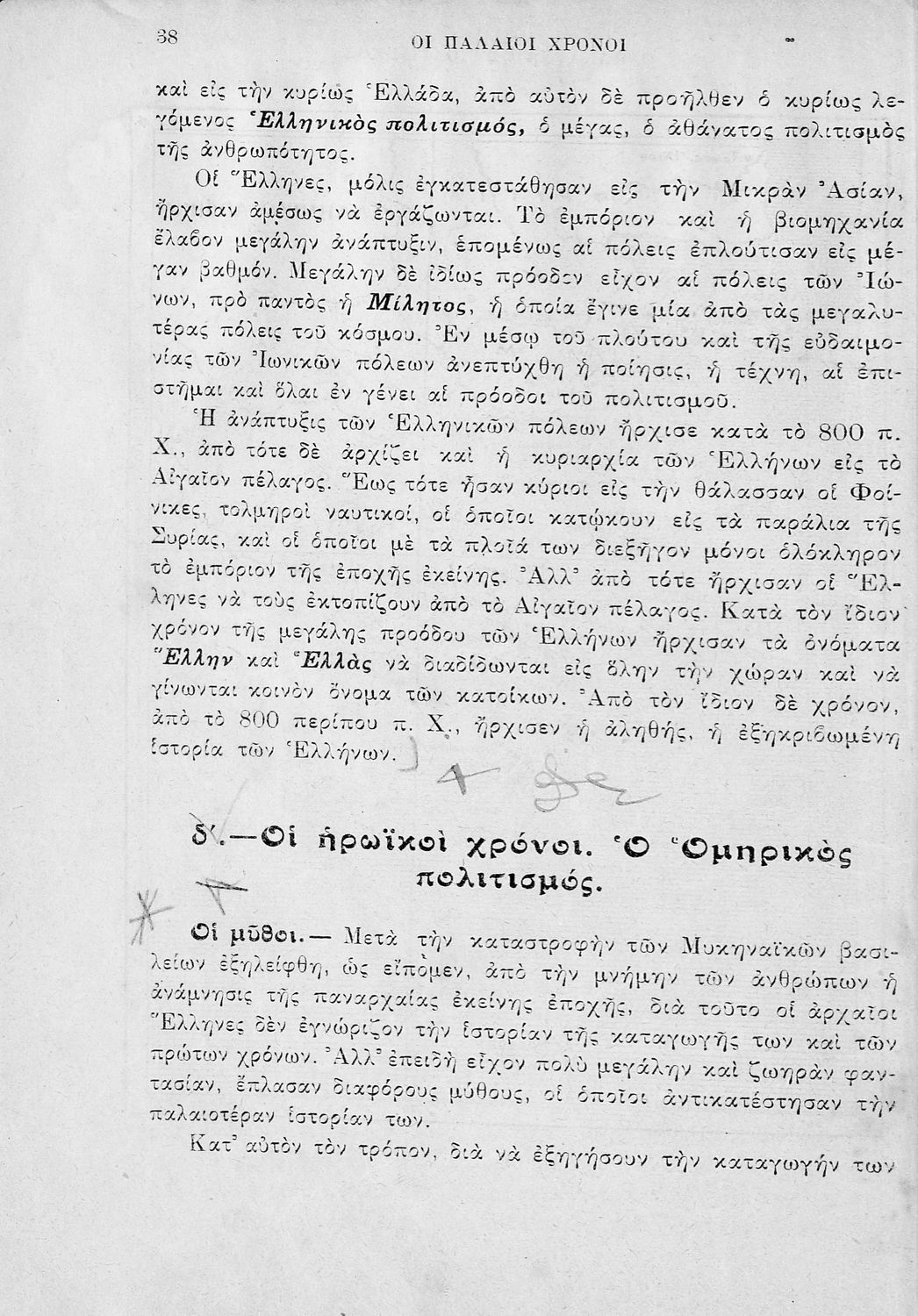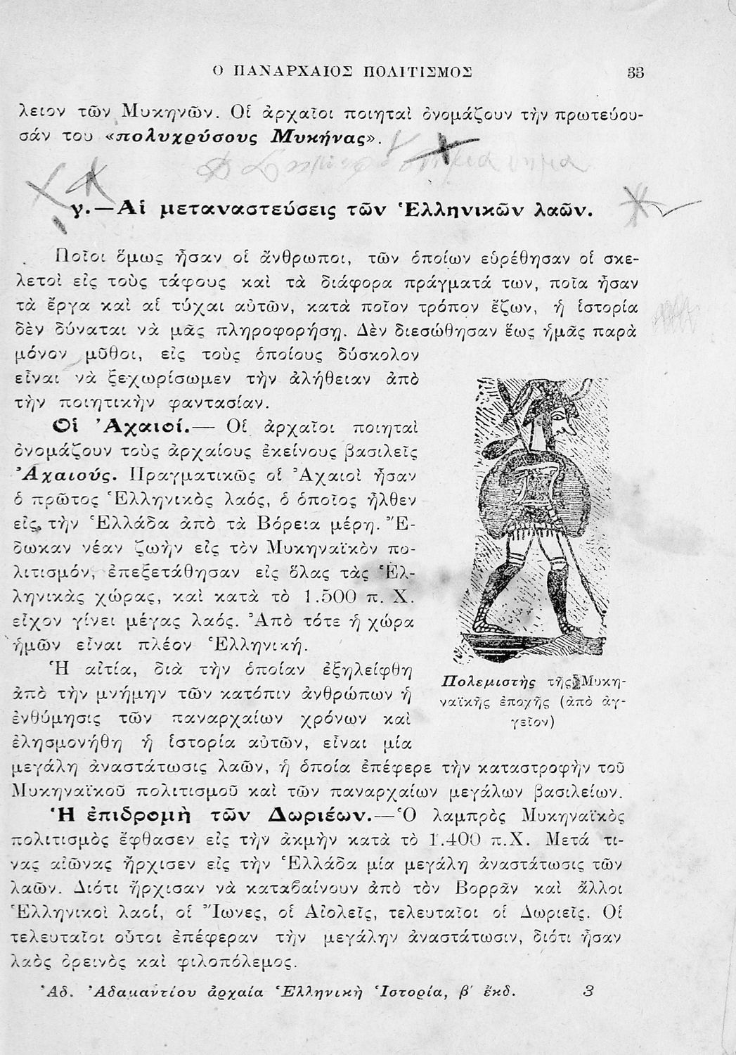 Σχολικό εγχειρίδιο Ιστορίας Α΄ Γυμνασίου που υιοθετεί το σχήμα του Παπαρρηγόπουλου και καλύπτει την περίοδο από τα προϊστορικά χρόνια μέχρι και τη Μακεδονική Ηγεμονία.