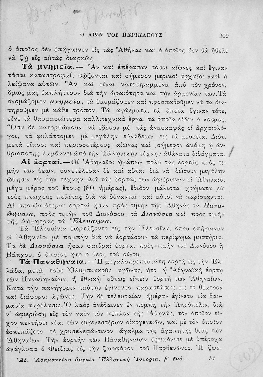 Σχολικό εγχειρίδιο Ιστορίας Α΄ Γυμνασίου που υιοθετεί το σχήμα του Παπαρρηγόπουλου και καλύπτει την περίοδο από τα προϊστορικά χρόνια μέχρι και τη Μακεδονική Ηγεμονία.