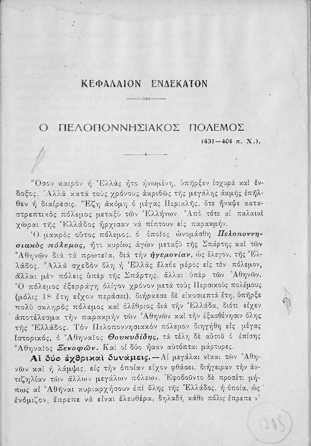 Βαθμίδα εκπαίδευσης: Δευτεροβάθμια Τάξη: Α' Γυμνασίου Μάθημα: Ιστορία Γλώσσα: Καθαρεύουσα Παρουσίαση περιεχομένου: Σχολικό εγχειρίδιο Ιστορίας Α΄ Γυμνασίου που υιοθετεί το σχήμα του Παπαρρηγόπουλου και καλύπτει την περίοδο από τα προϊστορικά χρόνια μέχρι και τη Μακεδονική Ηγεμονία. |