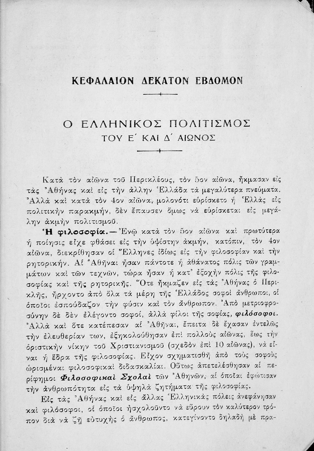 Σχολικό εγχειρίδιο Νέων Ελληνικών Γ΄ Γυμνασίου και Α' Αστικού Σχολείου που περιέχει πεζά και ποιήματα Ελλήνων συγγραφέων εμπνευσμένα από τη θρησκευτική και κοινωνική ζωή, την ελληνική μυθολογία, την αρχαία και