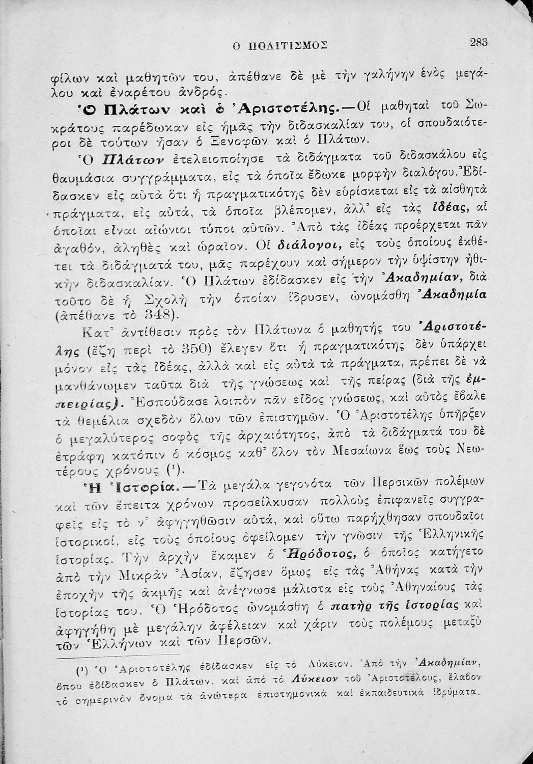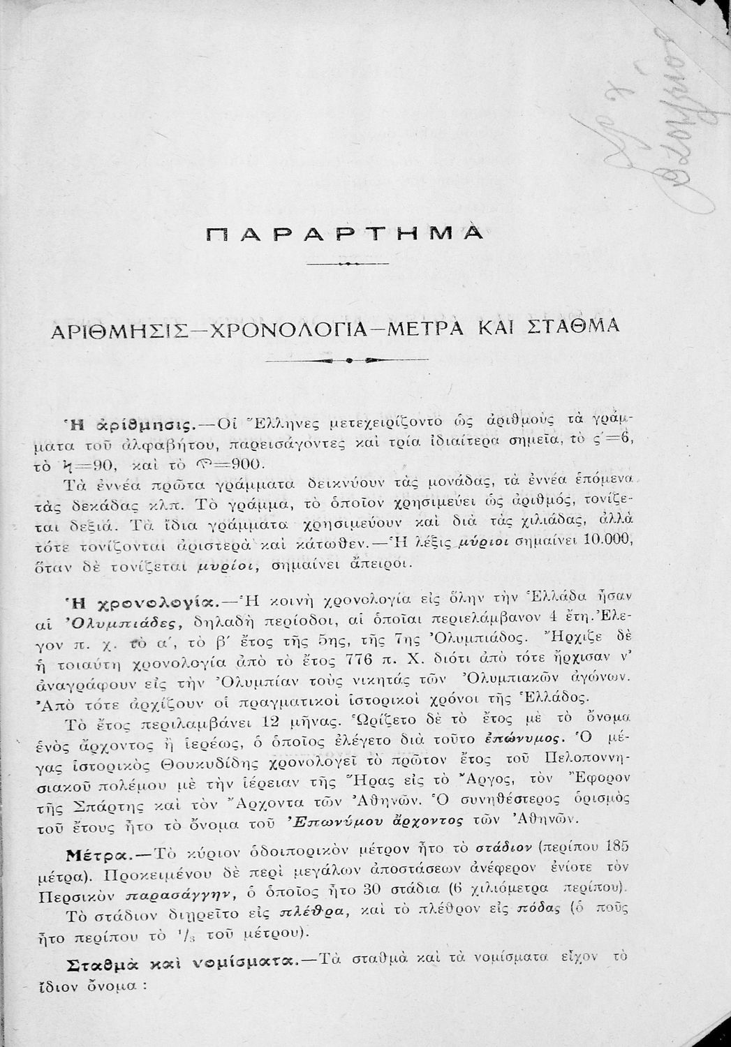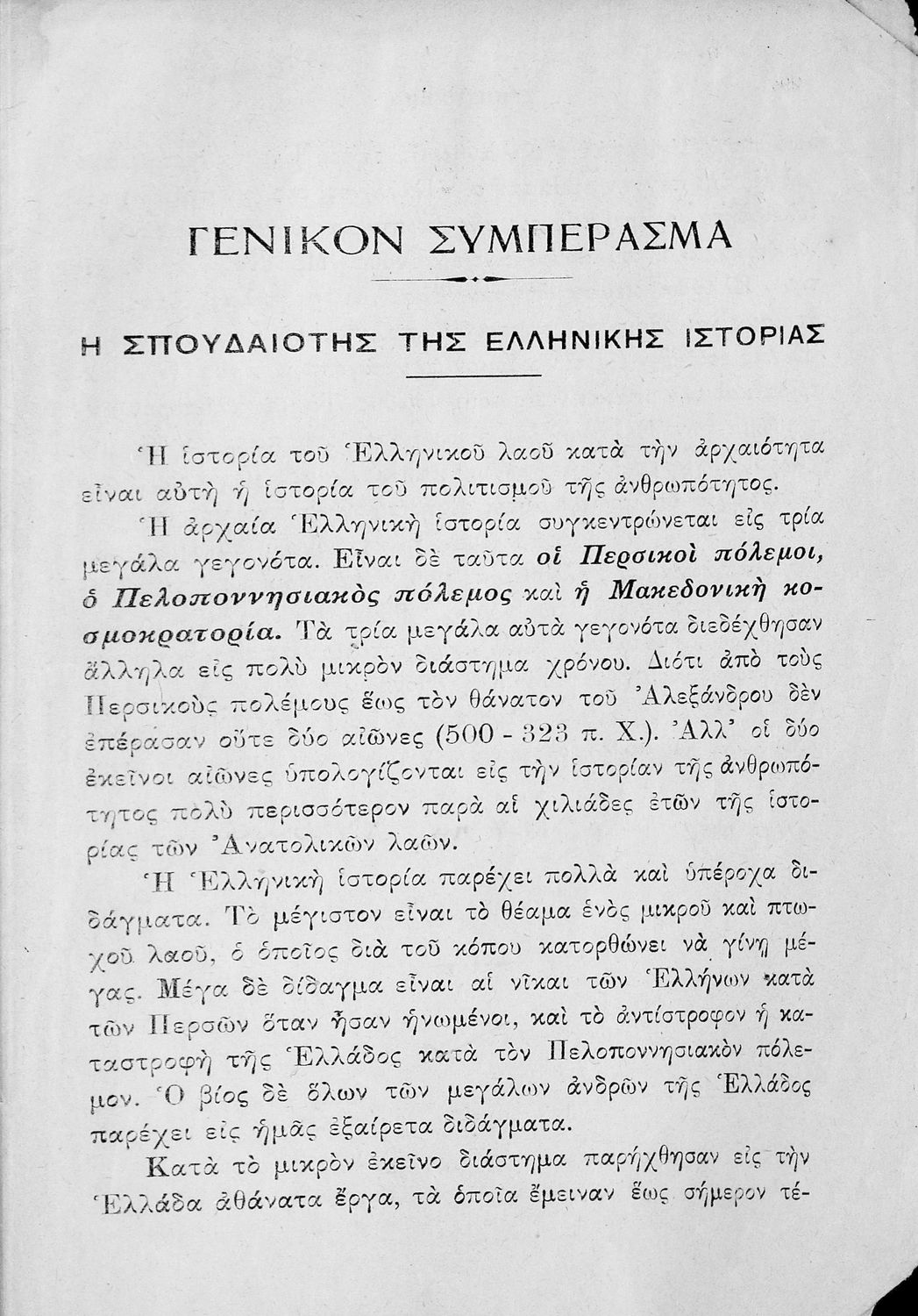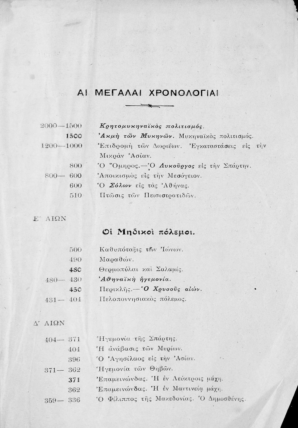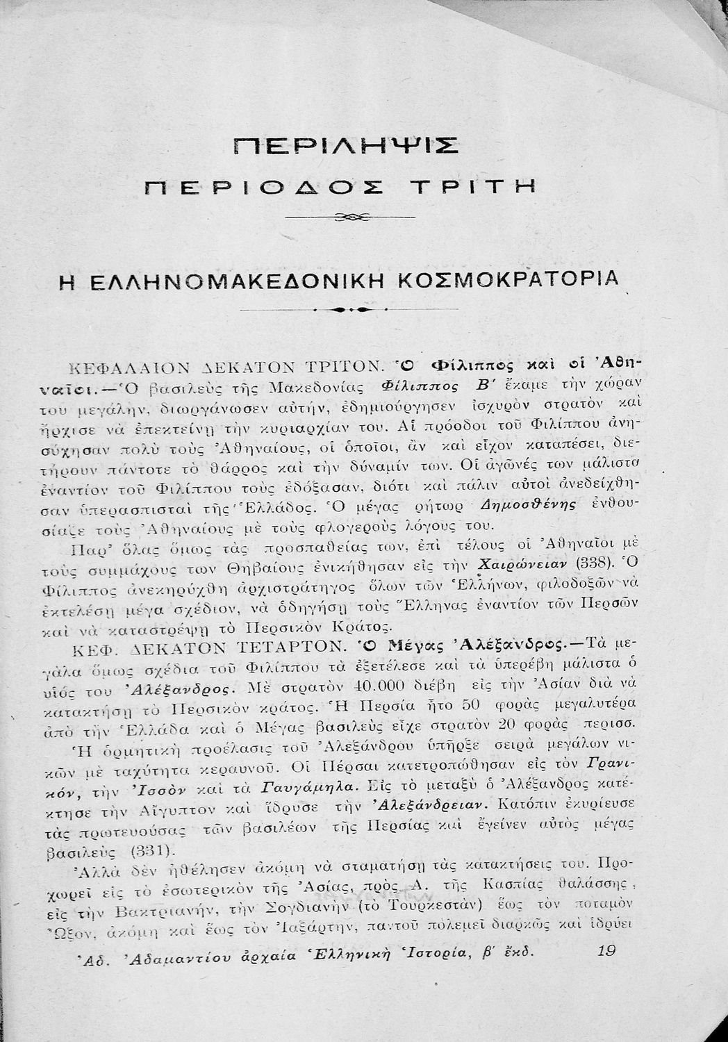 Σχολικό εγχειρίδιο Ιστορίας Α΄ Γυμνασίου που υιοθετεί το σχήμα του Παπαρρηγόπουλου και καλύπτει την περίοδο από τα προϊστορικά χρόνια μέχρι και τη Μακεδονική Ηγεμονία.