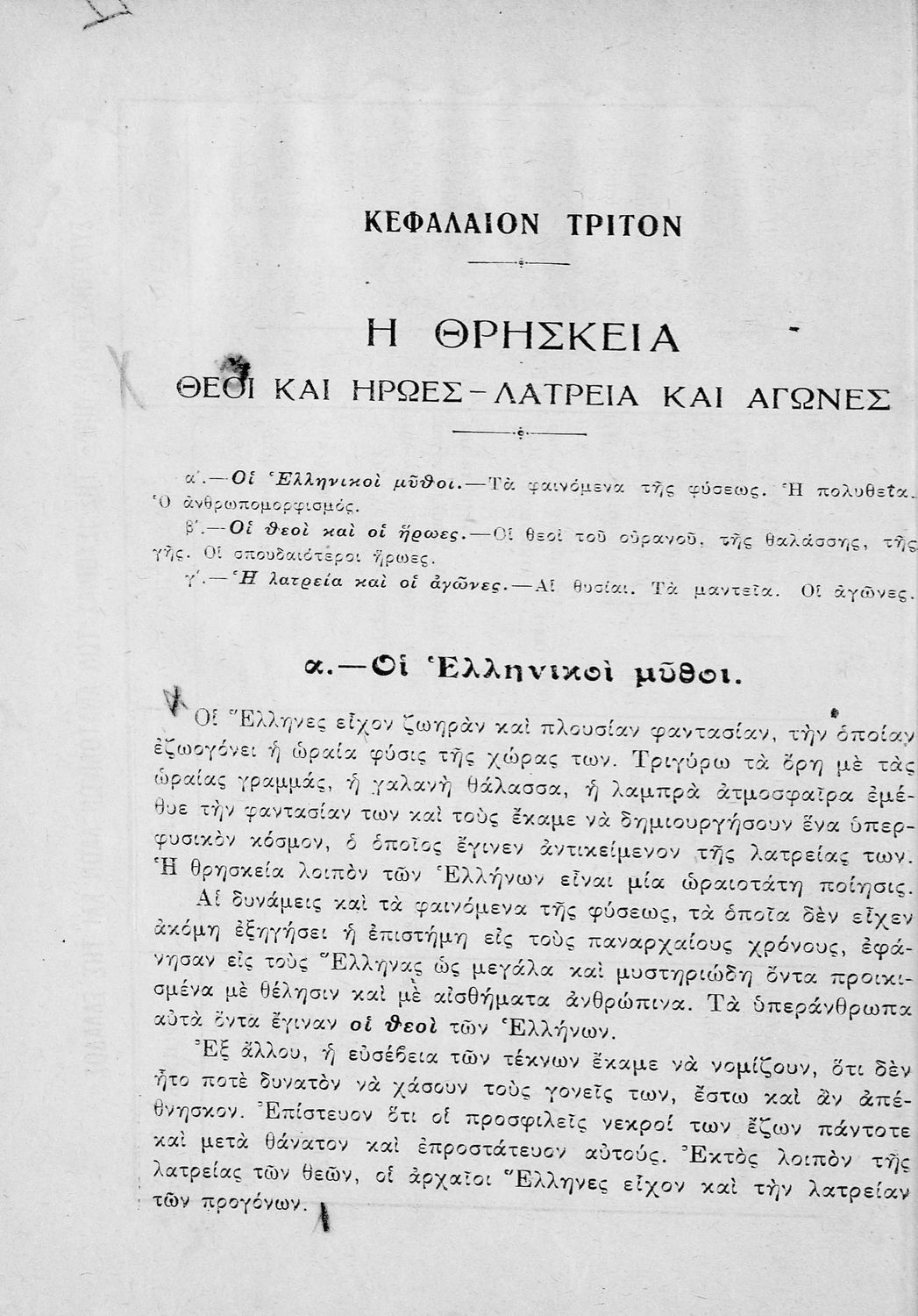 Σχολικό εγχειρίδιο Νέων Ελληνικών Γ΄ Γυμνασίου και Α' Αστικού Σχολείου που περιέχει πεζά και ποιήματα Ελλήνων συγγραφέων εμπνευσμένα από τη θρησκευτική και κοινωνική ζωή, την ελληνική μυθολογία, την αρχαία και