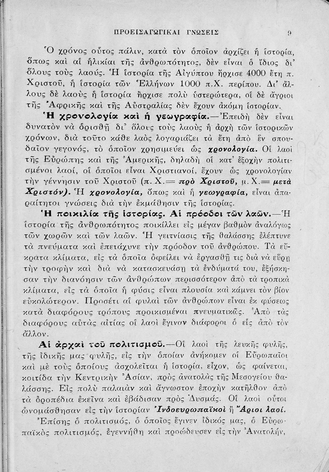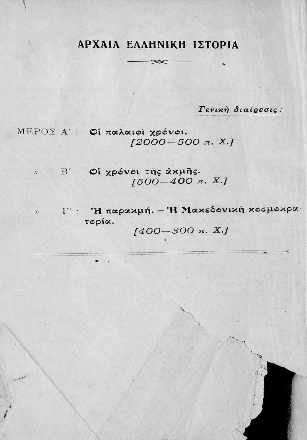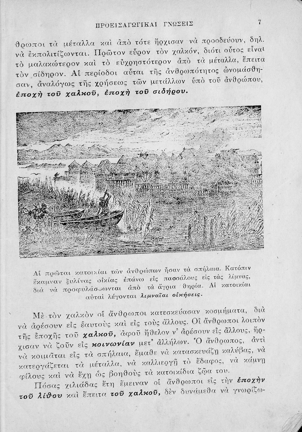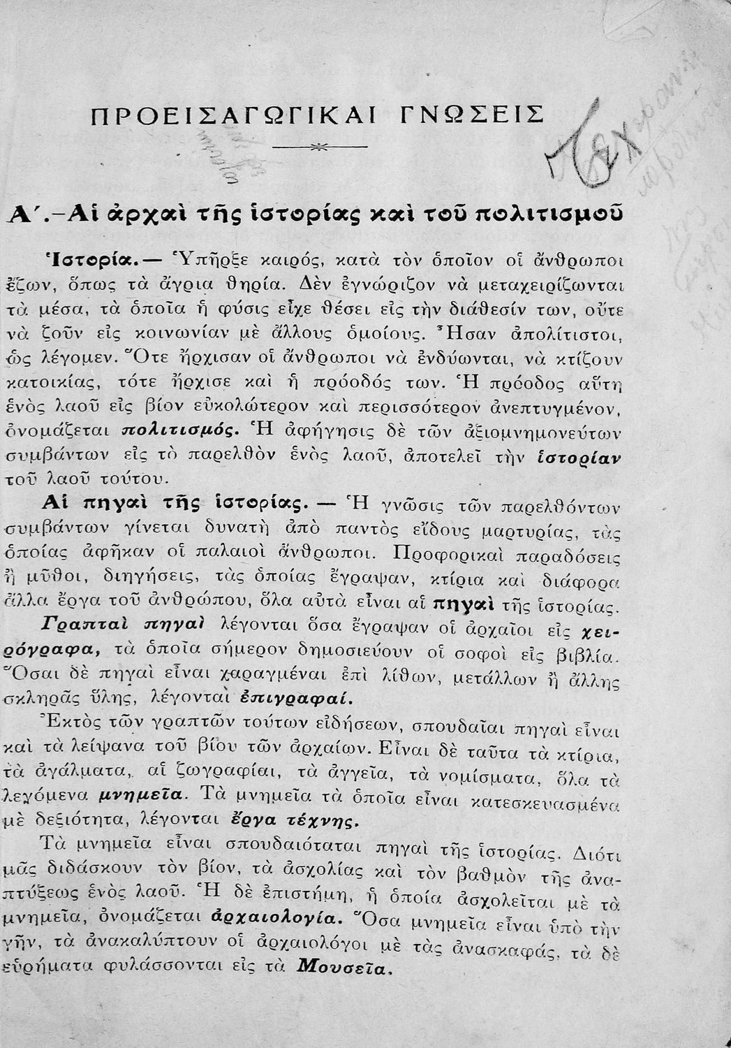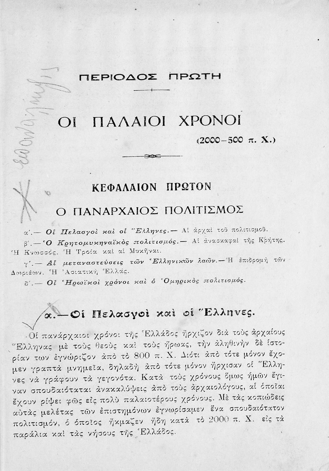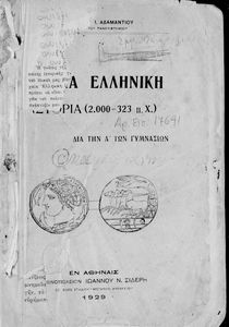 Σχολικό εγχειρίδιο Ιστορίας Α΄ Γυμνασίου που υιοθετεί το σχήμα του Παπαρρηγόπουλου και καλύπτει την περίοδο από τα προϊστορικά χρόνια μέχρι και τη Μακεδονική Ηγεμονία.