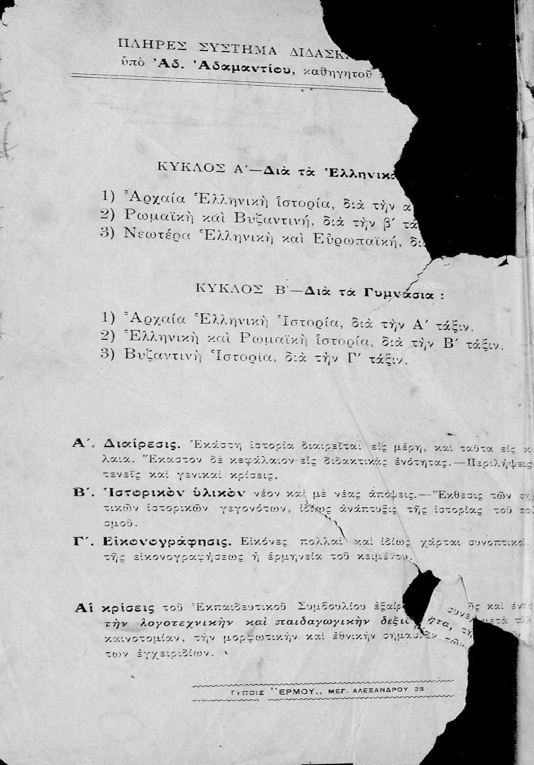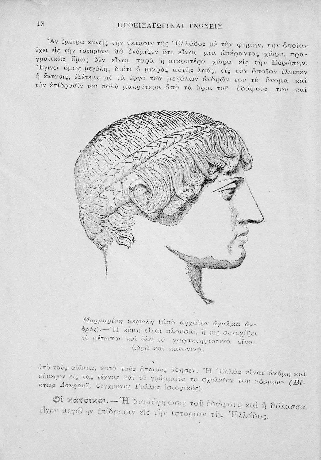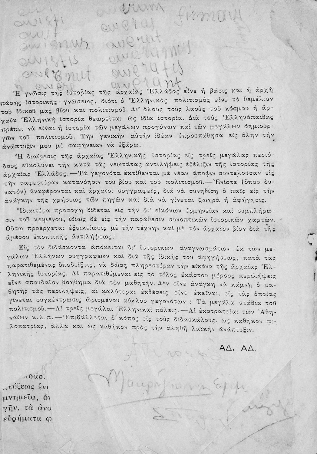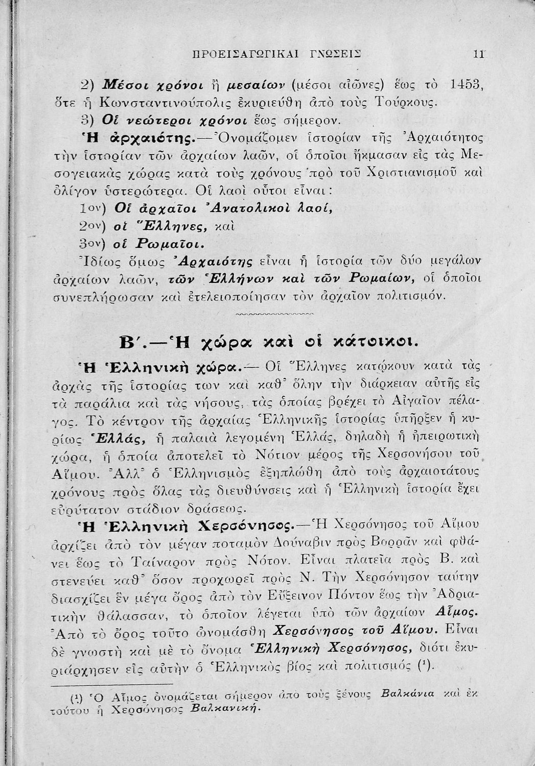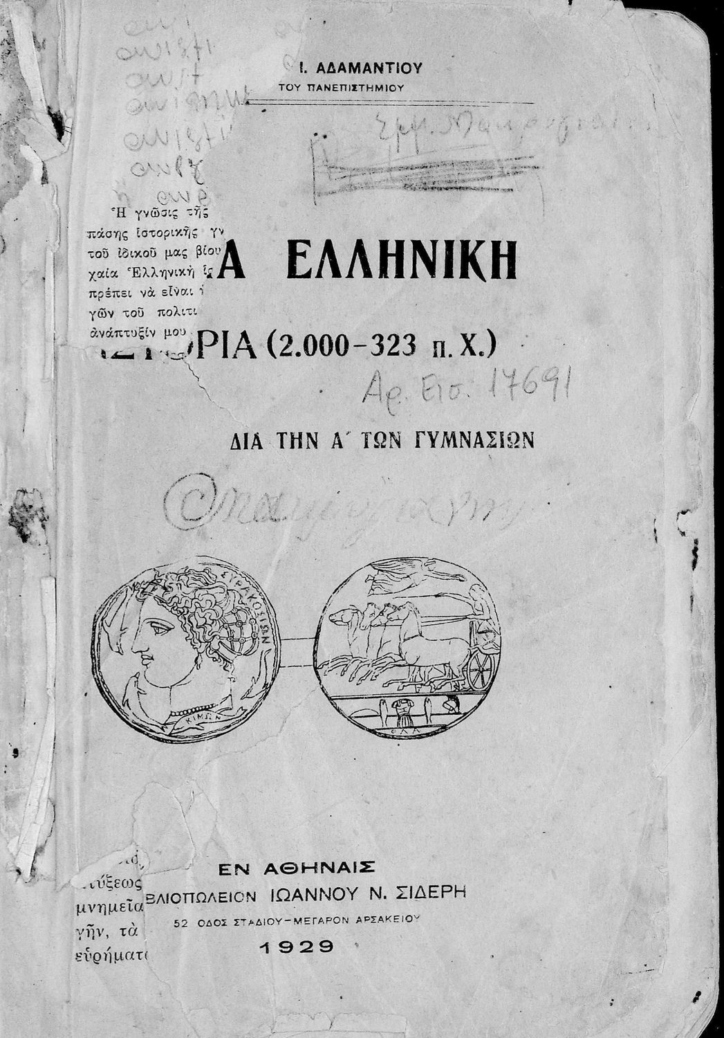 Σχολικό εγχειρίδιο Ιστορίας Α΄ Γυμνασίου που υιοθετεί το σχήμα του Παπαρρηγόπουλου και καλύπτει την περίοδο από τα προϊστορικά χρόνια μέχρι και τη Μακεδονική Ηγεμονία.