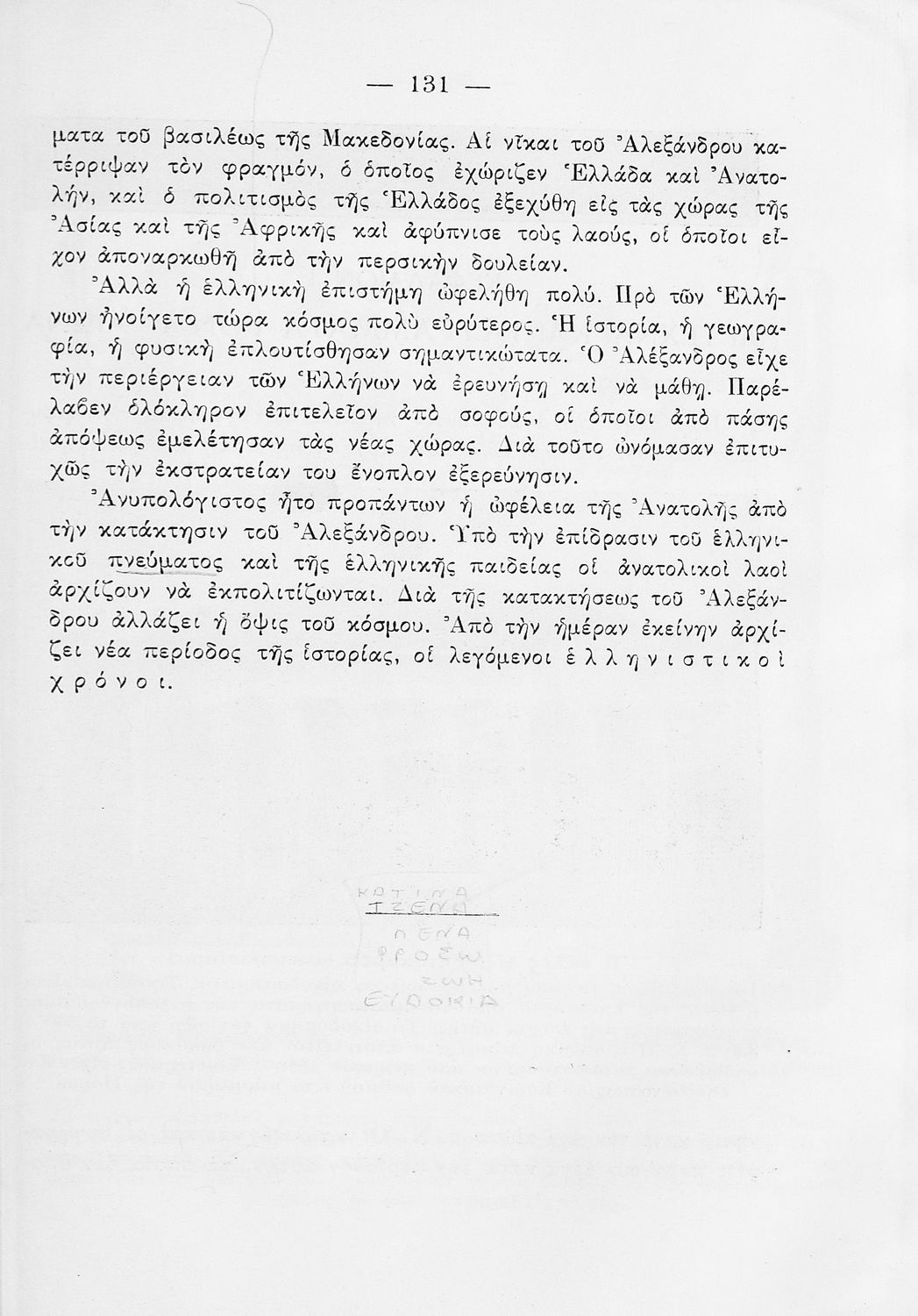 Μαθητικό βοήθημα της Β΄ Γυμνασίου για το μάθημα της Ιστορίας. Το εγχειρίδιο περιέχει περιλήψεις των κεφαλαίων του σχολικού βιβλίου. Ο συγγραφέας ήταν Γυμνασιάρχης.