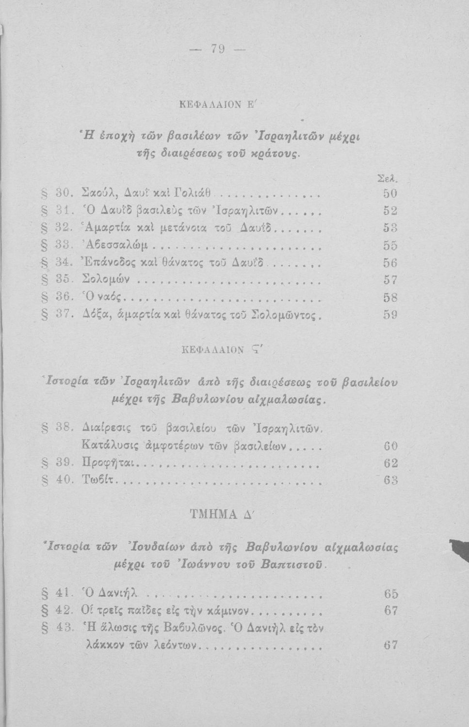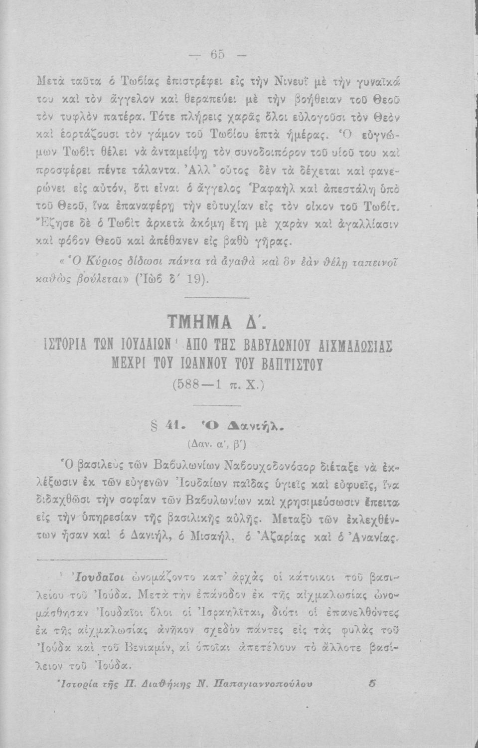 Σχολικό εγχειρίδιο Θρησκευτικών για την Α' Ελληνικού Σχολείου που περιλαμβάνει την ιστορία της Παλαιάς Διαθήκης από την εποχή της δημιουργίας του κόσμου μέχρι και την ιστορία των Ιουδαίων και των Μακκαβαίων.