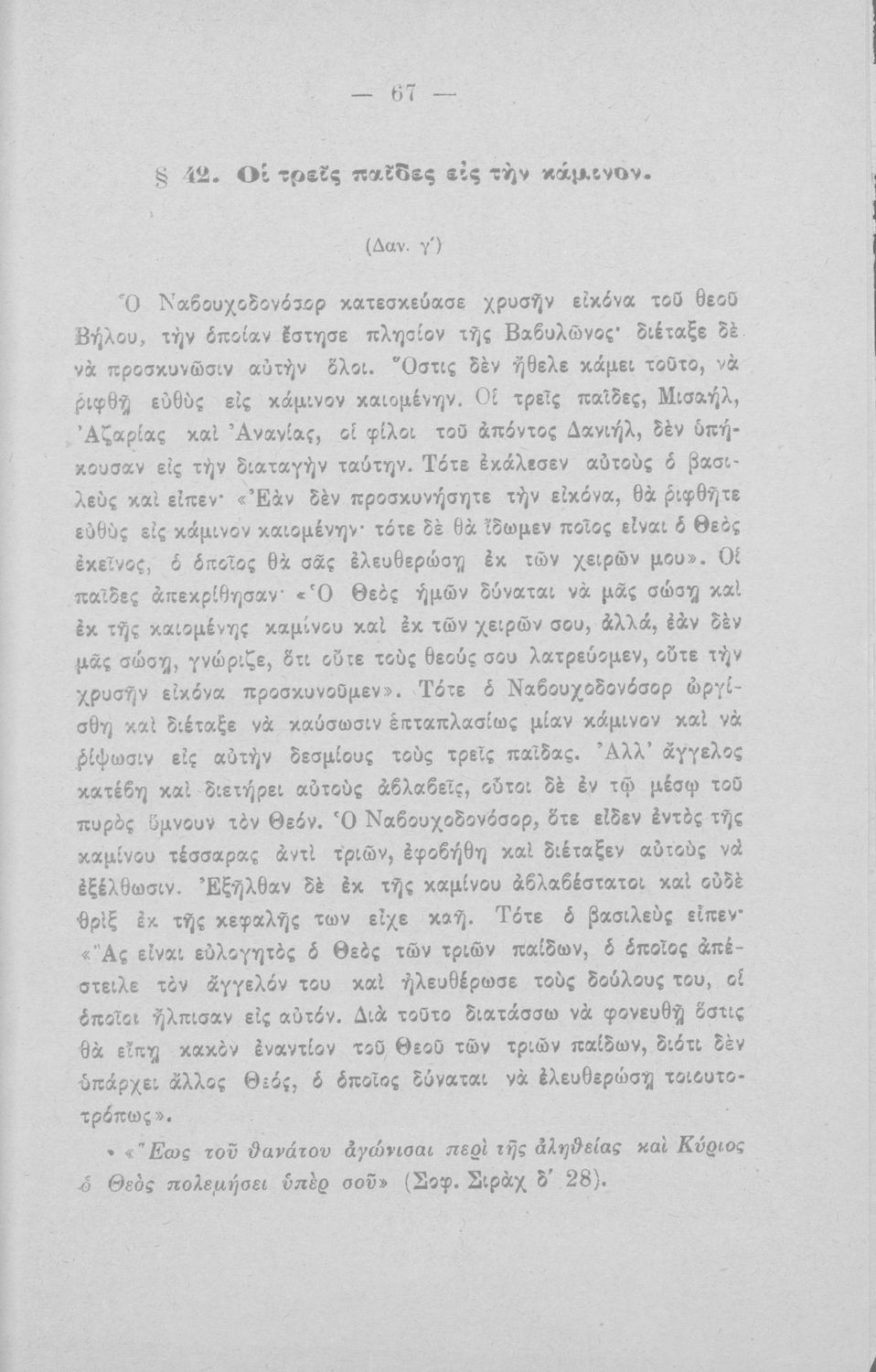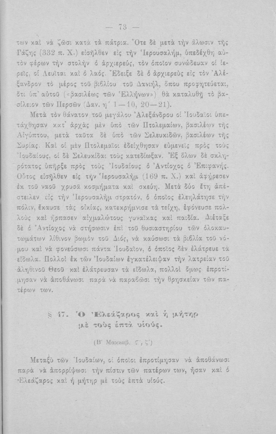 Σχολικό εγχειρίδιο Θρησκευτικών Α΄ Ελληνικού Σχολείου που συνιστά μία εξιστόρηση της Παλαιάς Διαθήκης από τη δημιουργία του κόσμου ως τους Μακκαβαίους.