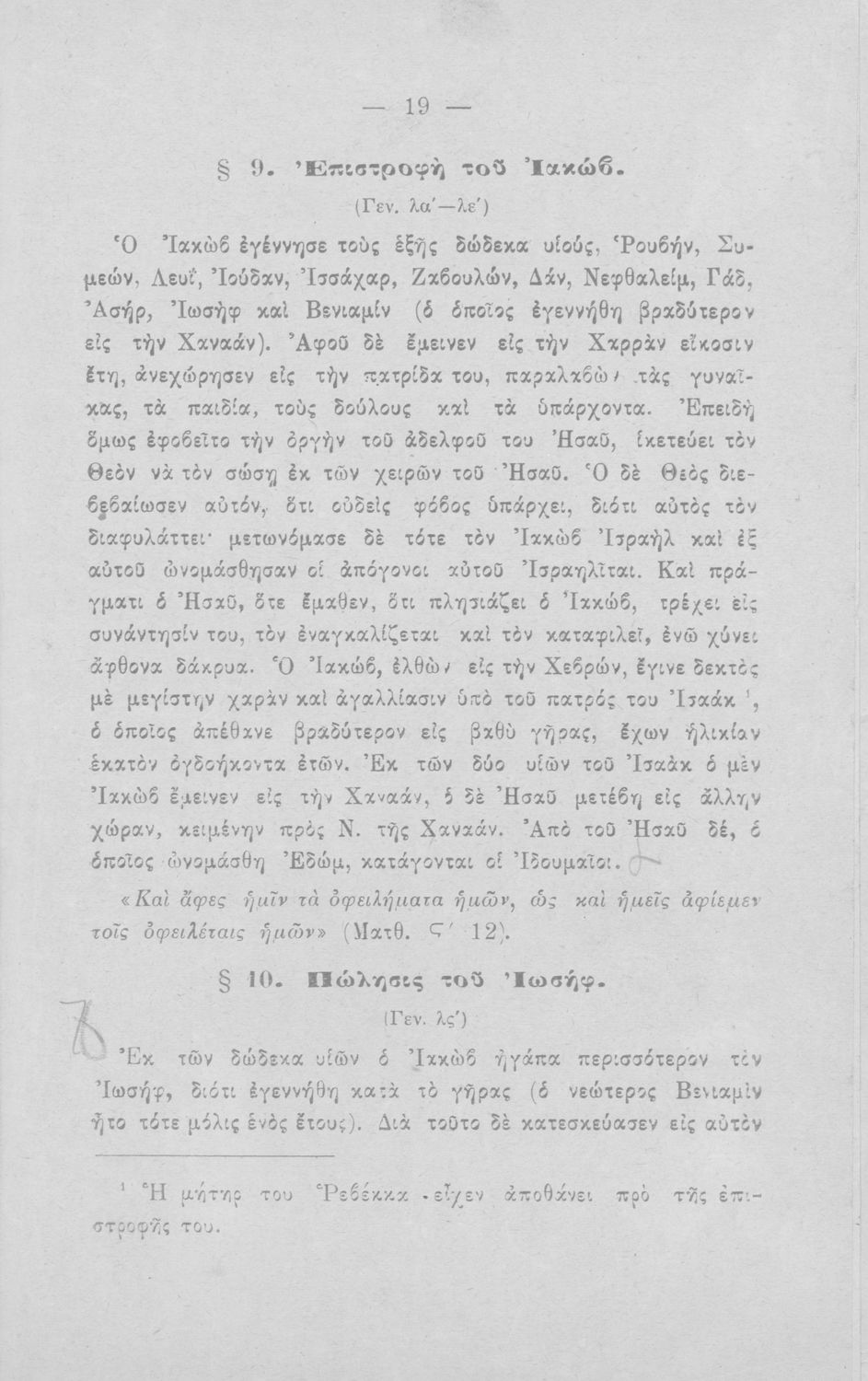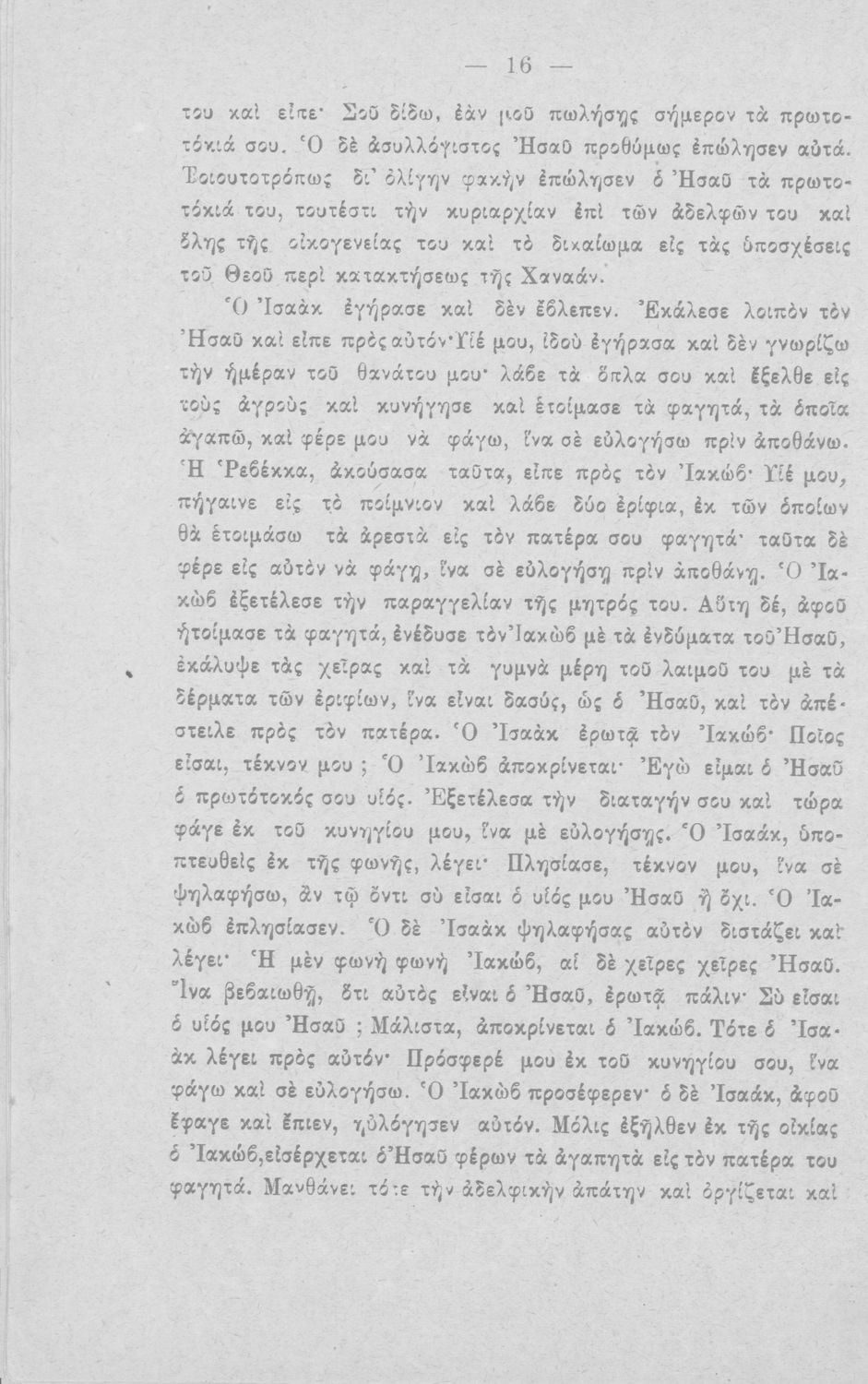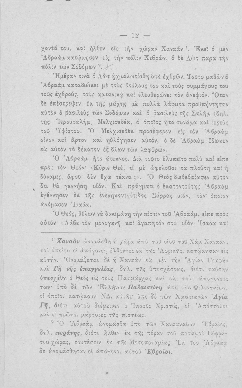 Βαθμίδα εκπαίδευσης: Δευτεροβάθμια Τάξη: Α' Ελληνικού Σχολείου Μάθημα: Θρησκευτικά Γλώσσα: Καθαρεύουσα Παρουσίαση περιεχομένου: Σχολικό εγχειρίδιο Θρησκευτικών Α΄ Ελληνικού Σχολείου που συνιστά μία εξιστόρηση της Παλαιάς Διαθήκης από τη δημιουργία του κόσμου ως τους Μακκαβαίους. |