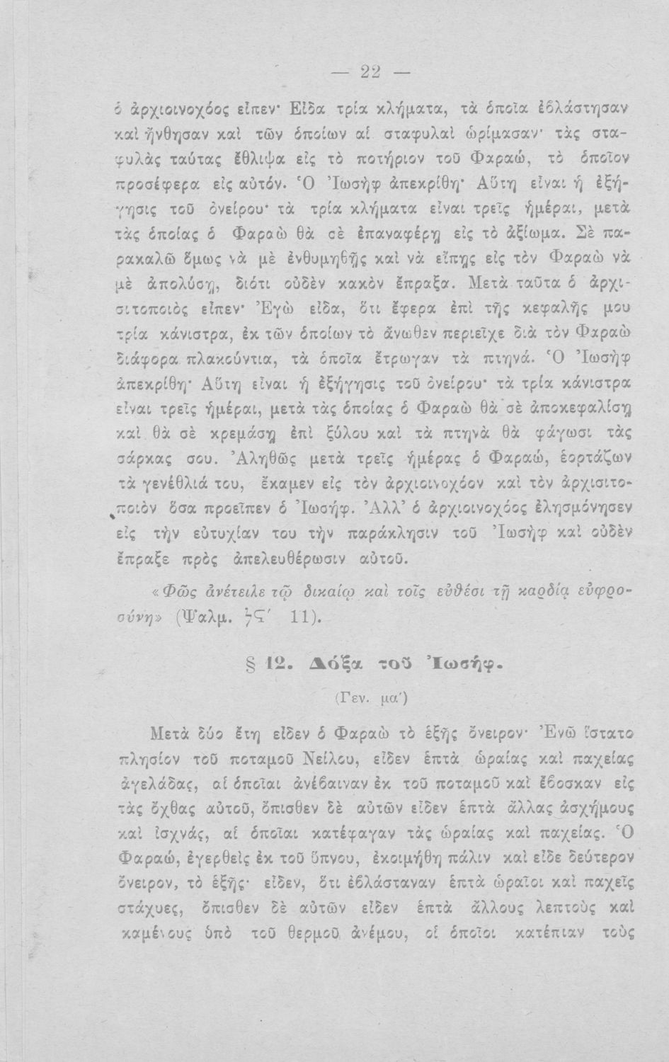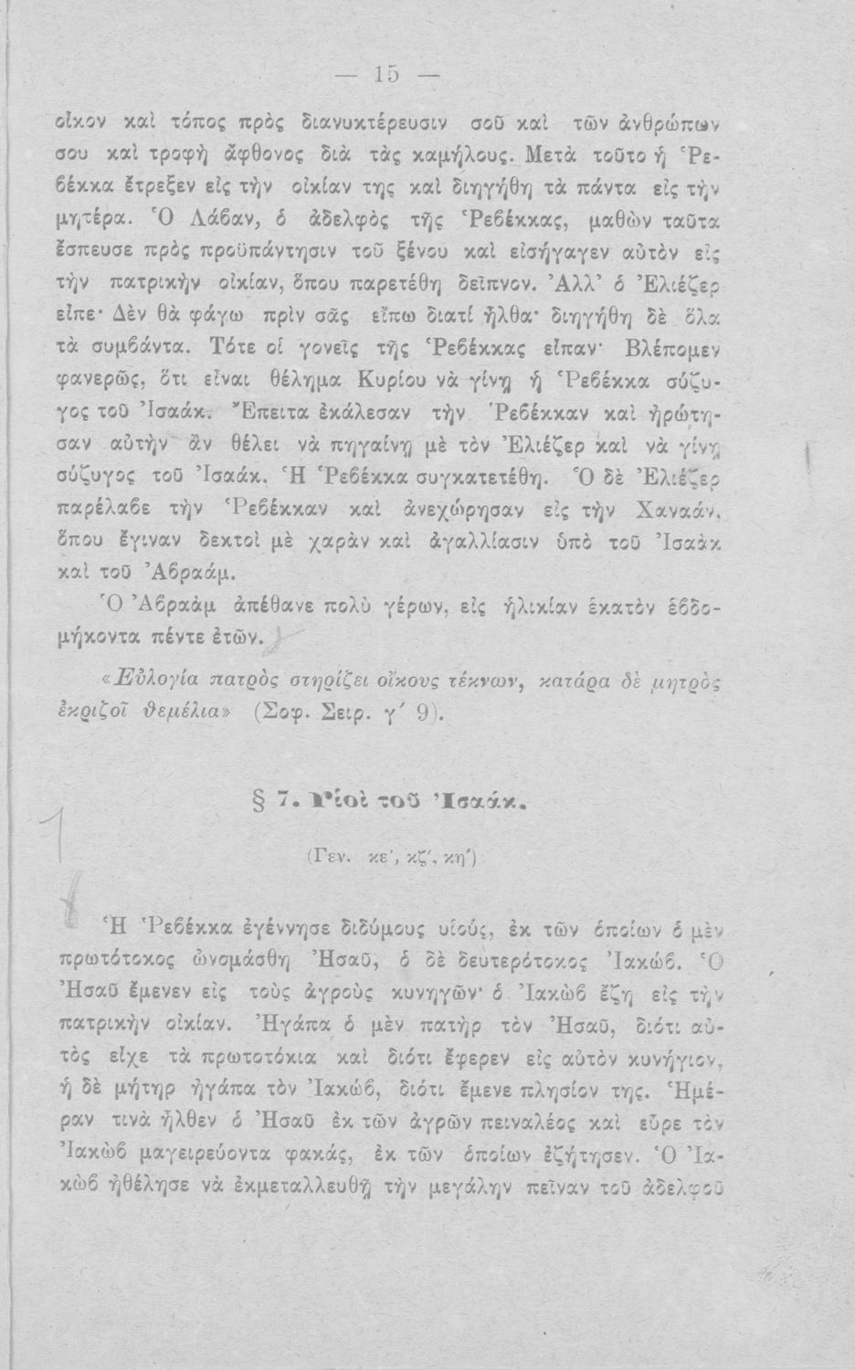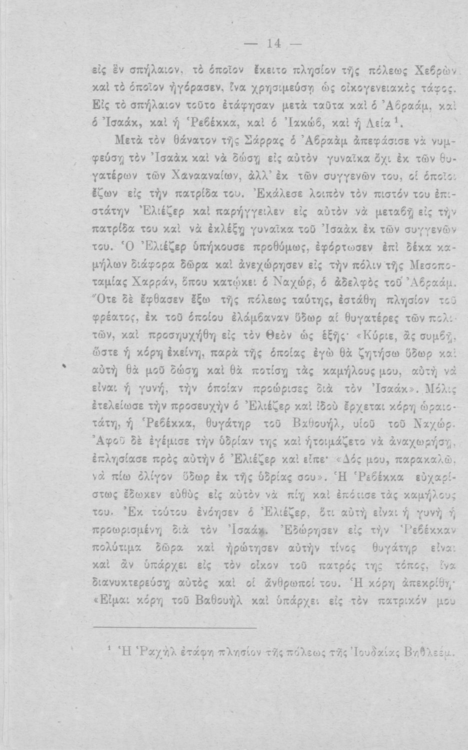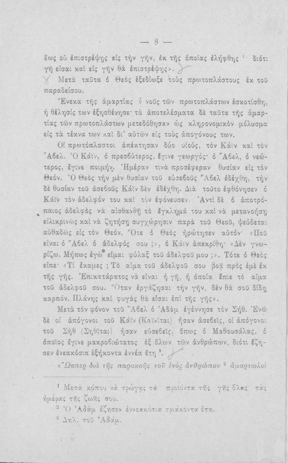 Βαθμίδα εκπαίδευσης: Δευτεροβάθμια Τάξη: Α' Ελληνικού Σχολείου Μάθημα: Θρησκευτικά Γλώσσα: Καθαρεύουσα Παρουσίαση περιεχομένου: Σχολικό εγχειρίδιο Θρησκευτικών Α΄ Ελληνικού Σχολείου που συνιστά μία εξιστόρηση της Παλαιάς Διαθήκης από τη δημιουργία του κόσμου ως τους Μακκαβαίους. |