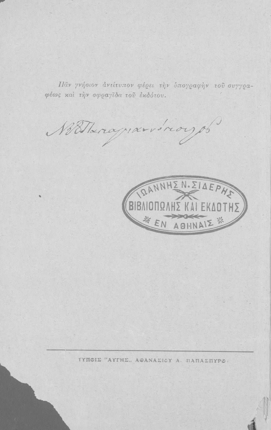 Εκδότης: Ιωάννης Ν. Σιδέρης Έτος έκδοσης: 1919 Τόπος έκδοσης: Αθήνα Έκδοση: 4η Υπουργική απόφαση / Σύμβαση: 27966/28-9-1917 Έτος έγκρισης: 1917 |