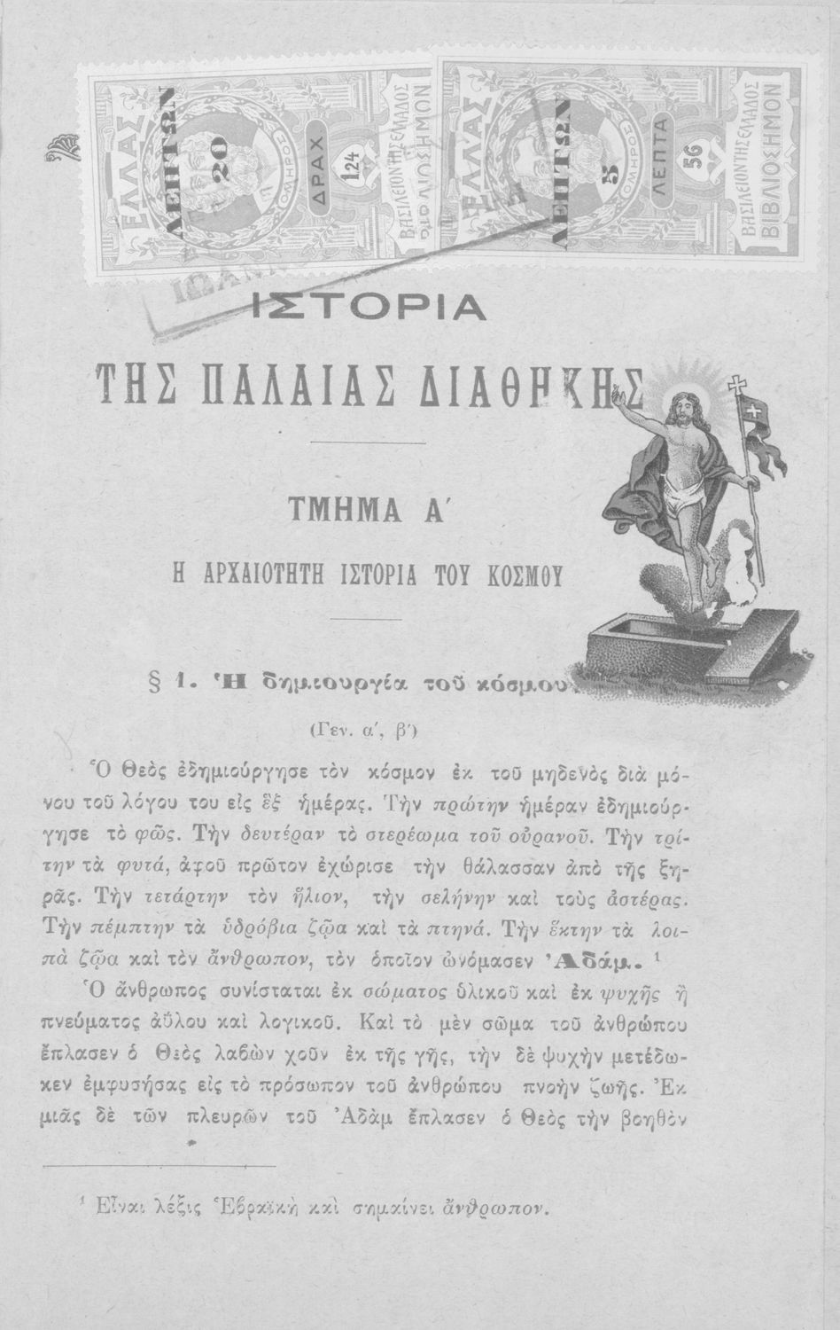 Σχολικό εγχειρίδιο Θρησκευτικών Α΄ Ελληνικού Σχολείου που συνιστά μία εξιστόρηση της Παλαιάς Διαθήκης από τη δημιουργία του κόσμου ως τους Μακκαβαίους.