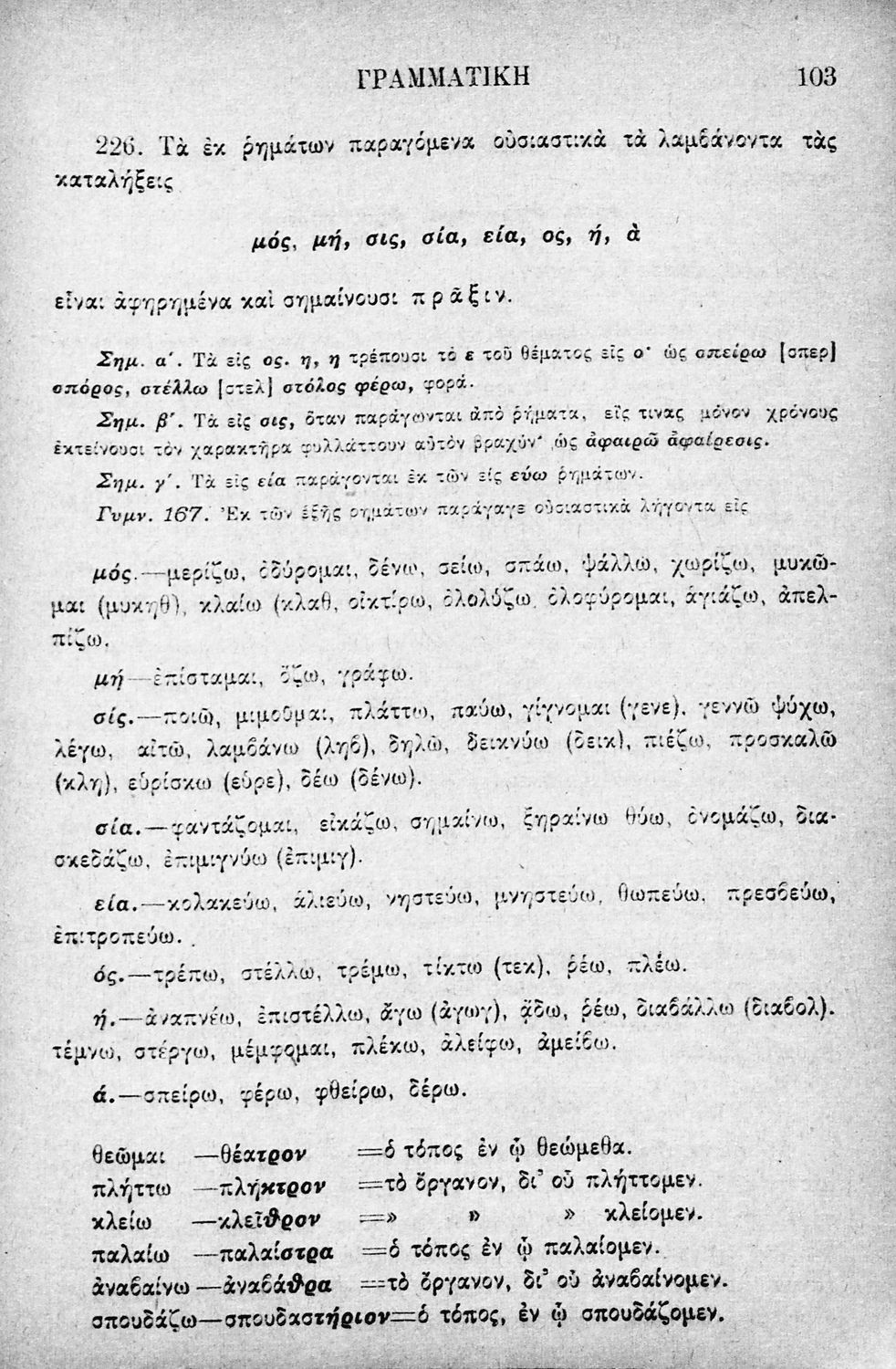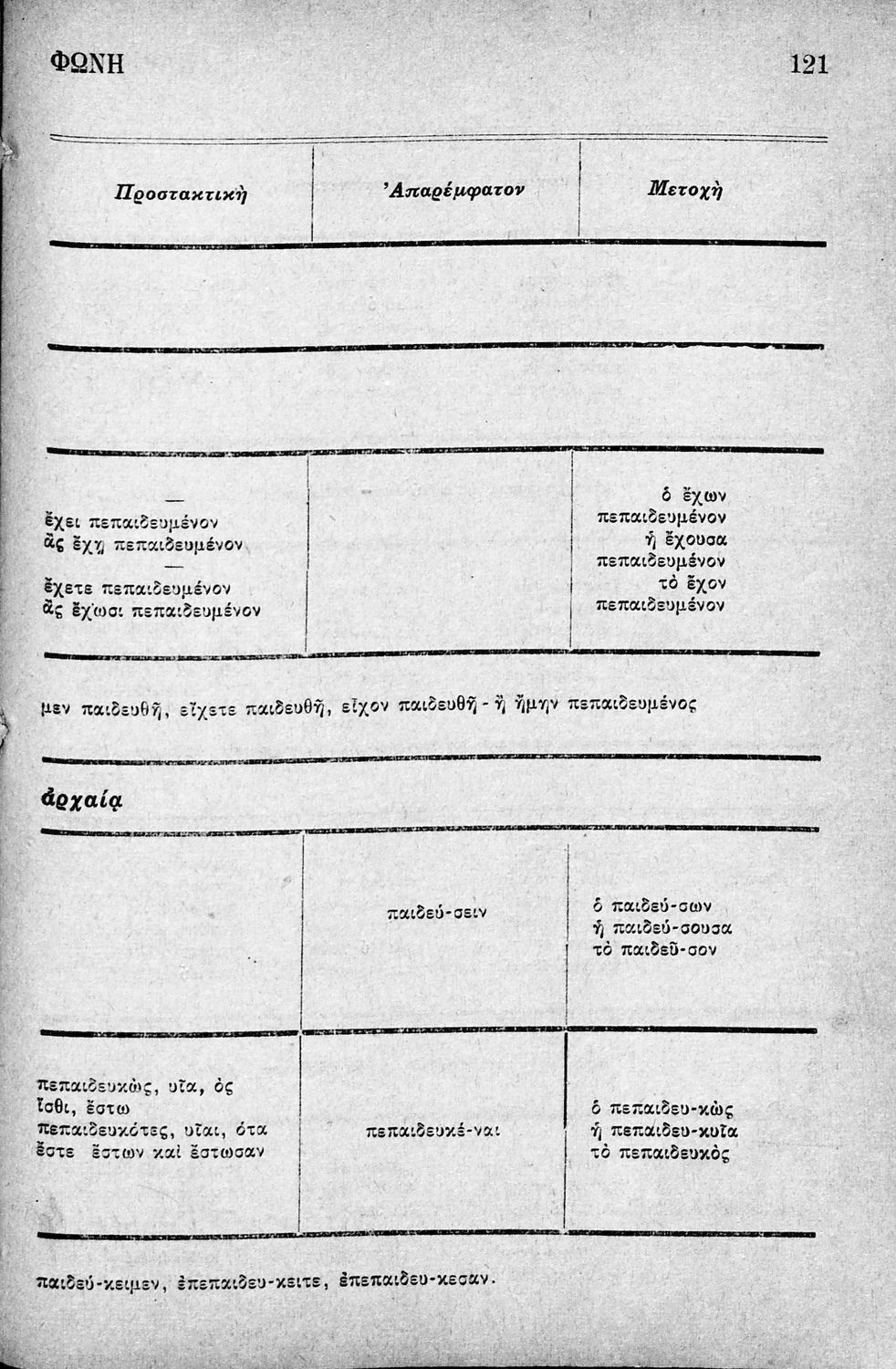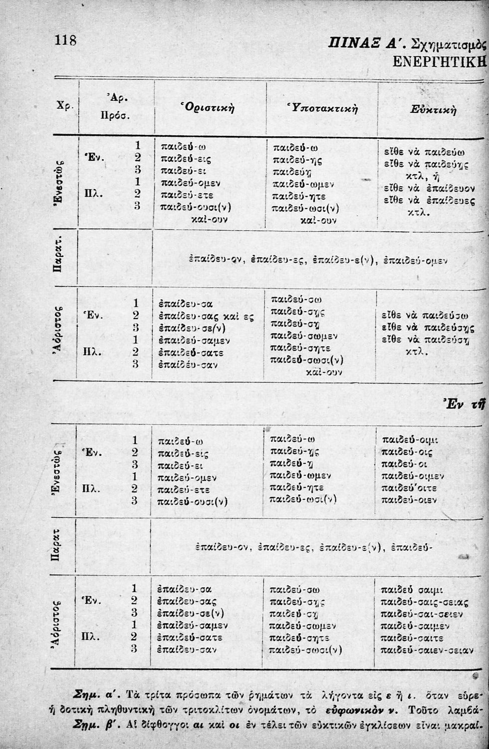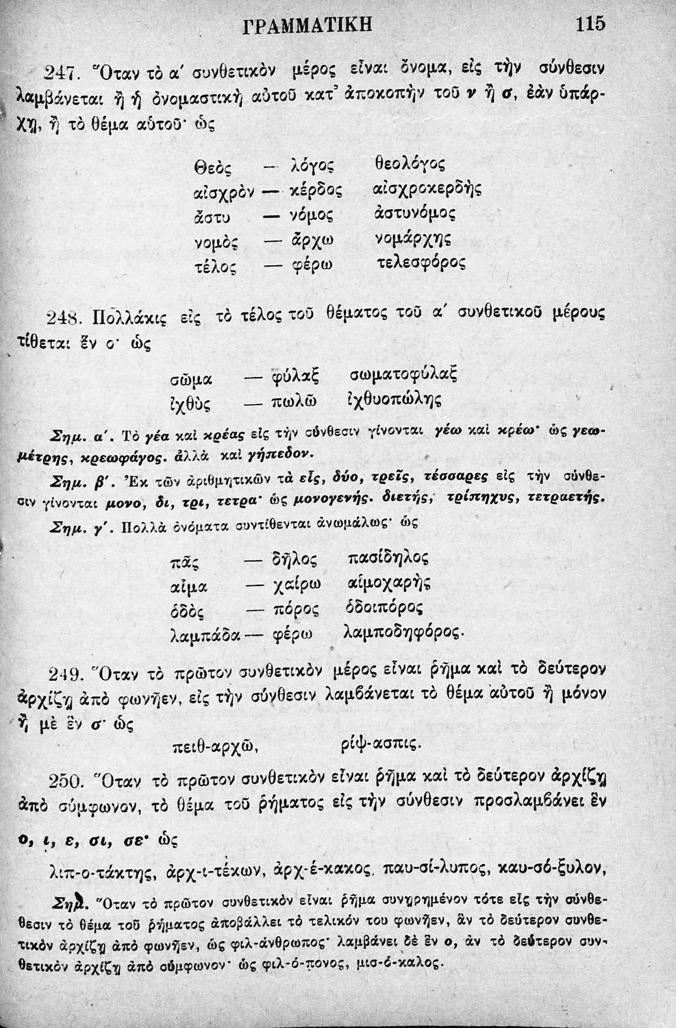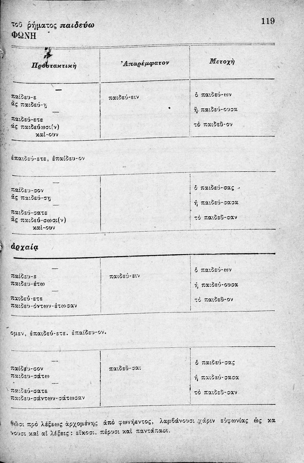 Σχολικό εγχειρίδιο Αρχαίων Ελληνικών Δημοτικού που περιλαμβάνει τους κανόνες γραμματικής και είναι χωρισμένο σε φθογγολογικό, τυπικό και ετυμολογικό μέρος.