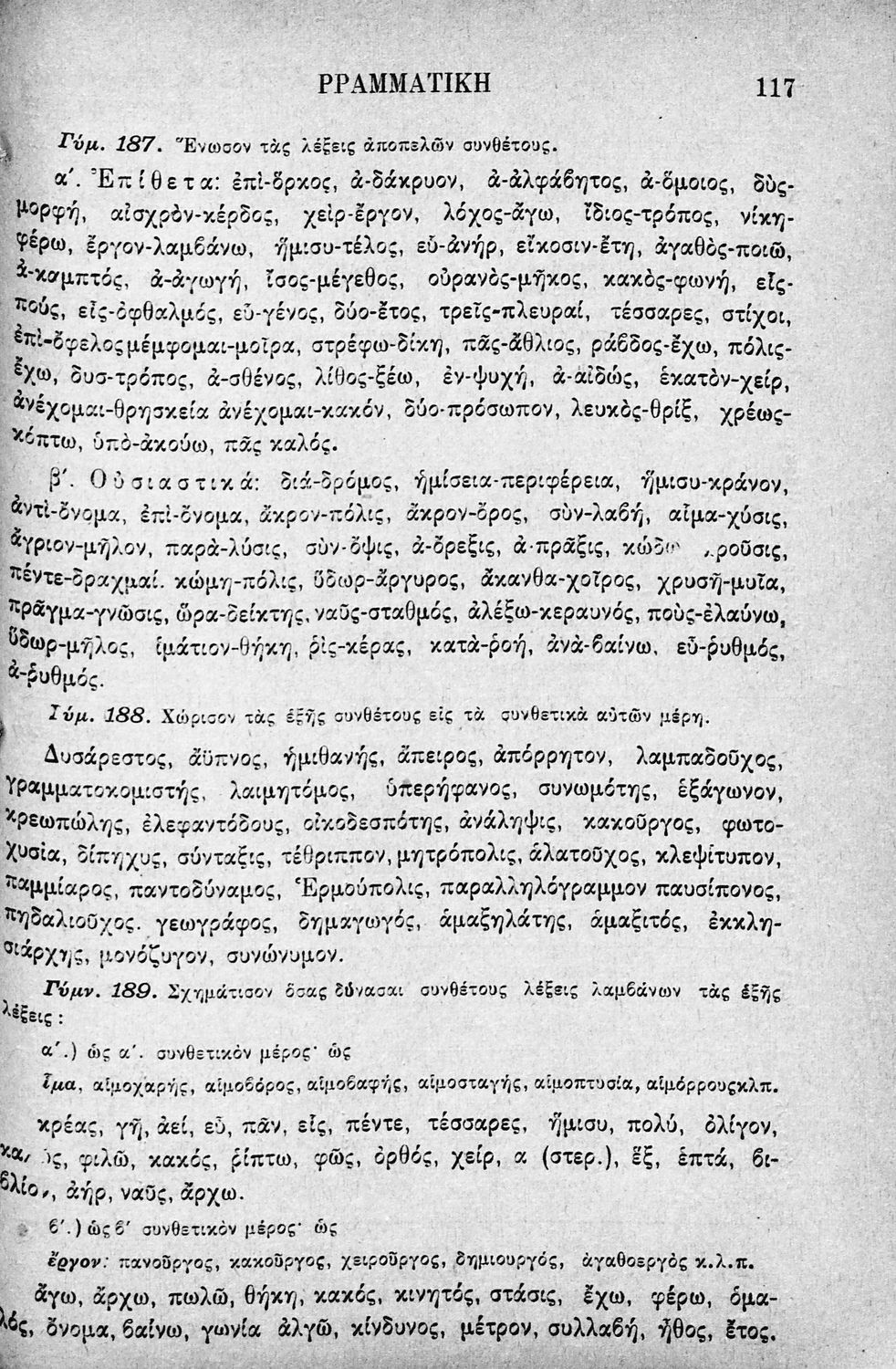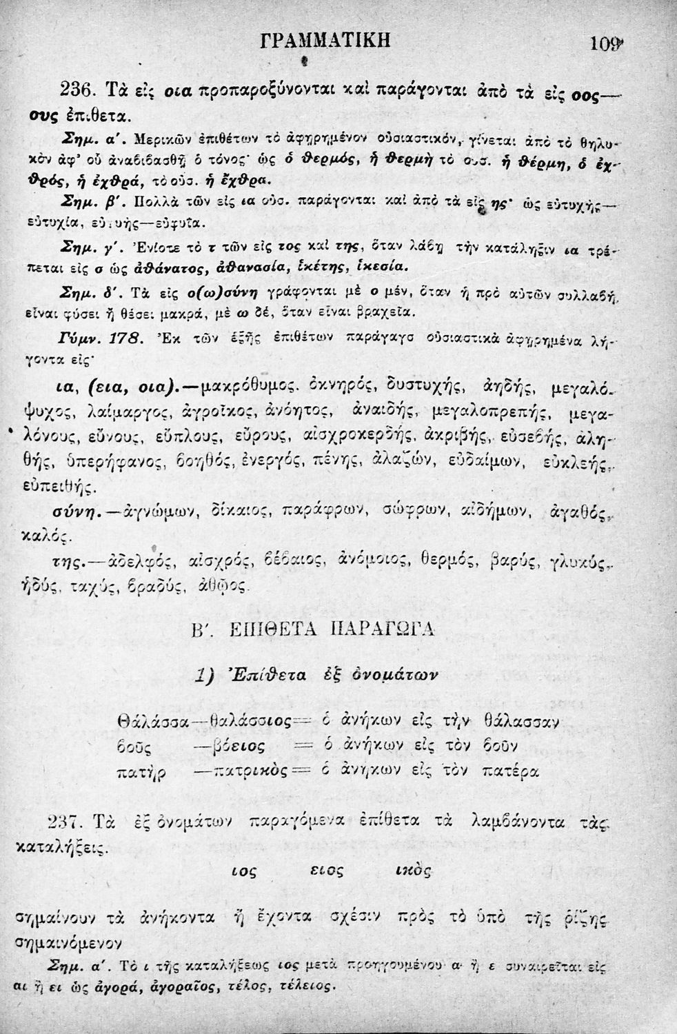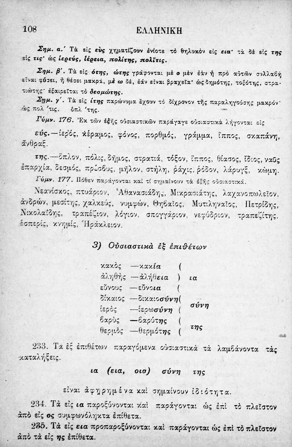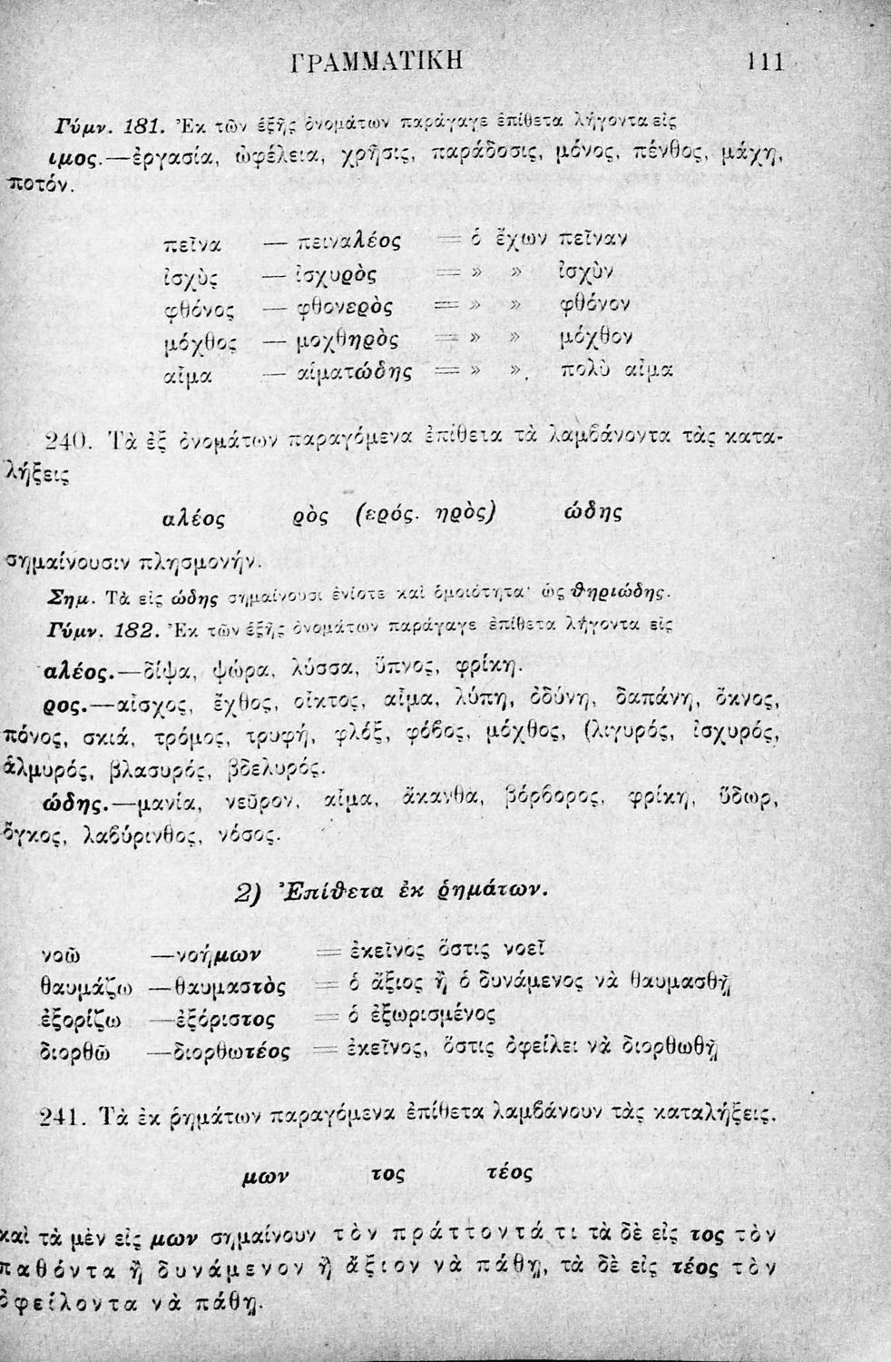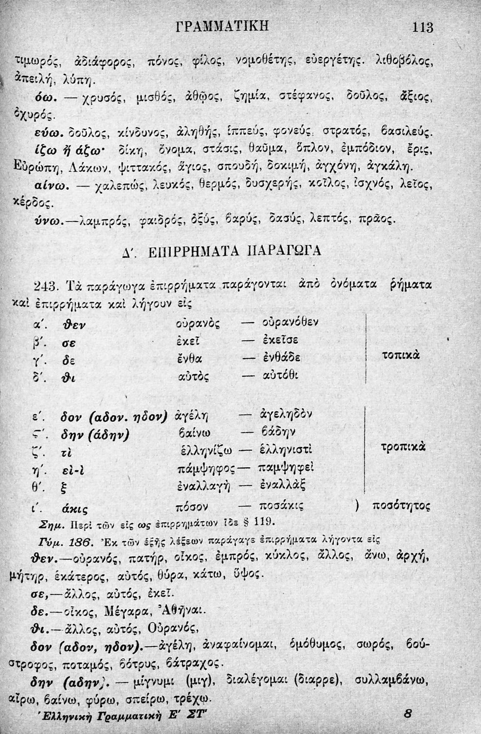 Σχολικό εγχειρίδιο Αρχαίων Ελληνικών Δημοτικού που περιλαμβάνει τους κανόνες γραμματικής και είναι χωρισμένο σε φθογγολογικό, τυπικό και ετυμολογικό μέρος.