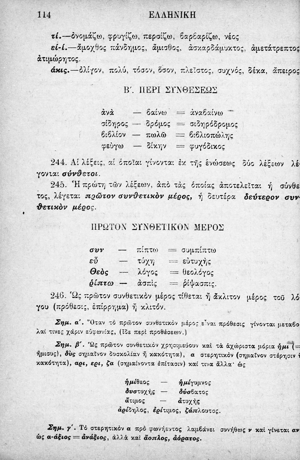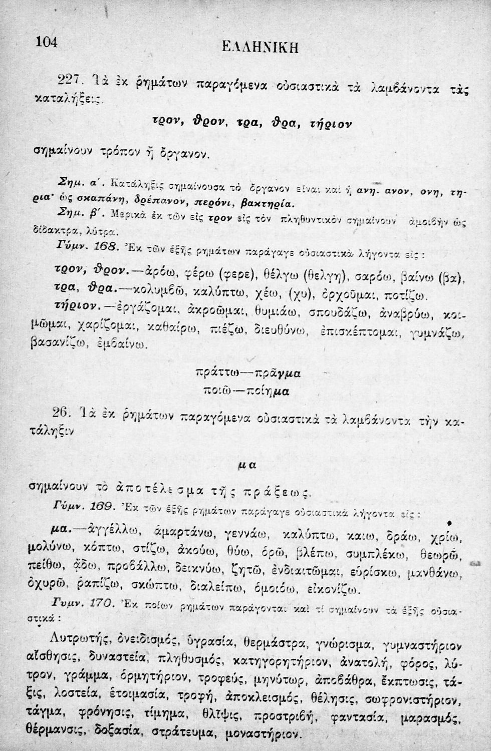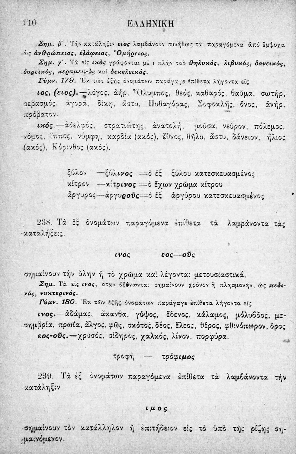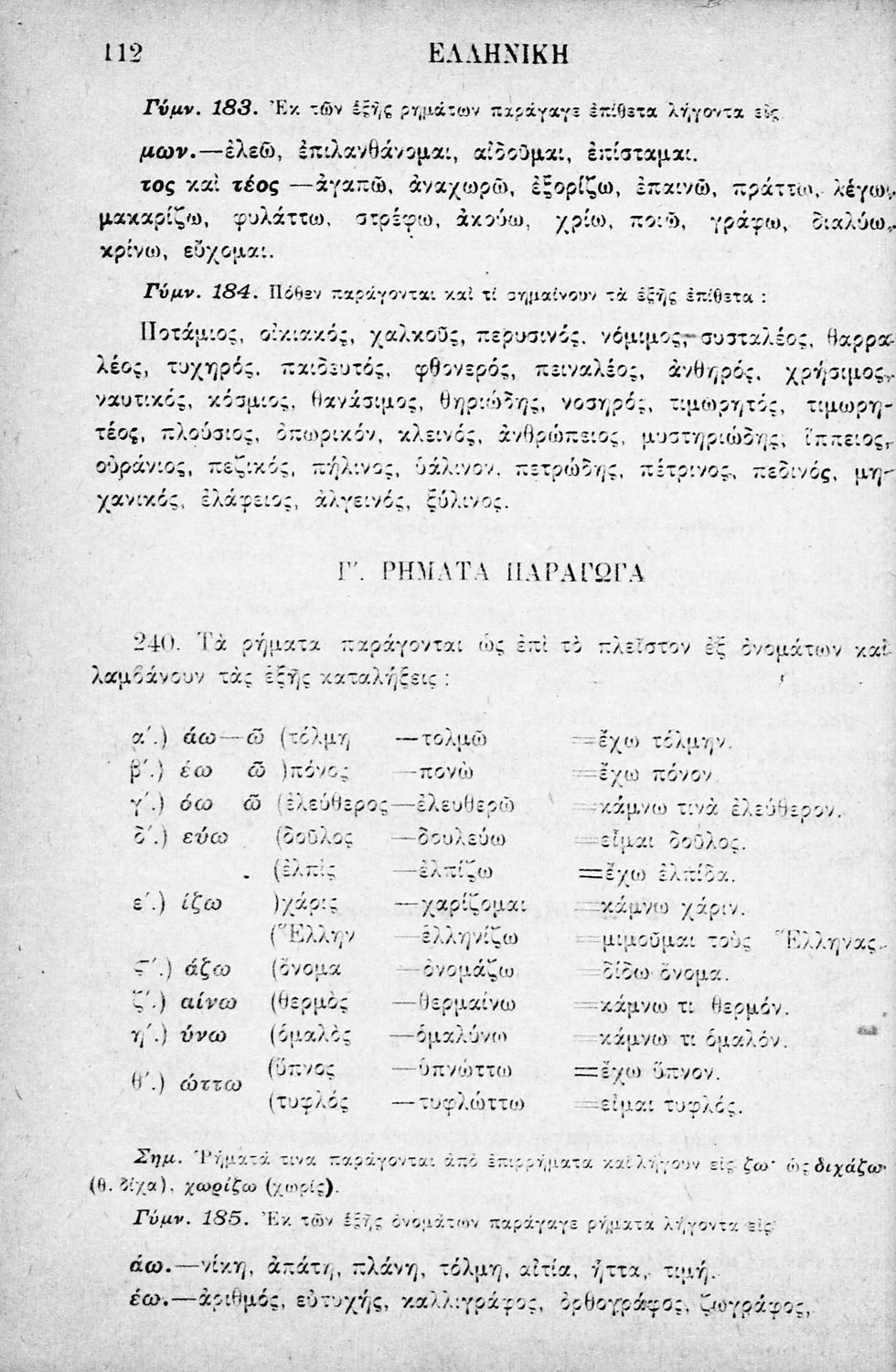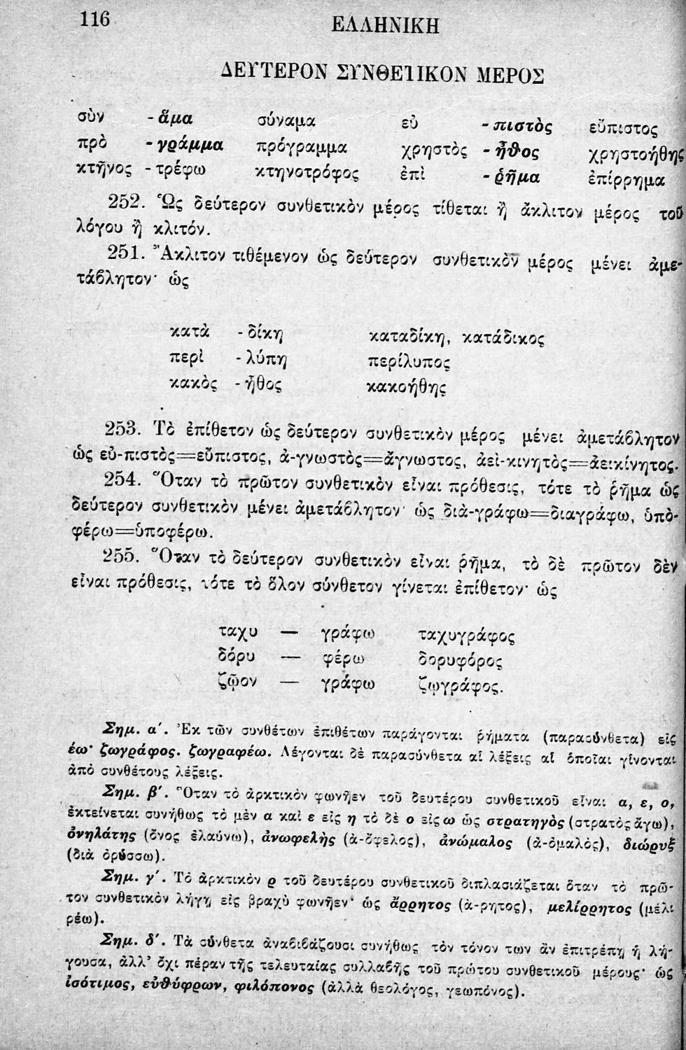 Σχολικό εγχειρίδιο Αρχαίων Ελληνικών Δημοτικού που περιλαμβάνει τους κανόνες γραμματικής και είναι χωρισμένο σε φθογγολογικό, τυπικό και ετυμολογικό μέρος.