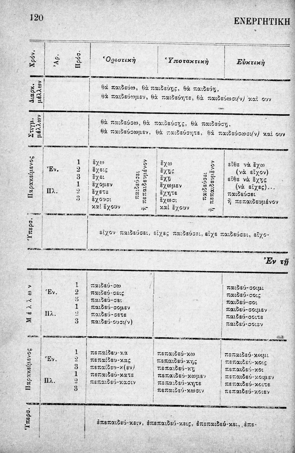 Σχολικό εγχειρίδιο που περιλαμβάνει τη γραμματική της αρχαίας ελληνικής, λεξικό ρημάτων και τους βασικότερους κανόνες του συντακτικού.