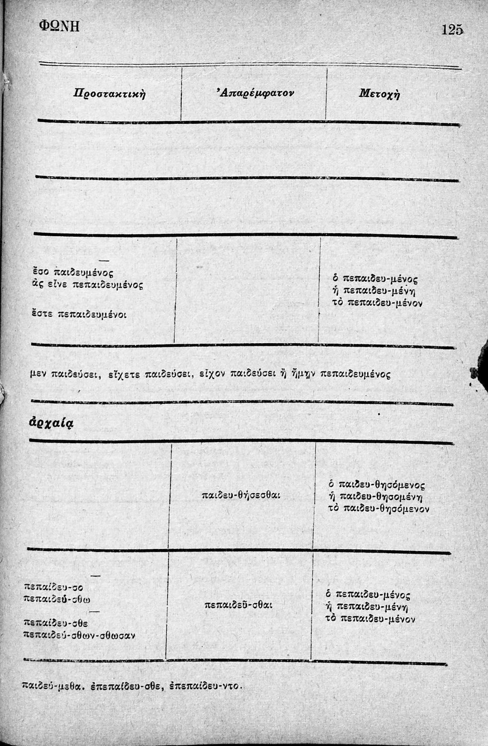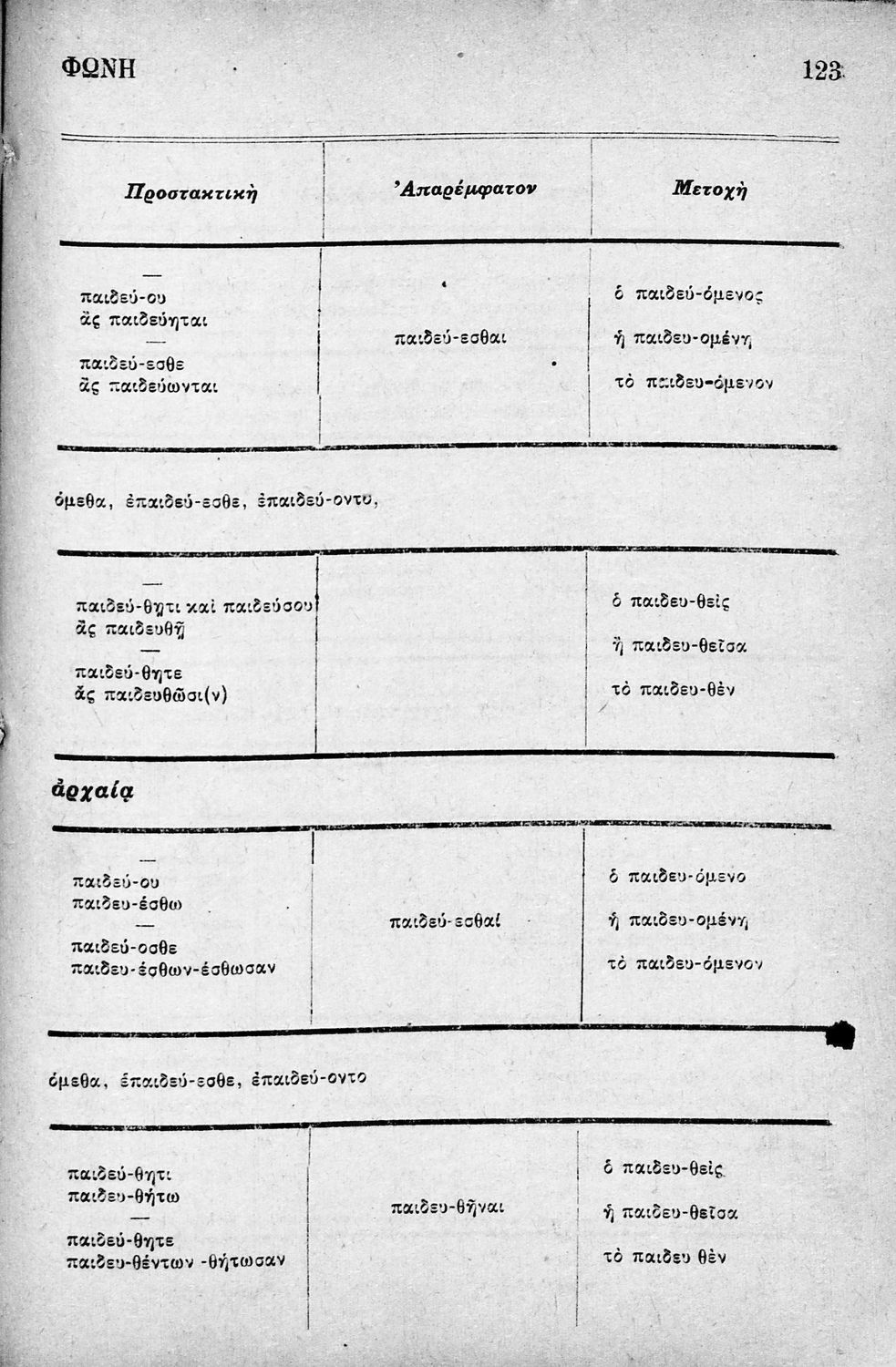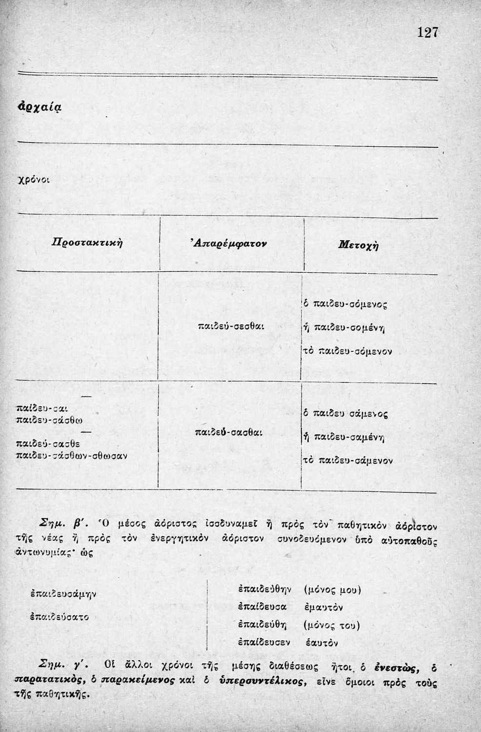 Σχολικό εγχειρίδιο Αρχαίων Ελληνικών Δημοτικού που περιλαμβάνει τους κανόνες γραμματικής και είναι χωρισμένο σε φθογγολογικό, τυπικό και ετυμολογικό μέρος.