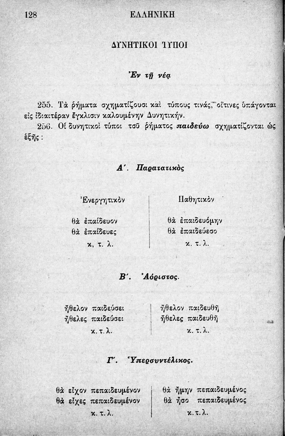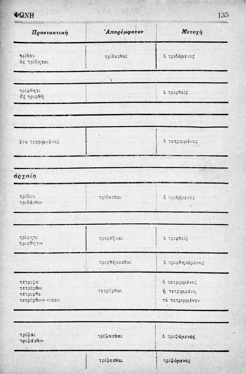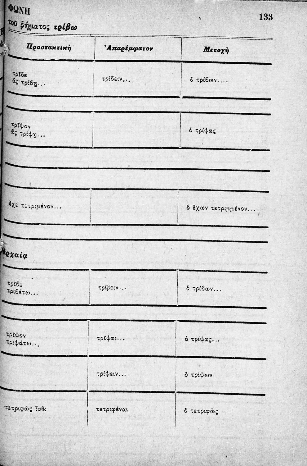 Σχολικό εγχειρίδιο Αρχαίων Ελληνικών Δημοτικού που περιλαμβάνει τους κανόνες γραμματικής και είναι χωρισμένο σε φθογγολογικό, τυπικό και ετυμολογικό μέρος.