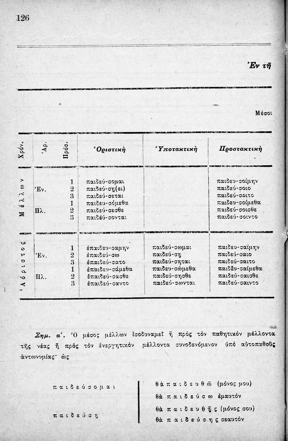 Σχολικό εγχειρίδιο που περιλαμβάνει τη γραμματική της αρχαίας ελληνικής, λεξικό ρημάτων και τους βασικότερους κανόνες του συντακτικού.