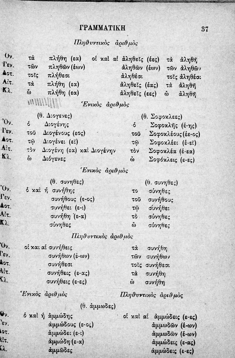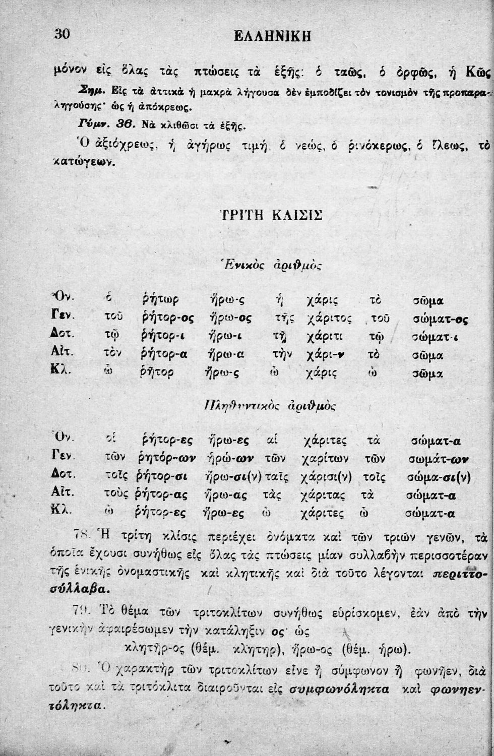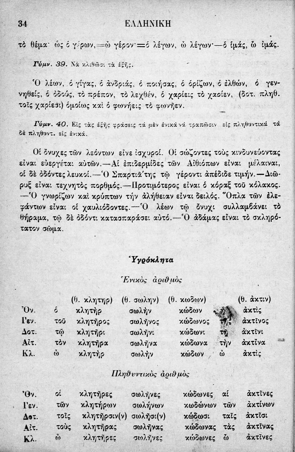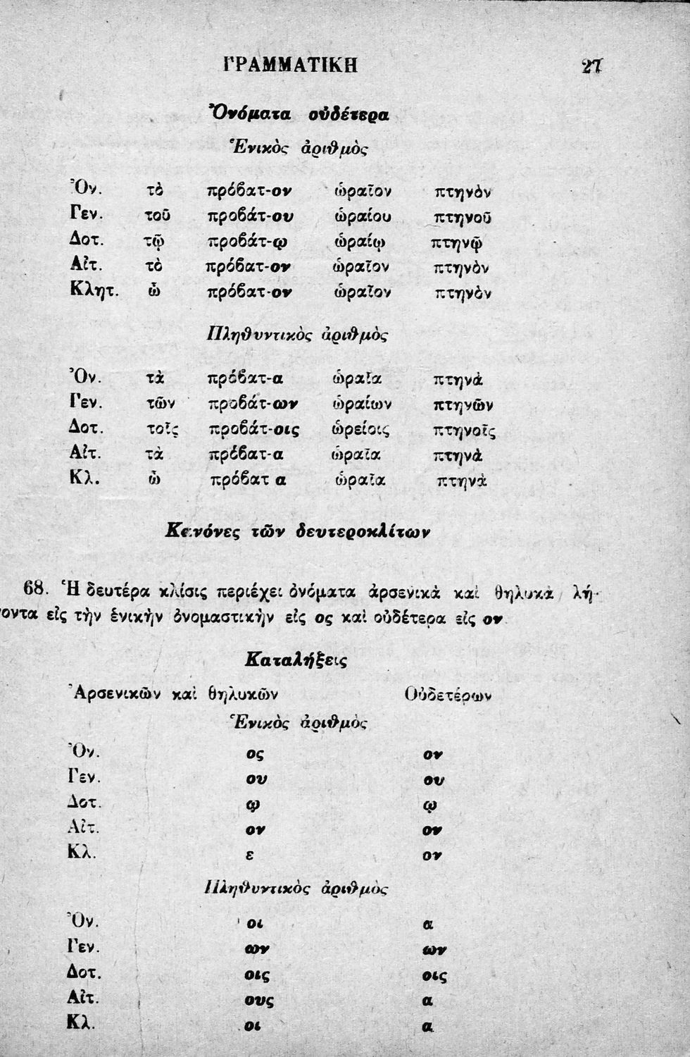 Σχολικό εγχειρίδιο Αρχαίων Ελληνικών Δημοτικού που περιλαμβάνει τους κανόνες γραμματικής και είναι χωρισμένο σε φθογγολογικό, τυπικό και ετυμολογικό μέρος.