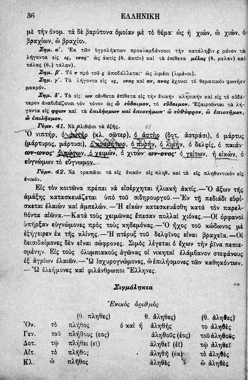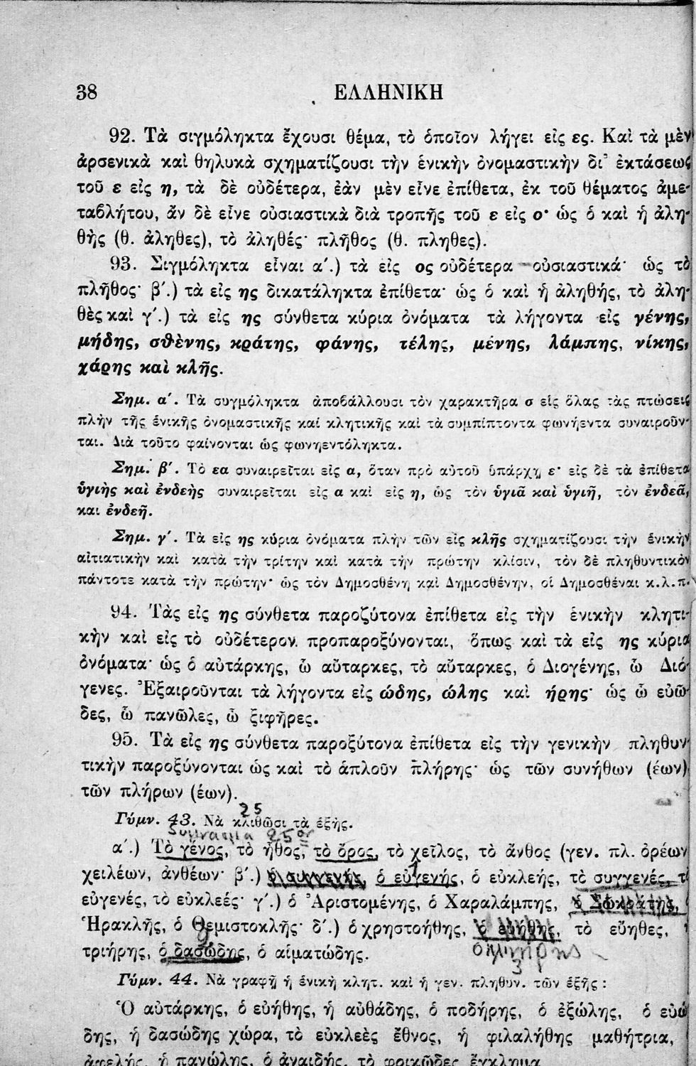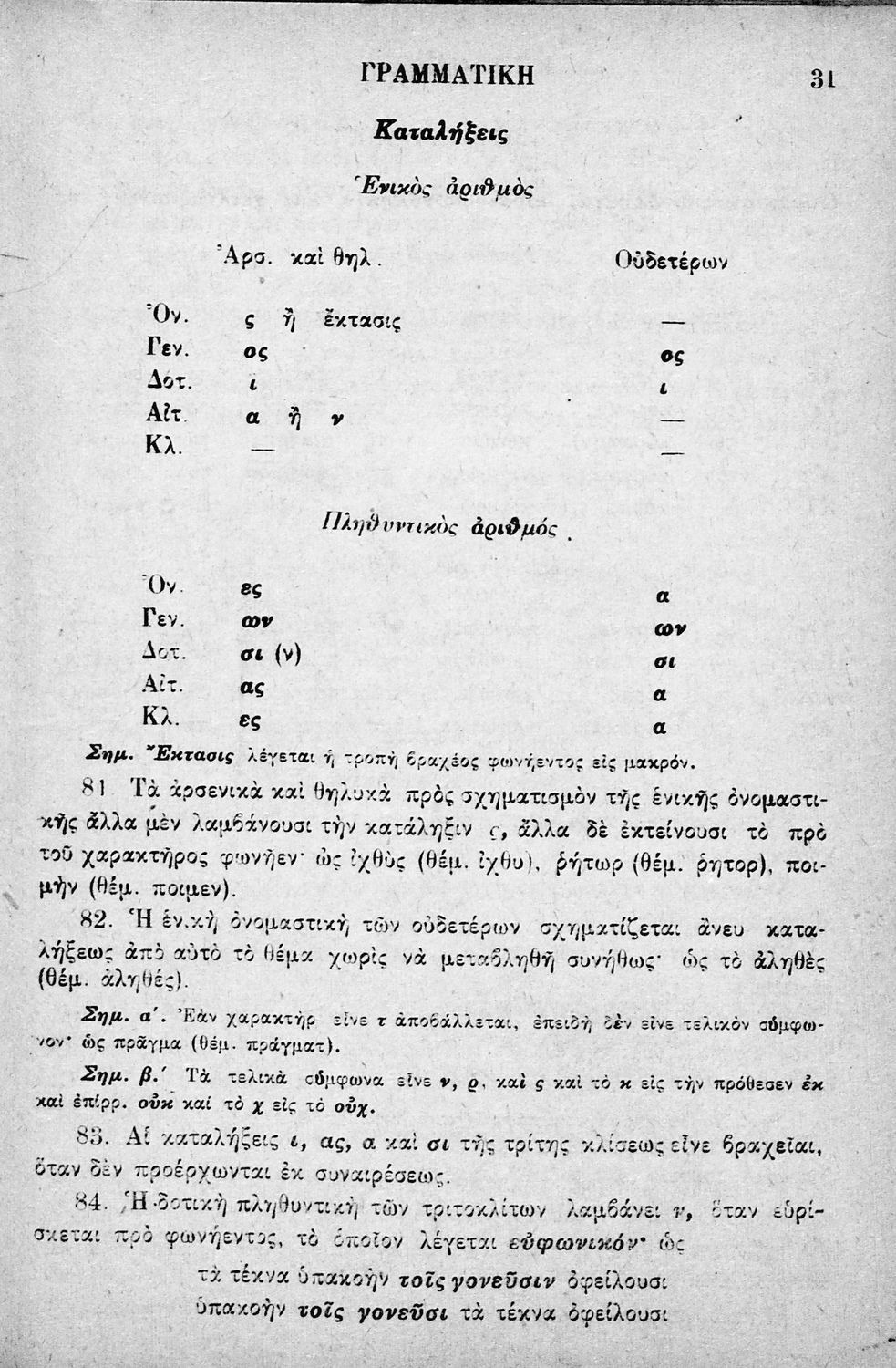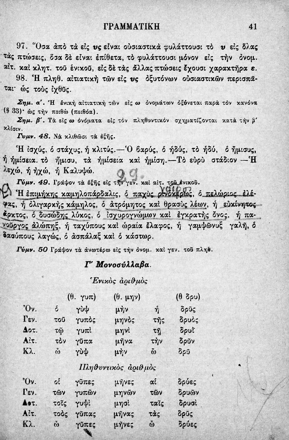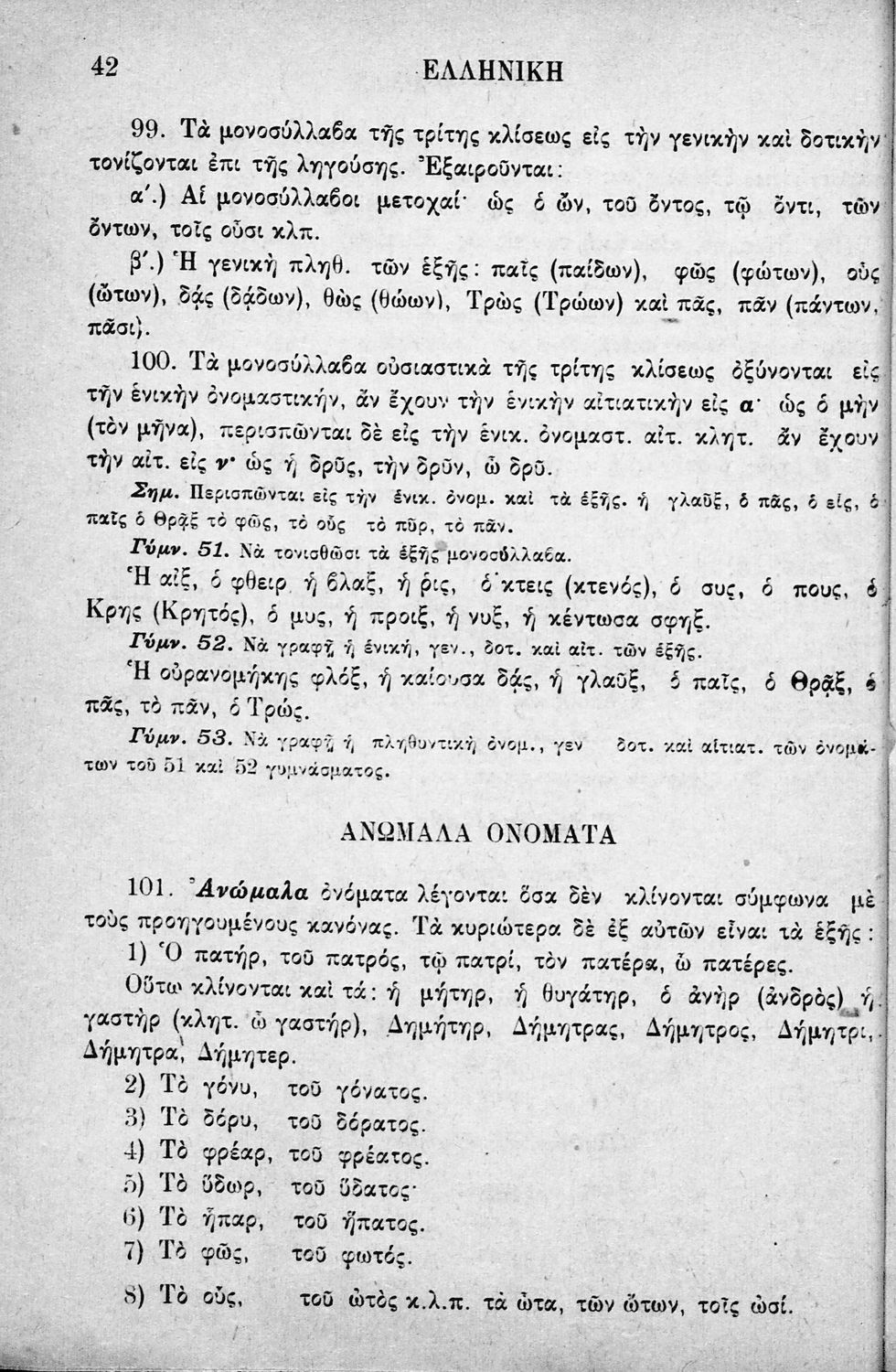 Σχολικό εγχειρίδιο Αρχαίων Ελληνικών Δημοτικού που περιλαμβάνει τους κανόνες γραμματικής και είναι χωρισμένο σε φθογγολογικό, τυπικό και ετυμολογικό μέρος.