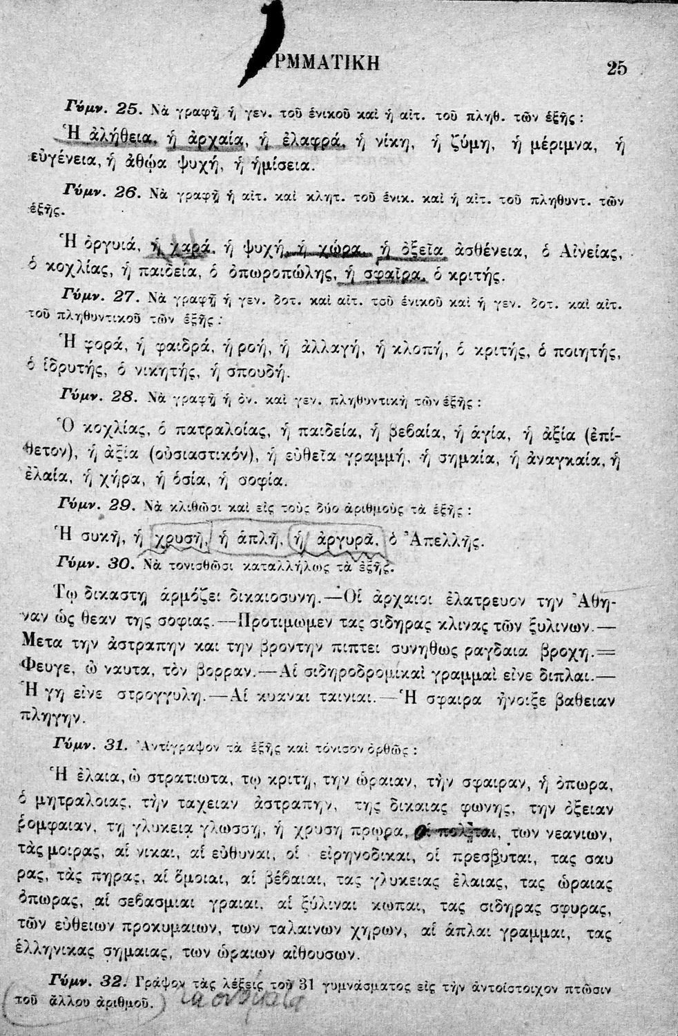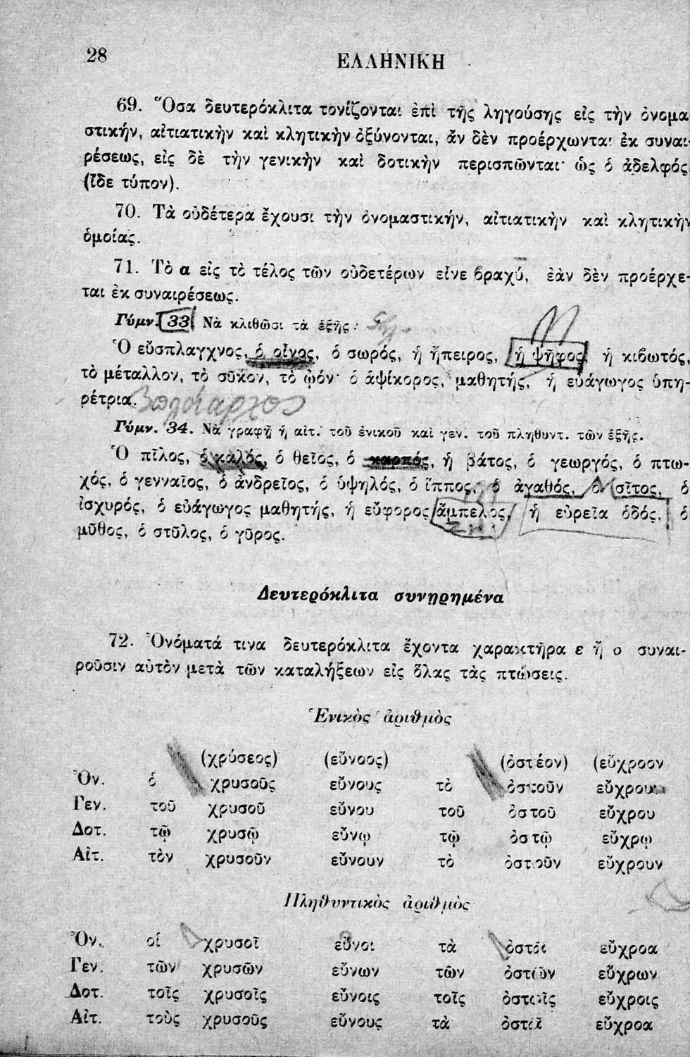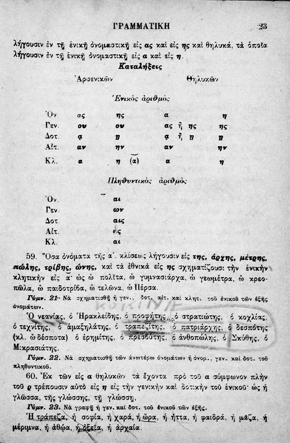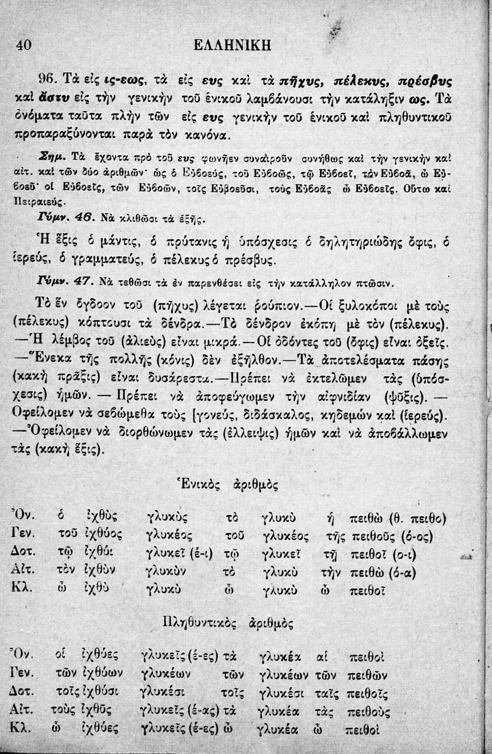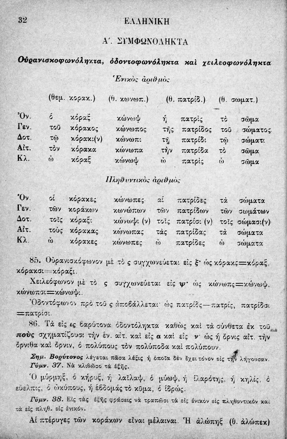 Σχολικό εγχειρίδιο Αρχαίων Ελληνικών Δημοτικού που περιλαμβάνει τους κανόνες γραμματικής και είναι χωρισμένο σε φθογγολογικό, τυπικό και ετυμολογικό μέρος.