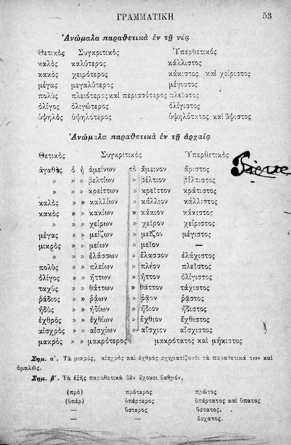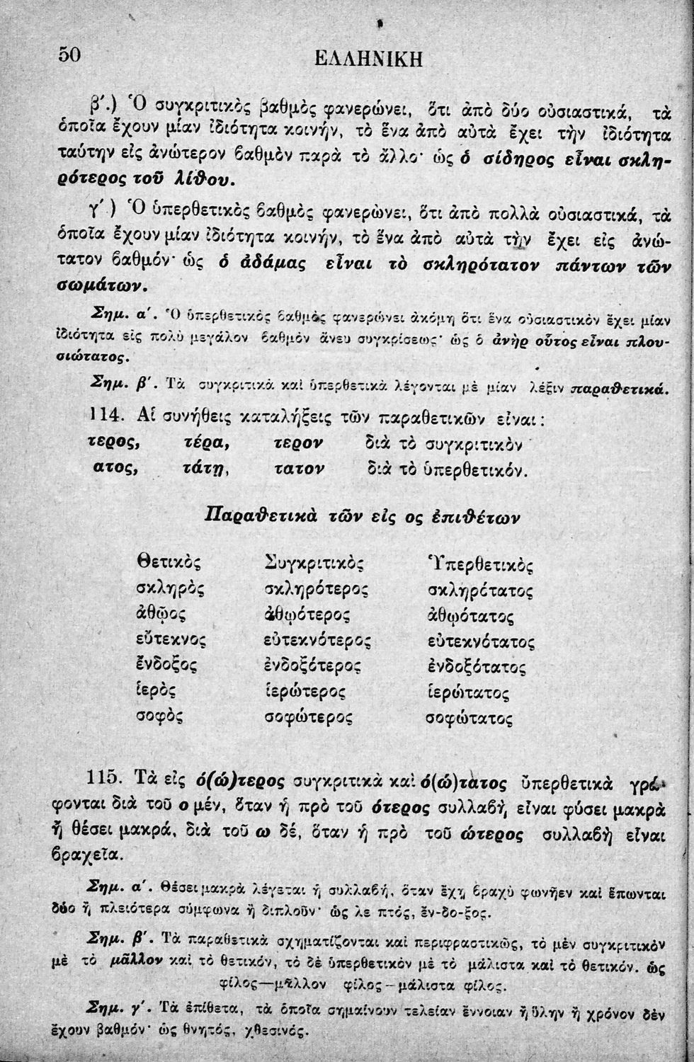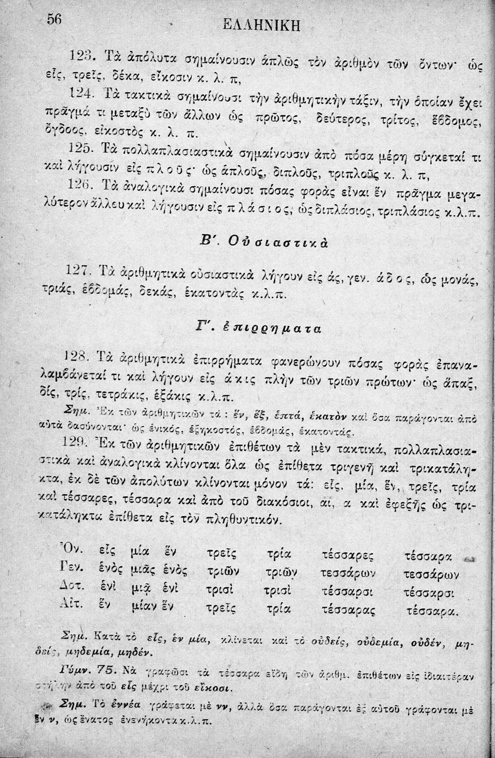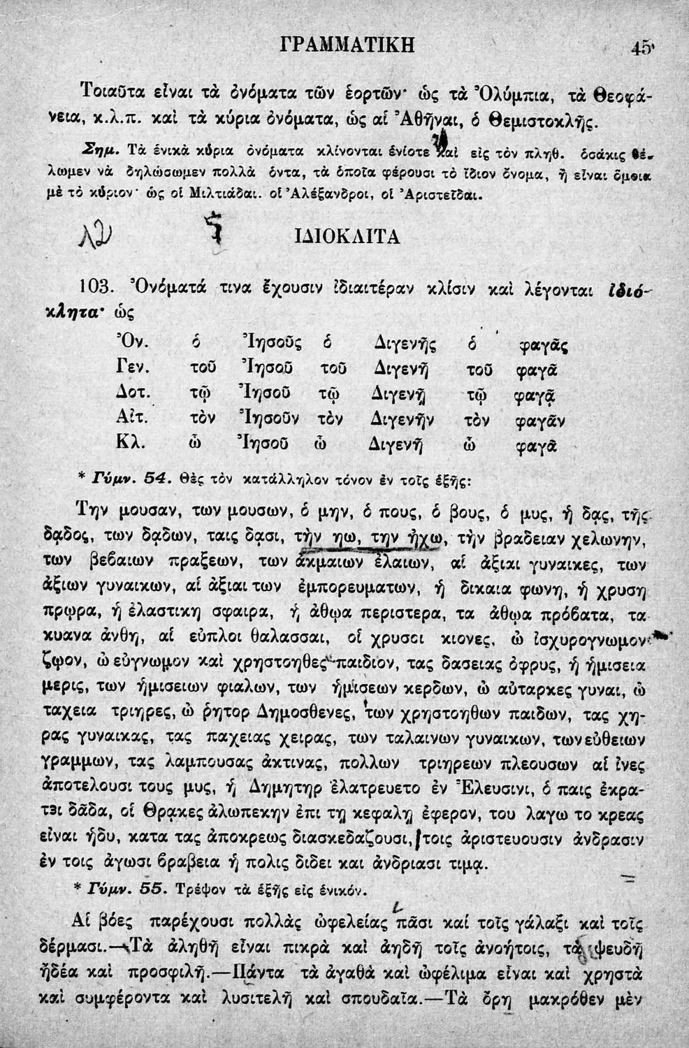 Σχολικό εγχειρίδιο Αρχαίων Ελληνικών Δημοτικού που περιλαμβάνει τους κανόνες γραμματικής και είναι χωρισμένο σε φθογγολογικό, τυπικό και ετυμολογικό μέρος.