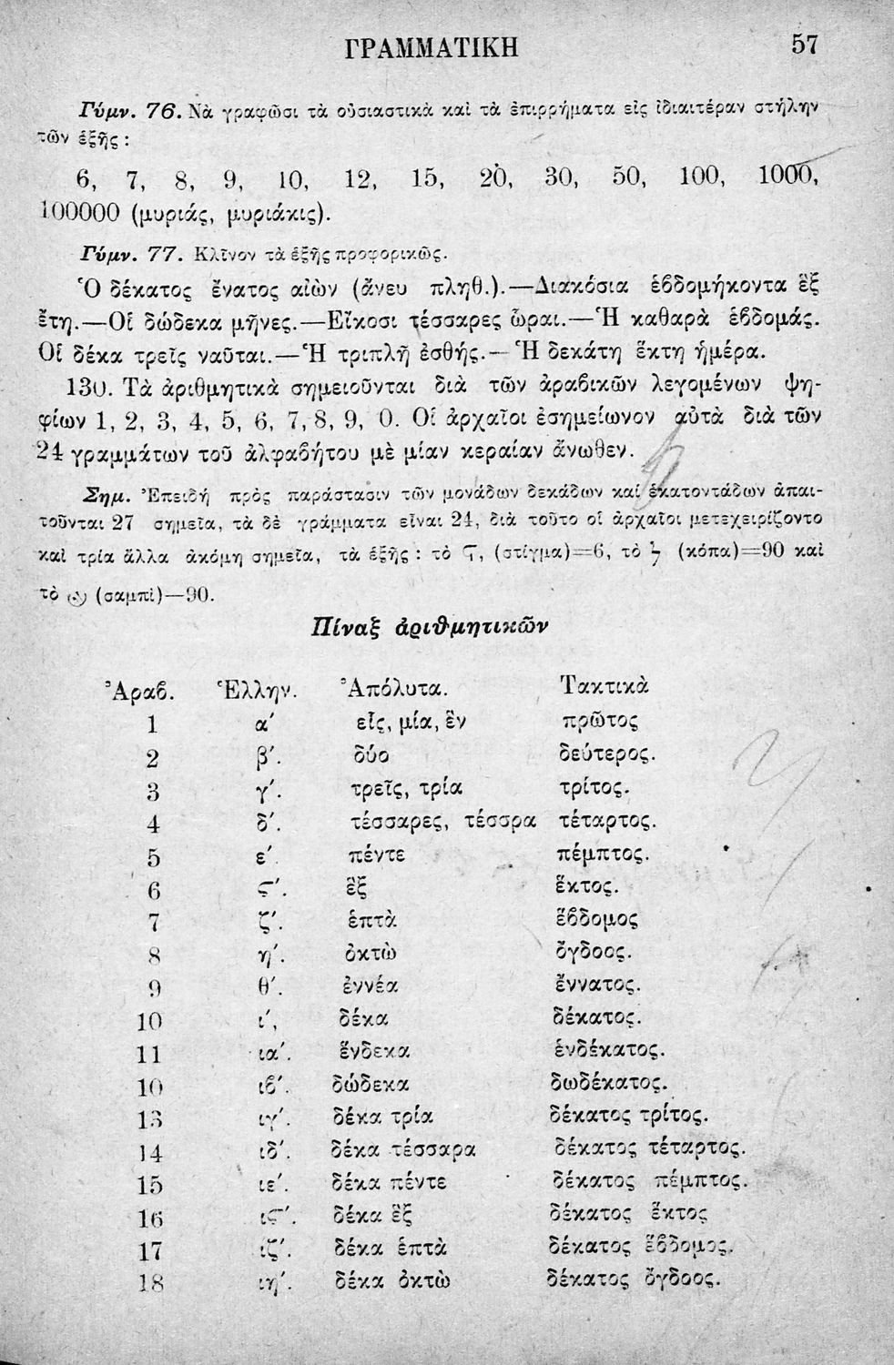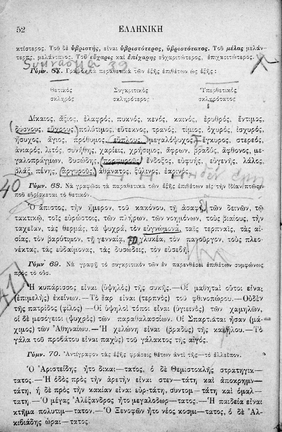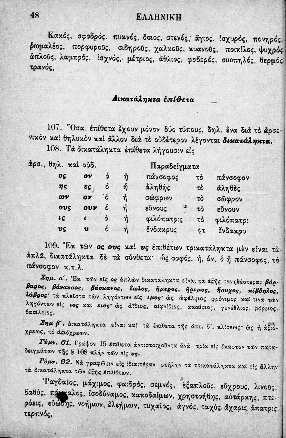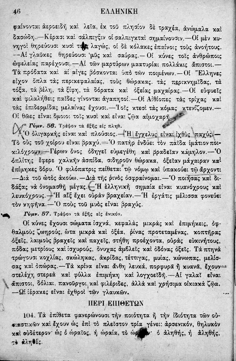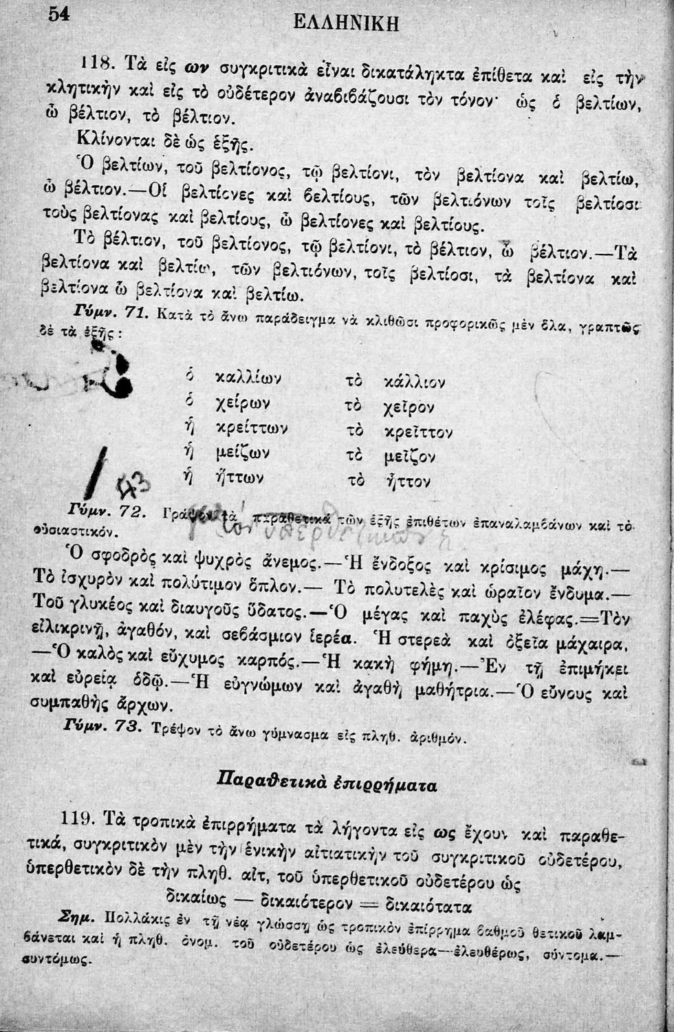 Σχολικό εγχειρίδιο Αρχαίων Ελληνικών Δημοτικού που περιλαμβάνει τους κανόνες γραμματικής και είναι χωρισμένο σε φθογγολογικό, τυπικό και ετυμολογικό μέρος.