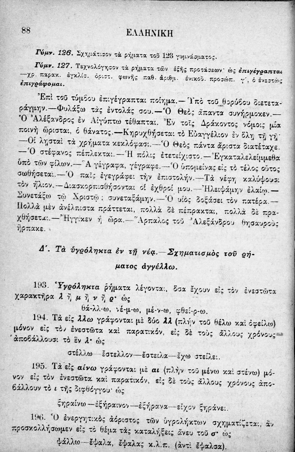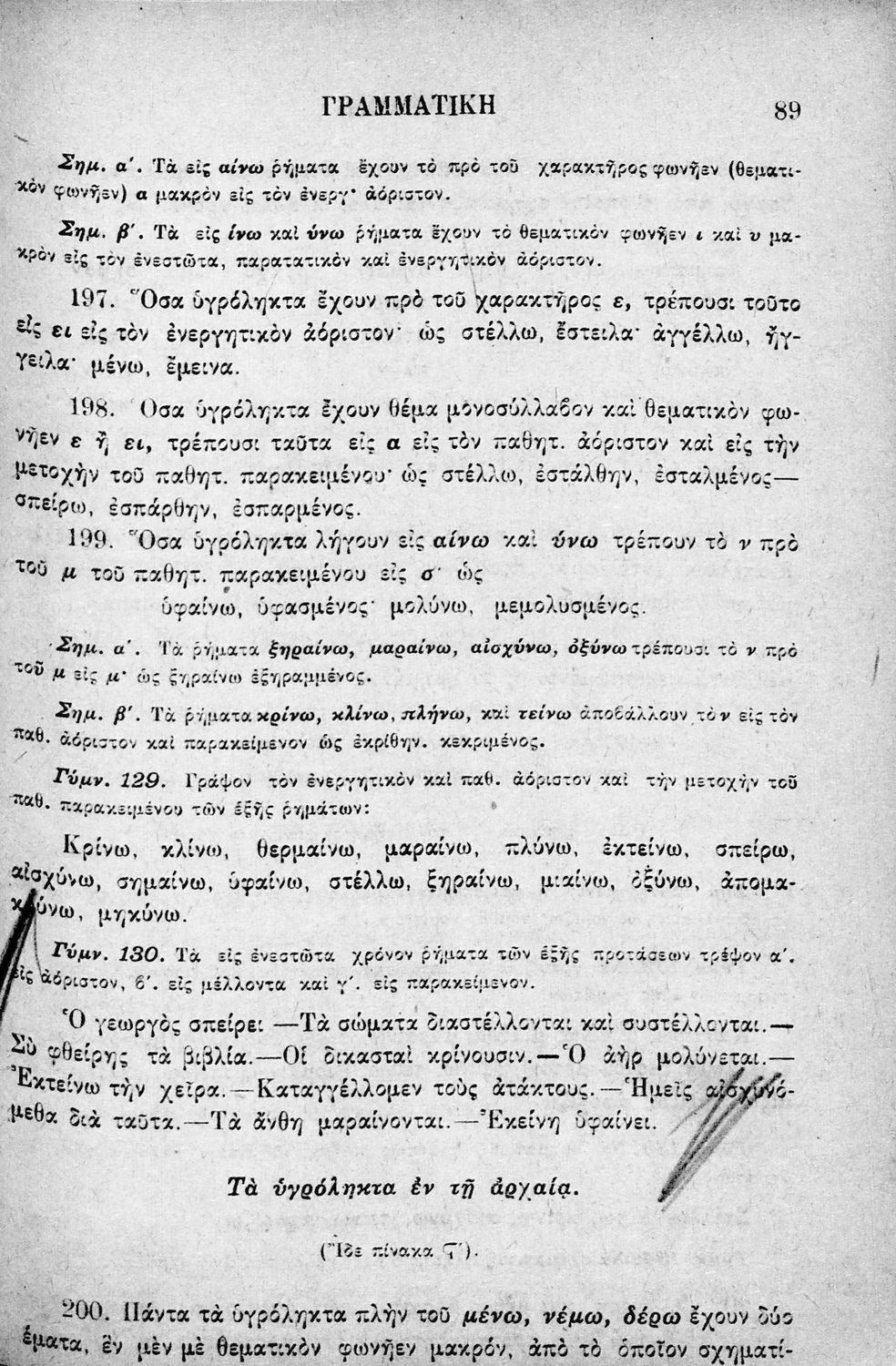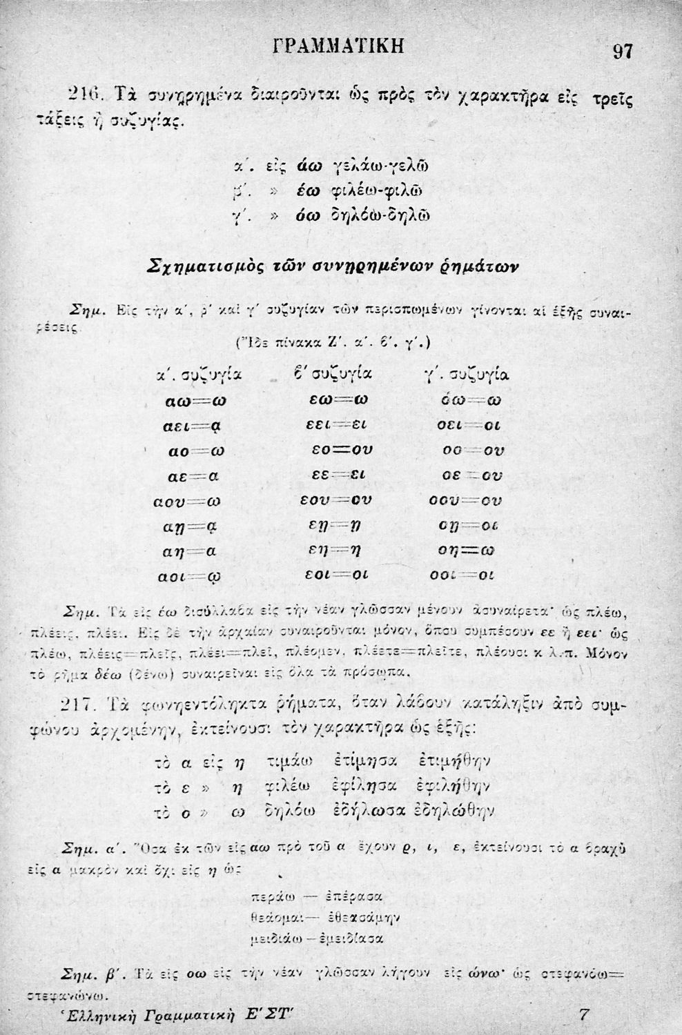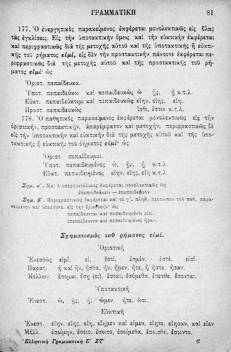 Βαθμίδα εκπαίδευσης: Πρωτοβάθμια Τάξη: Ε' Δημοτικού / ΣΤ' Δημοτικού Μάθημα: Νέα Ελληνικά Γλώσσα: Καθαρεύουσα Παρουσίαση περιεχομένου: Σχολικό εγχειρίδιο Γλώσσας Ε΄ και ΣΤ΄ Δημοτικού που περιλαμβάνει τους κανόνες γραμματικής της νέας ελληνικής. |