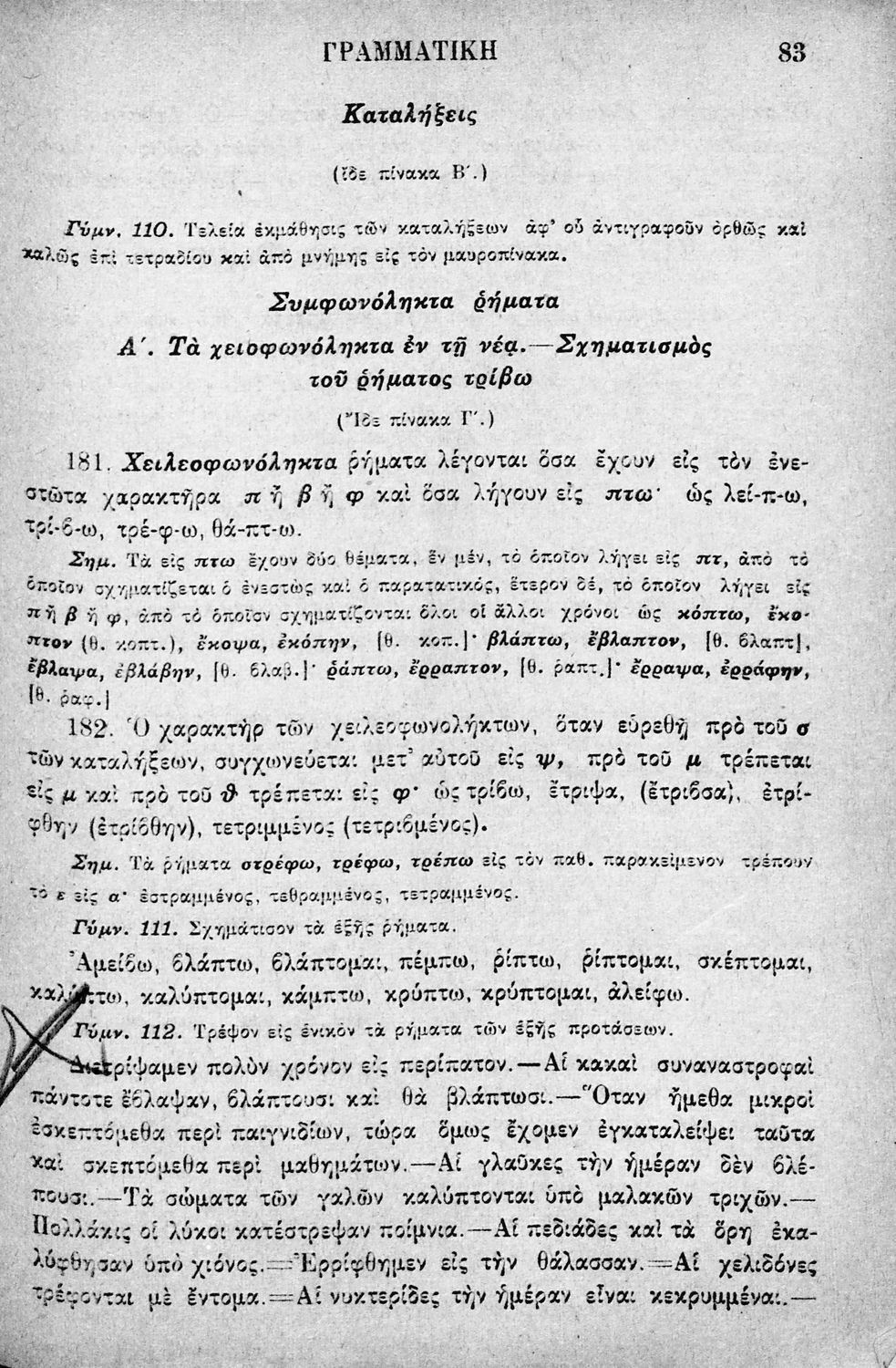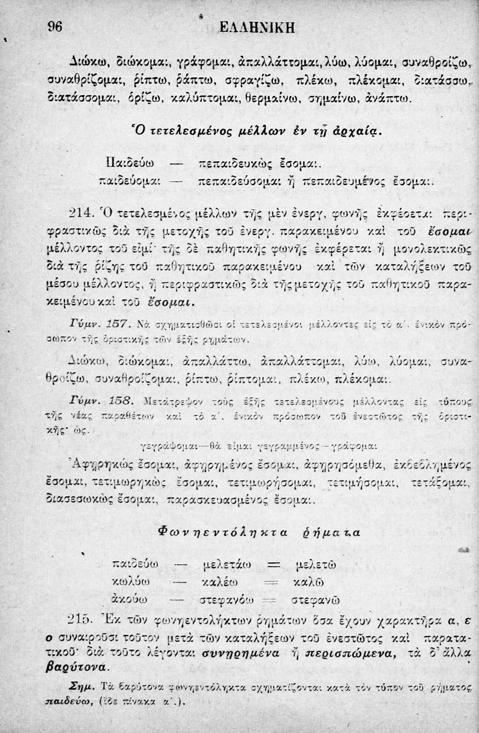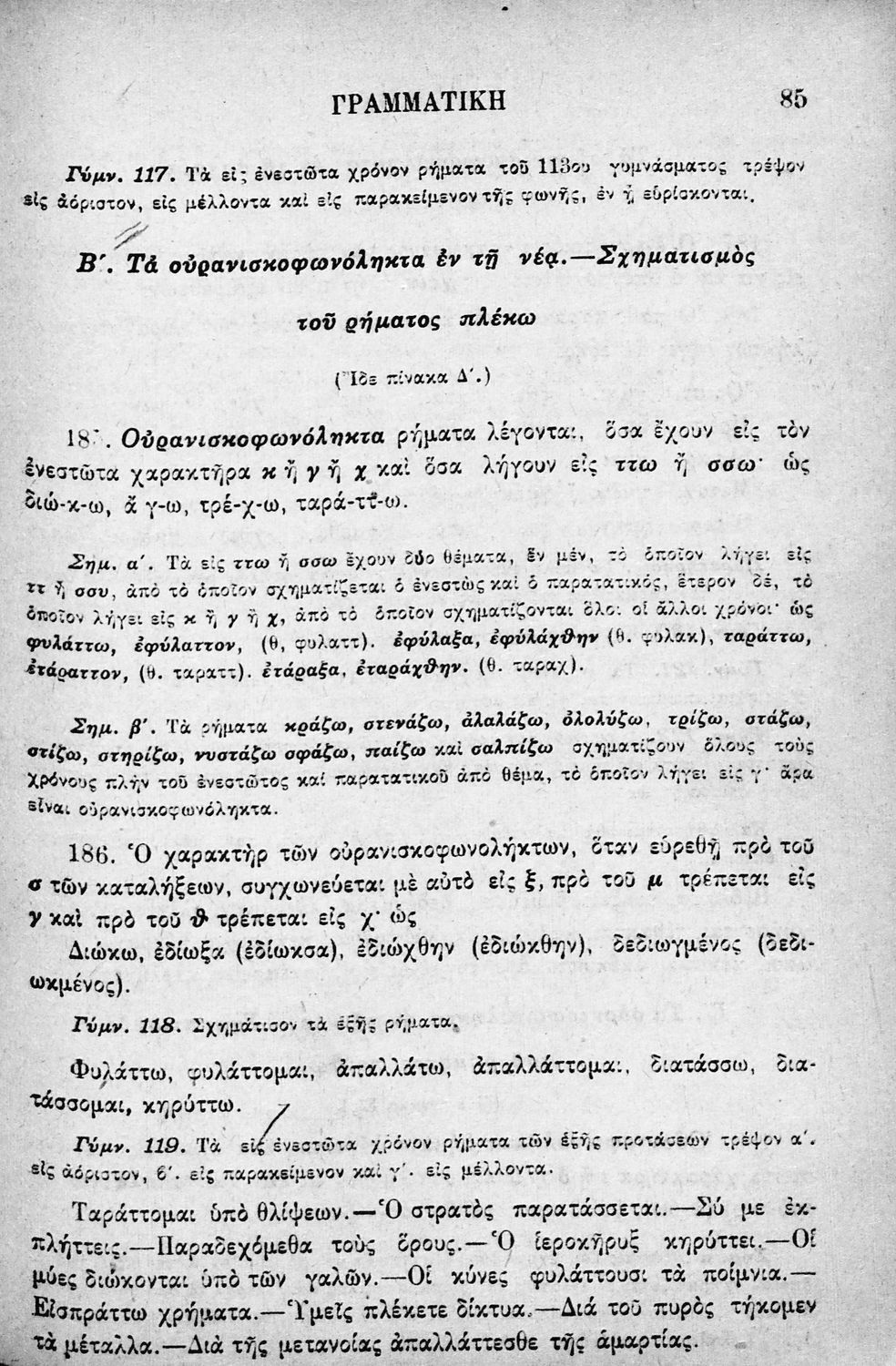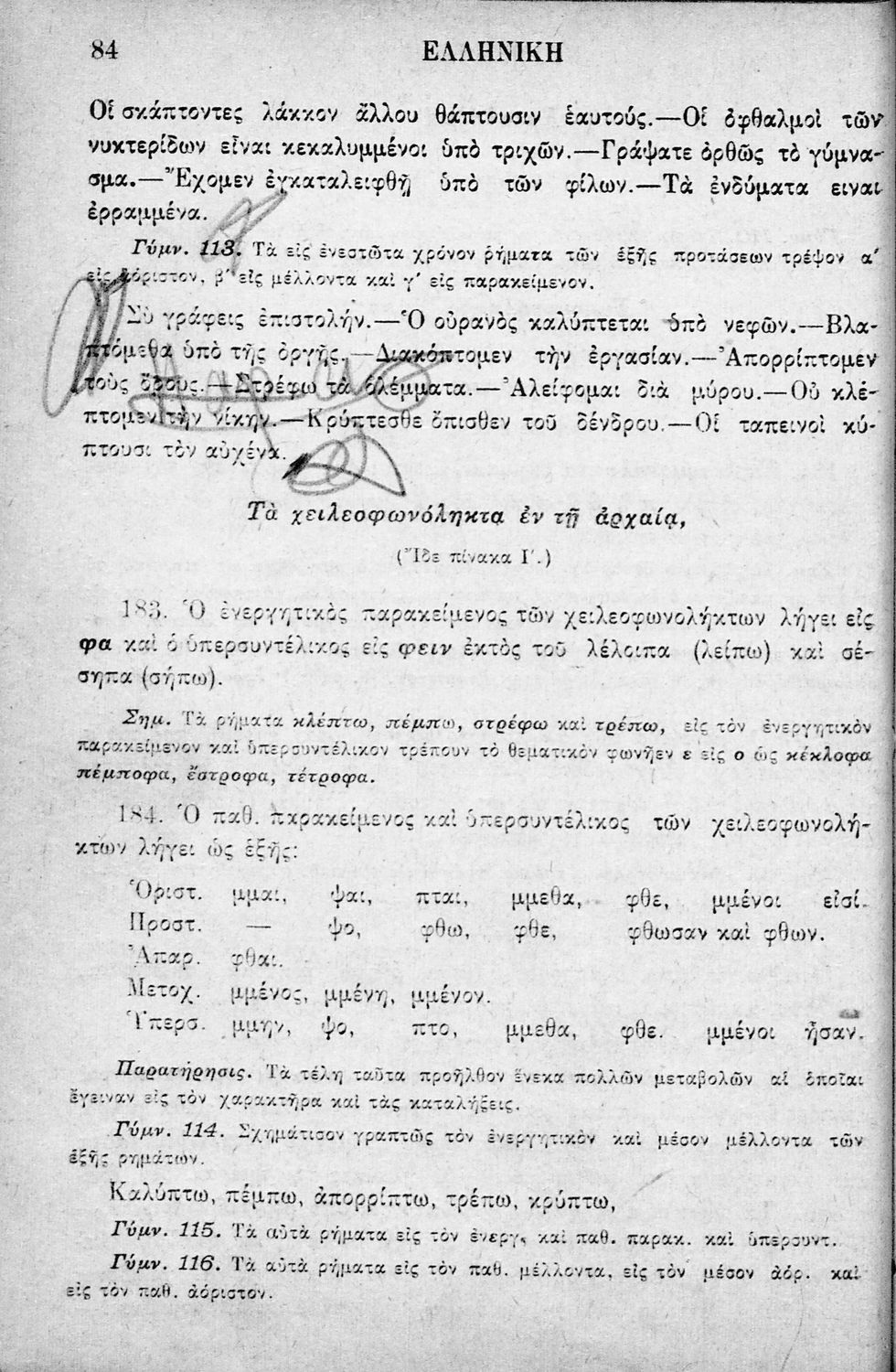 Βαθμίδα εκπαίδευσης: Πρωτοβάθμια Τάξη: Ε' Δημοτικού / ΣΤ' Δημοτικού Μάθημα: Νέα Ελληνικά Γλώσσα: Καθαρεύουσα Παρουσίαση περιεχομένου: Σχολικό εγχειρίδιο Γλώσσας Ε΄ και ΣΤ΄ Δημοτικού που περιλαμβάνει τους κανόνες γραμματικής της νέας ελληνικής. |