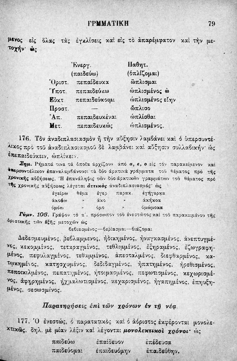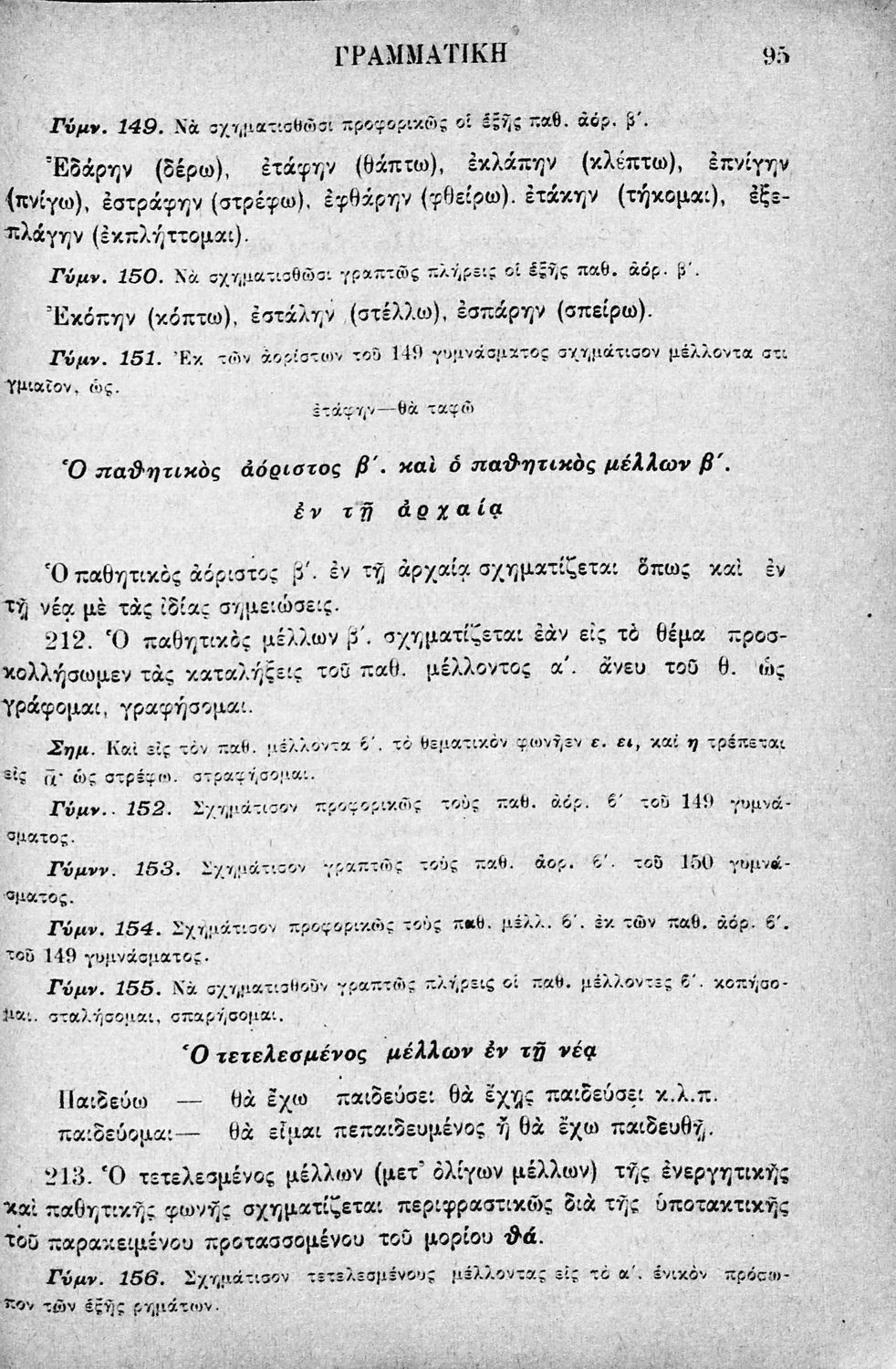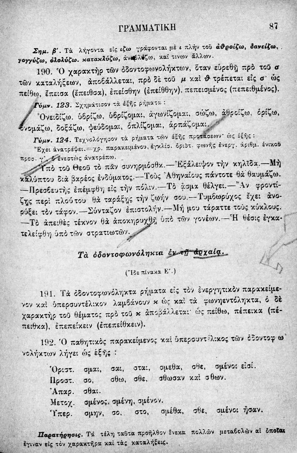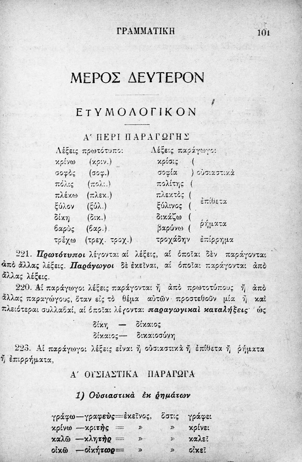 Βαθμίδα εκπαίδευσης: Πρωτοβάθμια Τάξη: Ε' Δημοτικού / ΣΤ' Δημοτικού Μάθημα: Νέα Ελληνικά Γλώσσα: Καθαρεύουσα Παρουσίαση περιεχομένου: Σχολικό εγχειρίδιο Γλώσσας Ε΄ και ΣΤ΄ Δημοτικού που περιλαμβάνει τους κανόνες γραμματικής της νέας ελληνικής. |