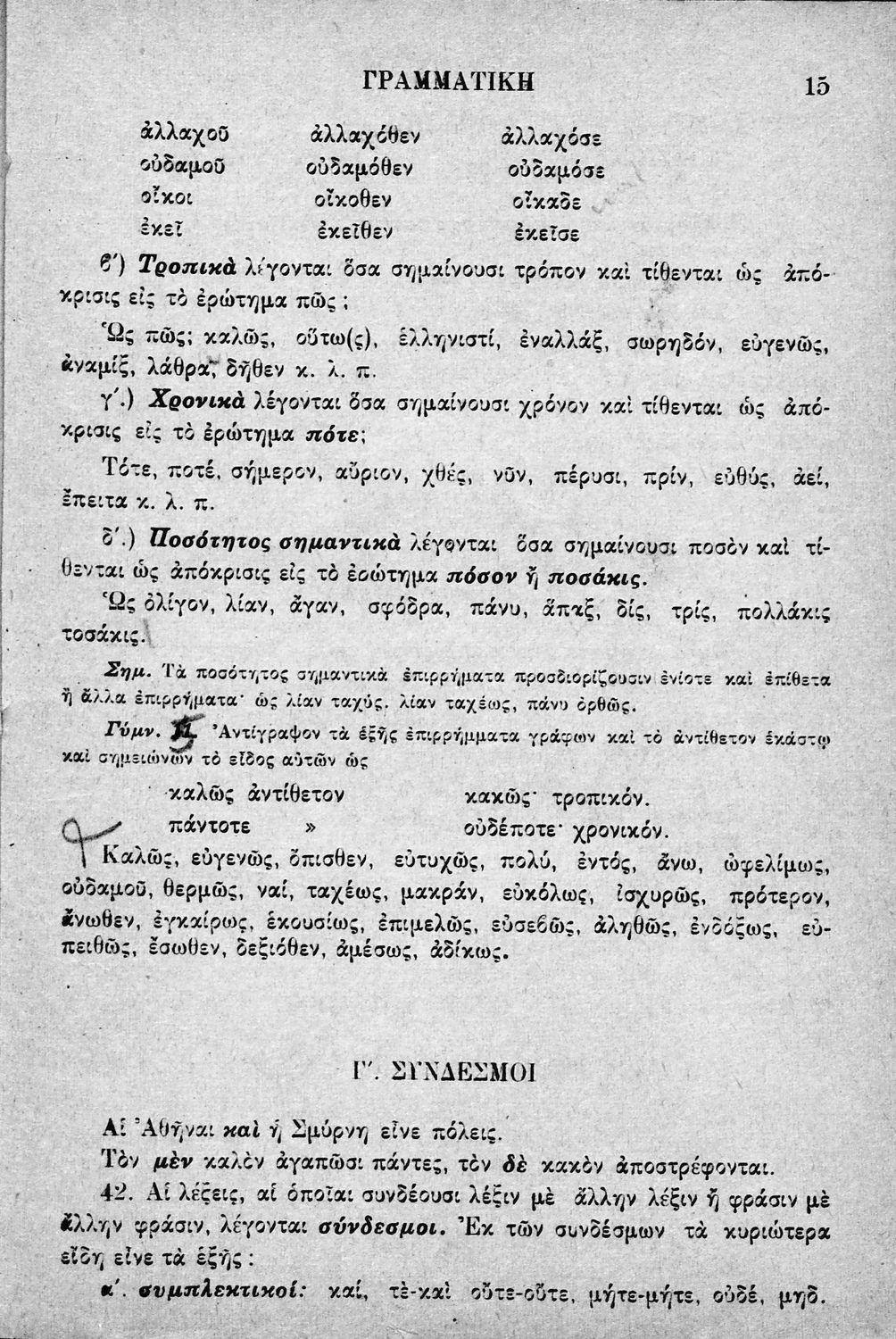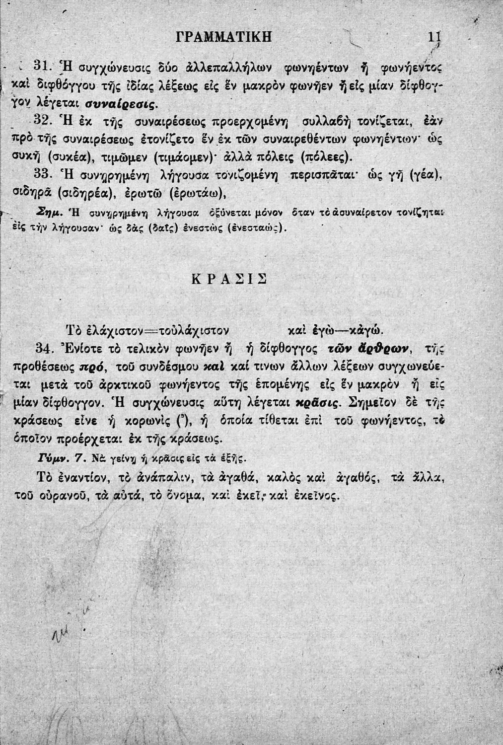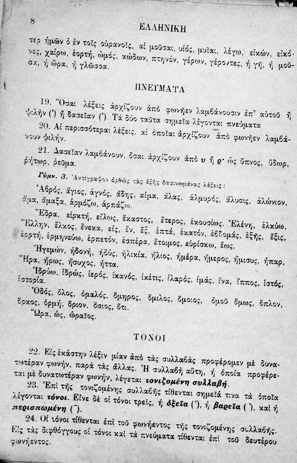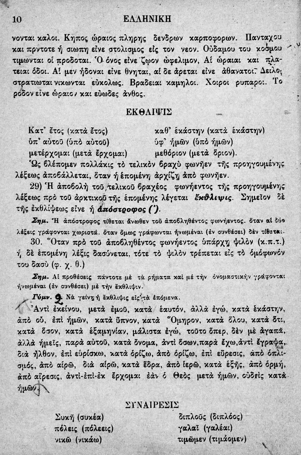 Σχολικό εγχειρίδιο Αρχαίων Ελληνικών Δημοτικού που περιλαμβάνει τους κανόνες γραμματικής και είναι χωρισμένο σε φθογγολογικό, τυπικό και ετυμολογικό μέρος.