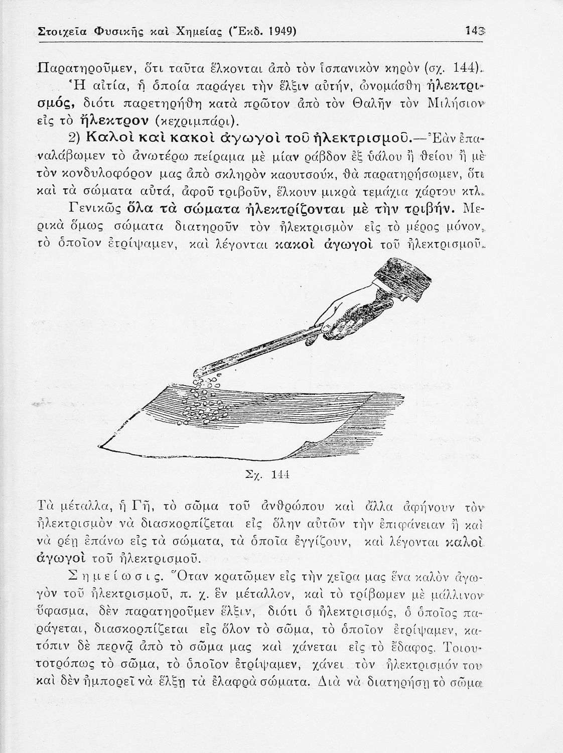 Σχολικό εγχειρίδιο Φυσικής και Χημείας που προσδιορίζει τη μηχανική στερεών σωμάτων, αναφέρει τις ιδιότητες ποικίλων στοιχείων της φύσης (οξυγόνο, υδρογόνο, αέρα, νερό) περιγράφοντας τις χημικές ενώσεις που ...