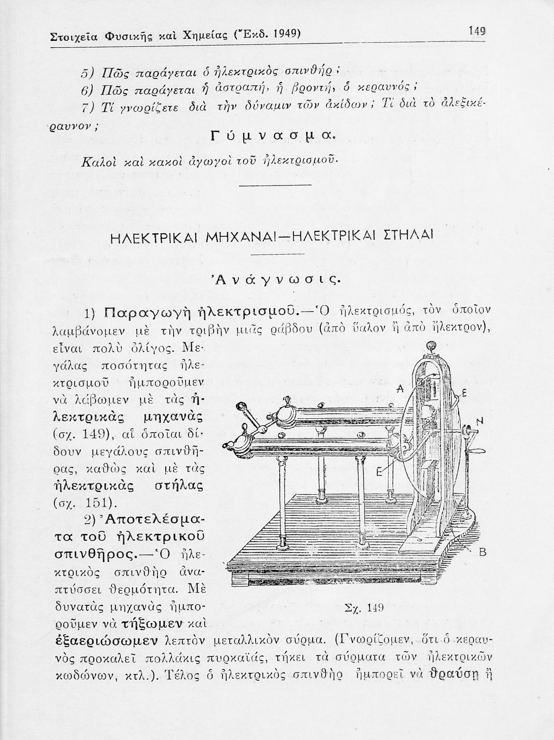 Μαθητικό βοήθημα της Ε΄ και ΣΤ΄ Δημοτικού για το μάθημα της Φυσικής στο Δημοτικό . Παρέχει βασικές γνώσεις της Φυσικής επιστήμης και της Χημείας. Αναλύει τις ιδιότητες των σωμάτων, καθώς και της θερμότητας, του ηλεκτρισμού και του μαγνητισμού, την υδροστατική, την βαρύτητα και την αεροστατική. Σχετικά με τη χημεία αναφέρεται στα μέταλλα, στα οξέα, τις βάσεις, τα άλατα. Αναφέρεται στην πρακτική εφαρμογή της φυσικής και της χημείας στην καθημερινότητά. Επίσης, περιλαμβάνει πολλά από τα όργανα, που χρησιμοποιούνται στη φυσική, και τη χημεία. Περιέχει εικόνες και σχεδιαγράμματα τα οποία βοηθούν τη διδασκαλία. Προτείνεται μια συγκεκριμένη δομή για τη διδασκαλία σύμφωνα με την οποία το μάθημα διαρθρώνεται αρχικά στην ανάγνωση, που αναφέρεται στη θεωρία, στην περίληψη των σημαντικότερων σημείων, στις ερωτήσεις κατανόησης και τέλος στο γύμνασμα, το οποίο είναι η πρακτική εφαρμογή για την εμπέδωση της θεωρίας.