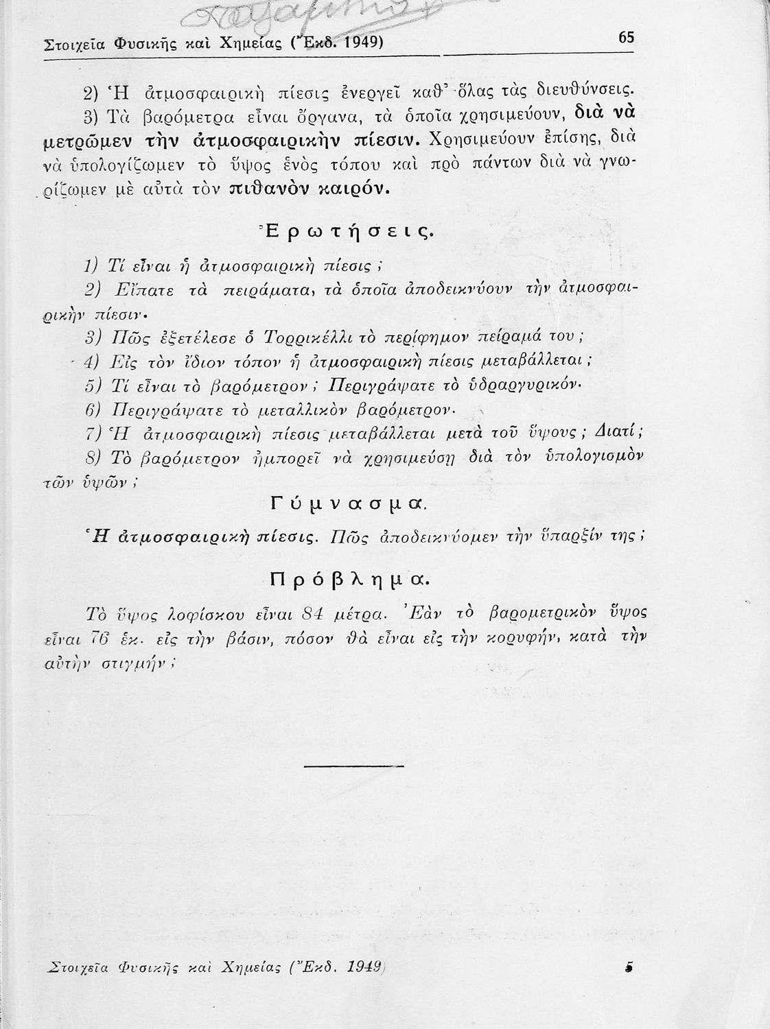 Τίτλος: Στοιχεία Φυσικής και Χημείας δια την Α΄ τάξιν των Γυμνασίων