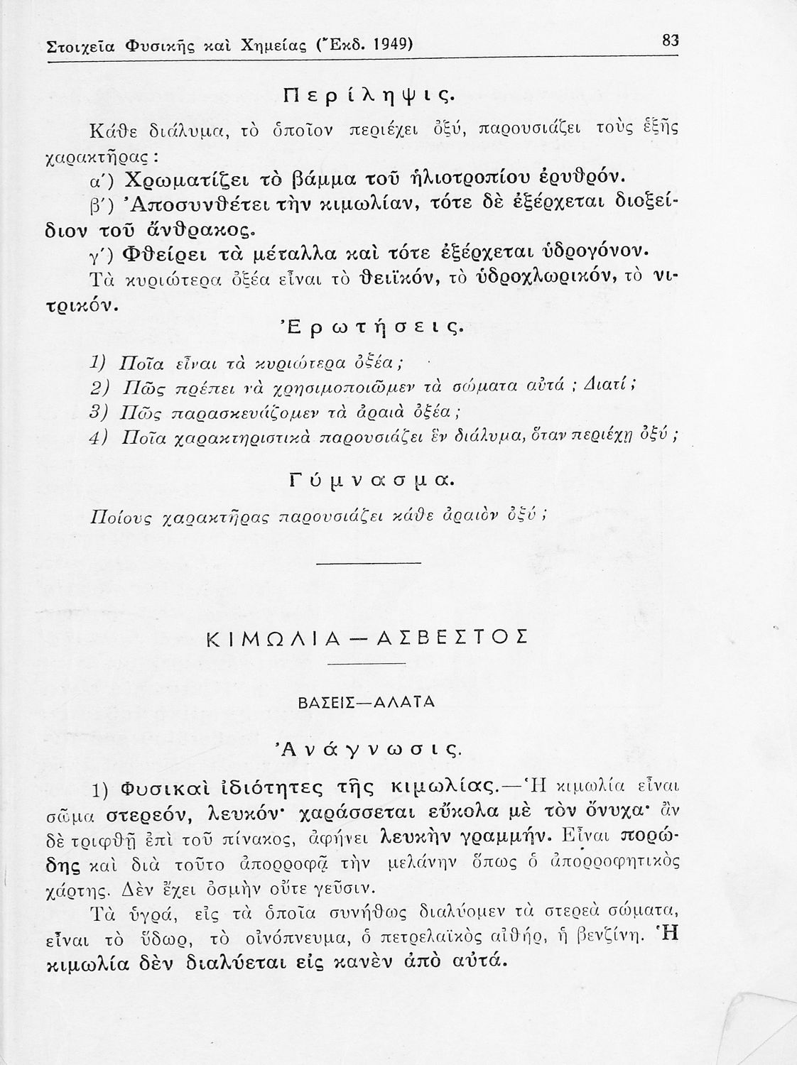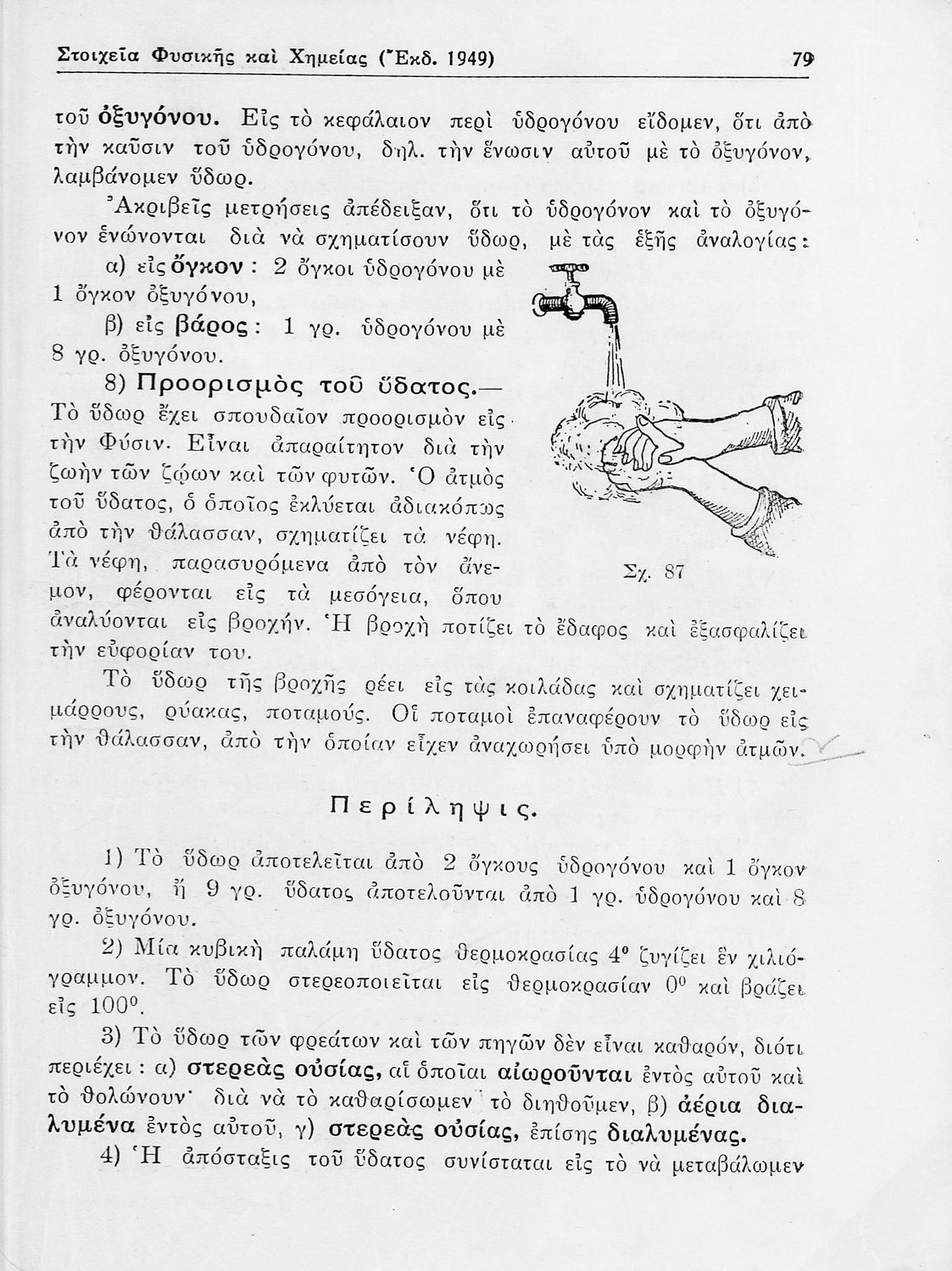 Σχολικό εγχειρίδιο Φυσικής και Χημείας που προσδιορίζει τη μηχανική στερεών σωμάτων, αναφέρει τις ιδιότητες ποικίλων στοιχείων της φύσης (οξυγόνο, υδρογόνο, αέρα, νερό) περιγράφοντας τις χημικές ενώσεις που ...