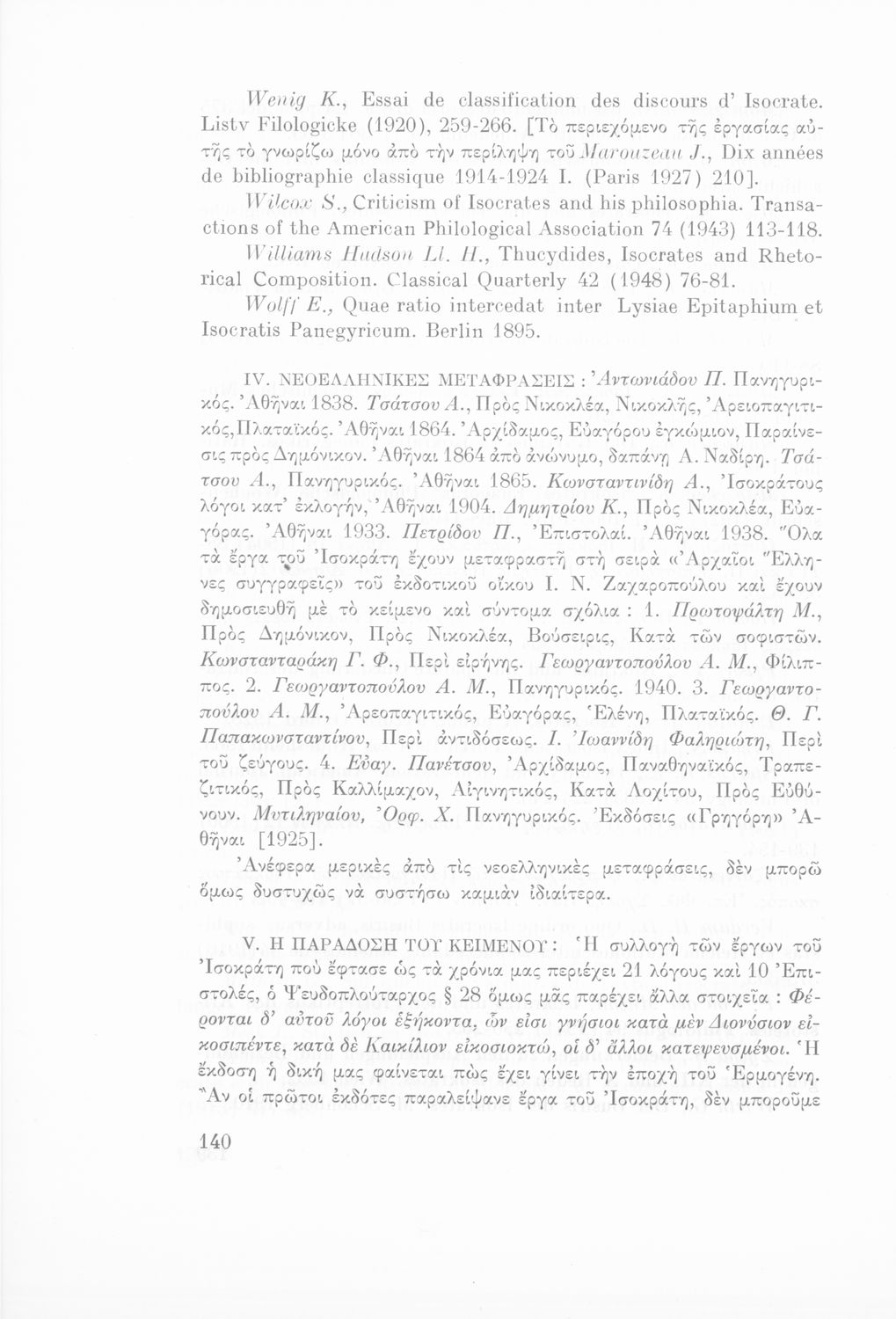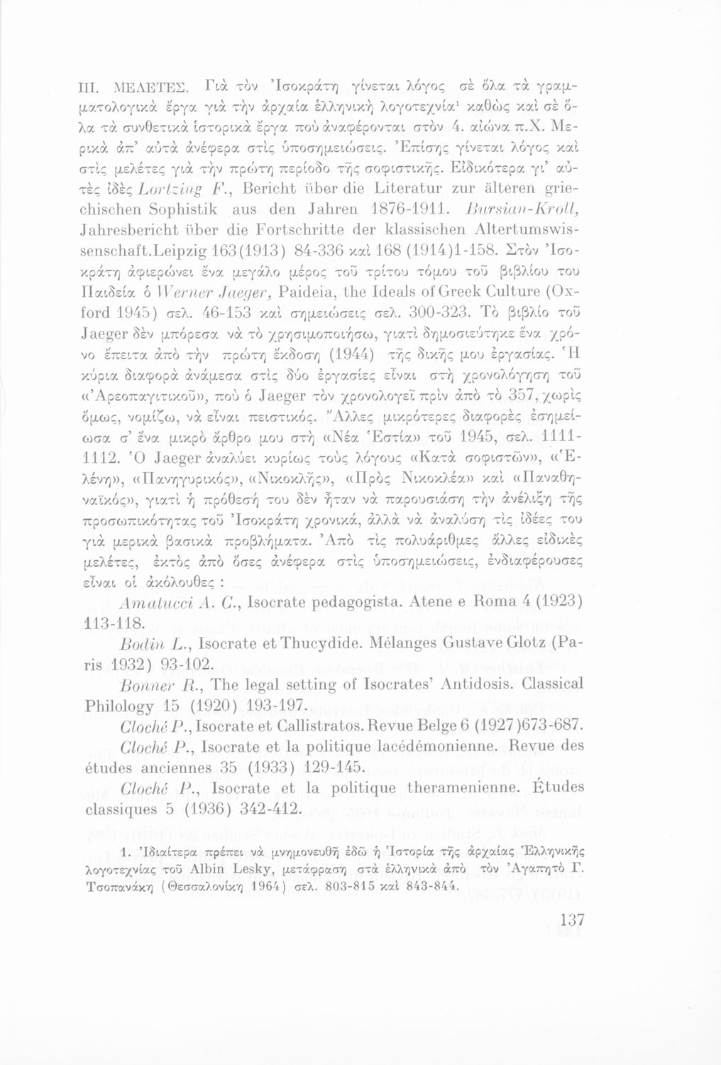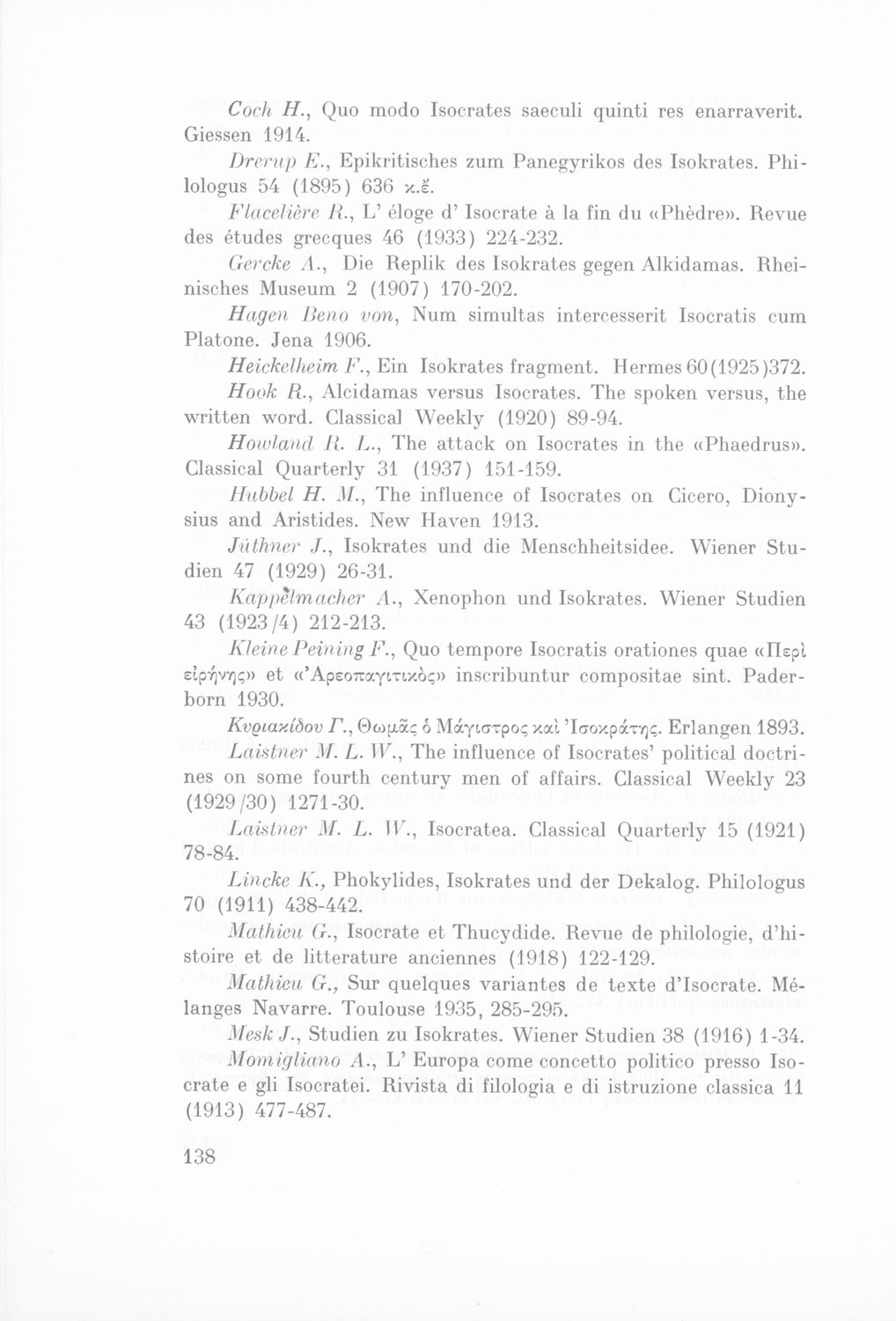 Παιδαγωγικό βοήθημα για τους καθηγητές των αρχαίων για το έργο του Ισοκράτη και του ρητορικού και φιλοσοφικού λόγου. Εκδόθηκε από το Εκπαιδευτικό Ινστιτούτο για τη σειρά της Επιστημονικής Βιβλιοθήκης.