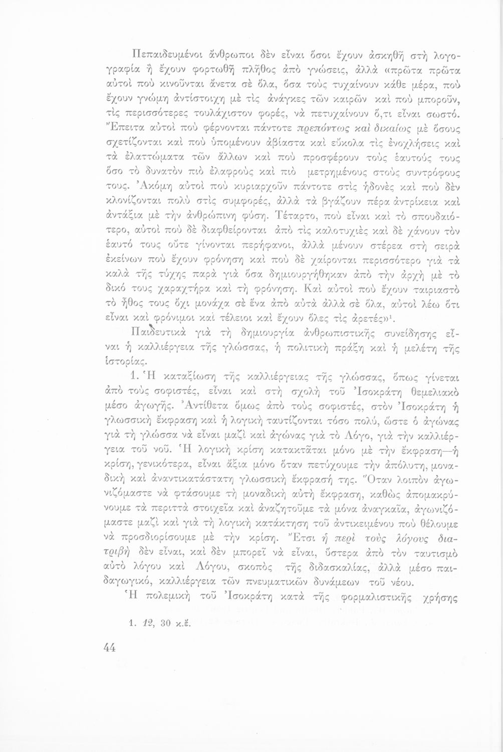Παιδαγωγικό βοήθημα για τους καθηγητές των αρχαίων για το έργο του Ισοκράτη και του ρητορικού και φιλοσοφικού λόγου. Εκδόθηκε από το Εκπαιδευτικό Ινστιτούτο για τη σειρά της Επιστημονικής Βιβλιοθήκης.