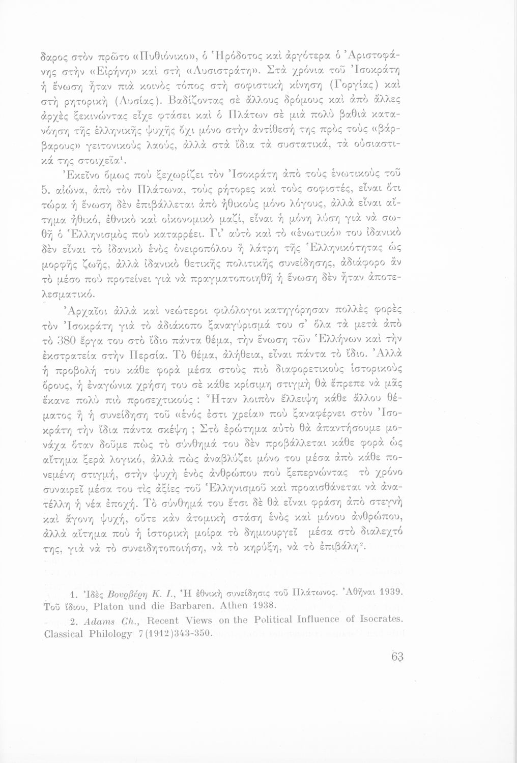 Παιδαγωγικό βοήθημα για τους καθηγητές των αρχαίων για το έργο του Ισοκράτη και του ρητορικού και φιλοσοφικού λόγου. Εκδόθηκε από το Εκπαιδευτικό Ινστιτούτο για τη σειρά της Επιστημονικής Βιβλιοθήκης.