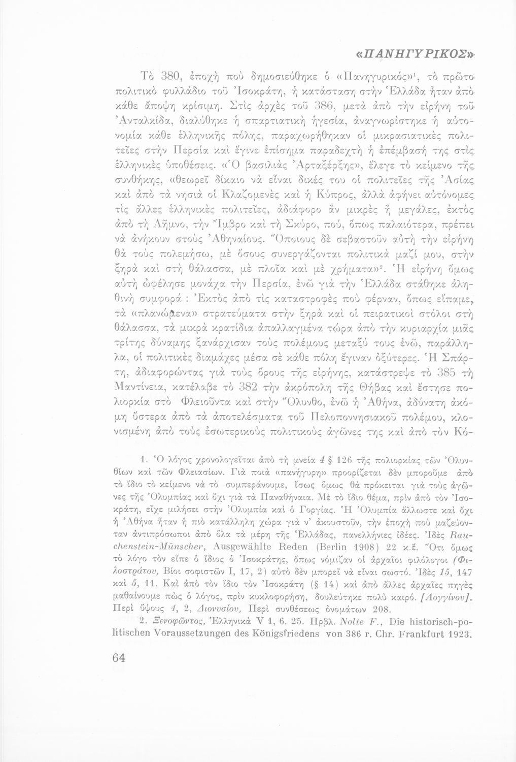 Σχολικό εγχειρίδιο Αρχαίων Ελληνικών Α΄ Λυκείου που περιλαμβάνει εισαγωγή στη ζωή και το έργο του Ισοκράτη, τον Πανηγυρικό, μετάφραση και ερμηνευτικές σημειώσεις.