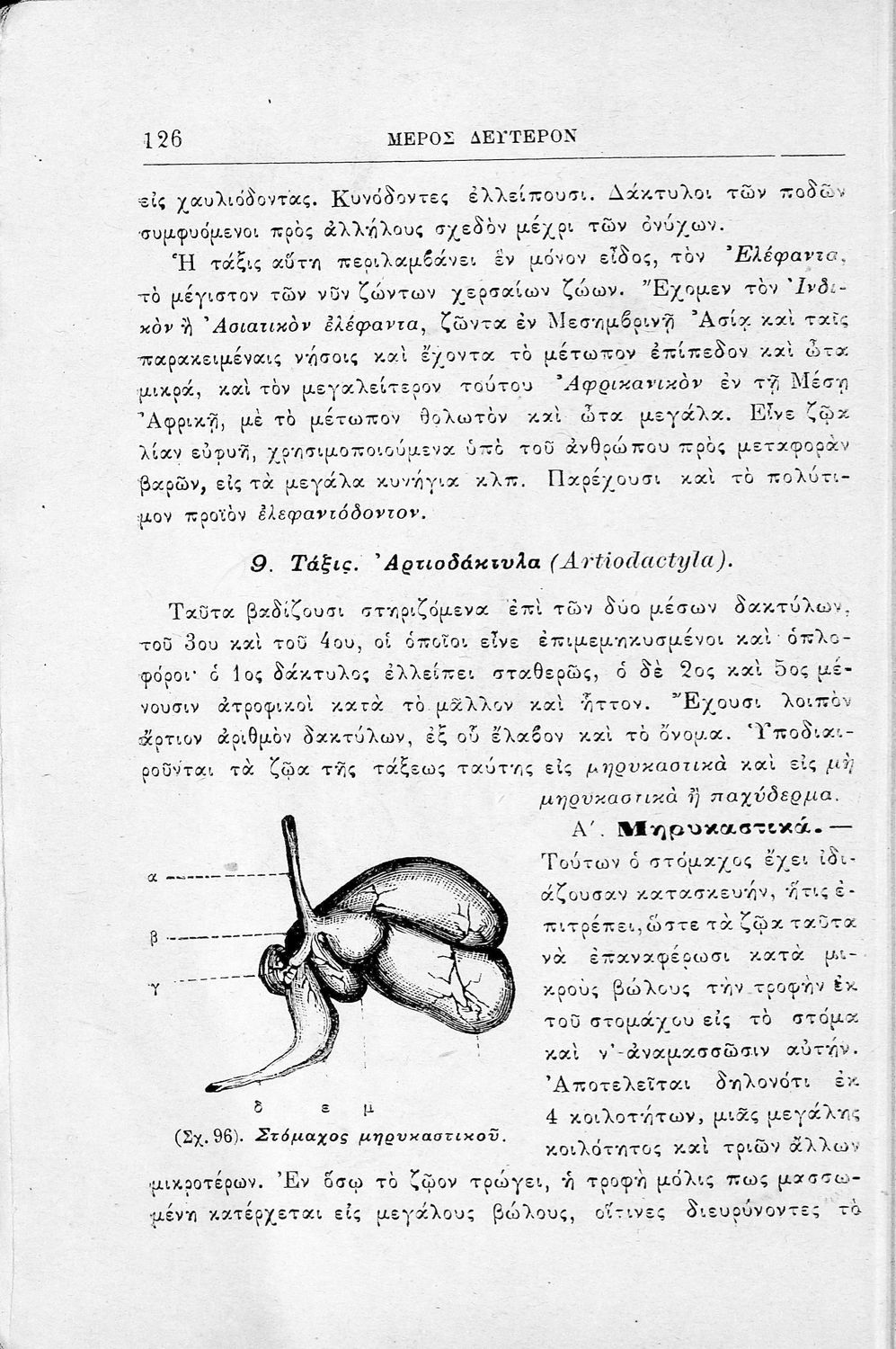 Σχολικό εγχειρίδιο Ζωολογίας για τα Γυμνάσια, τα Παρθεναγωγεία και τα Διδασκαλεία που εστιάζει στην ανθρώπινη φυσιολογία και παρουσιάζει τα διάφορα ζώα ανάλογα με την συνομοταξία στην οποία ανήκουν.