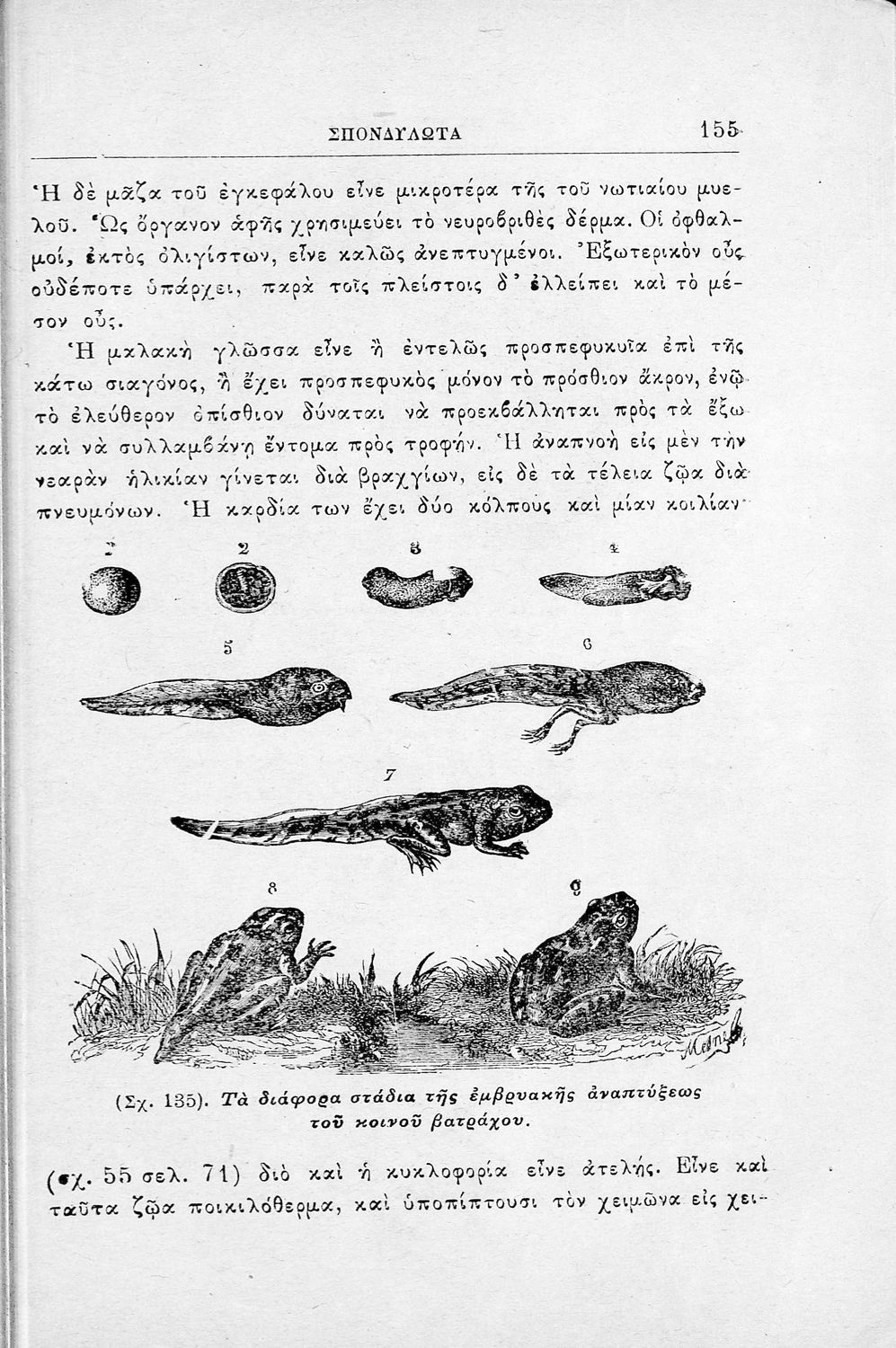 Σχολικό εγχειρίδιο Ζωολογίας για τα Γυμνάσια, τα Παρθεναγωγεία και τα Διδασκαλεία που εστιάζει στην ανθρώπινη φυσιολογία και παρουσιάζει τα διάφορα ζώα ανάλογα με την συνομοταξία στην οποία ανήκουν.