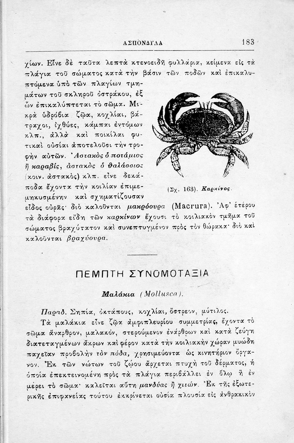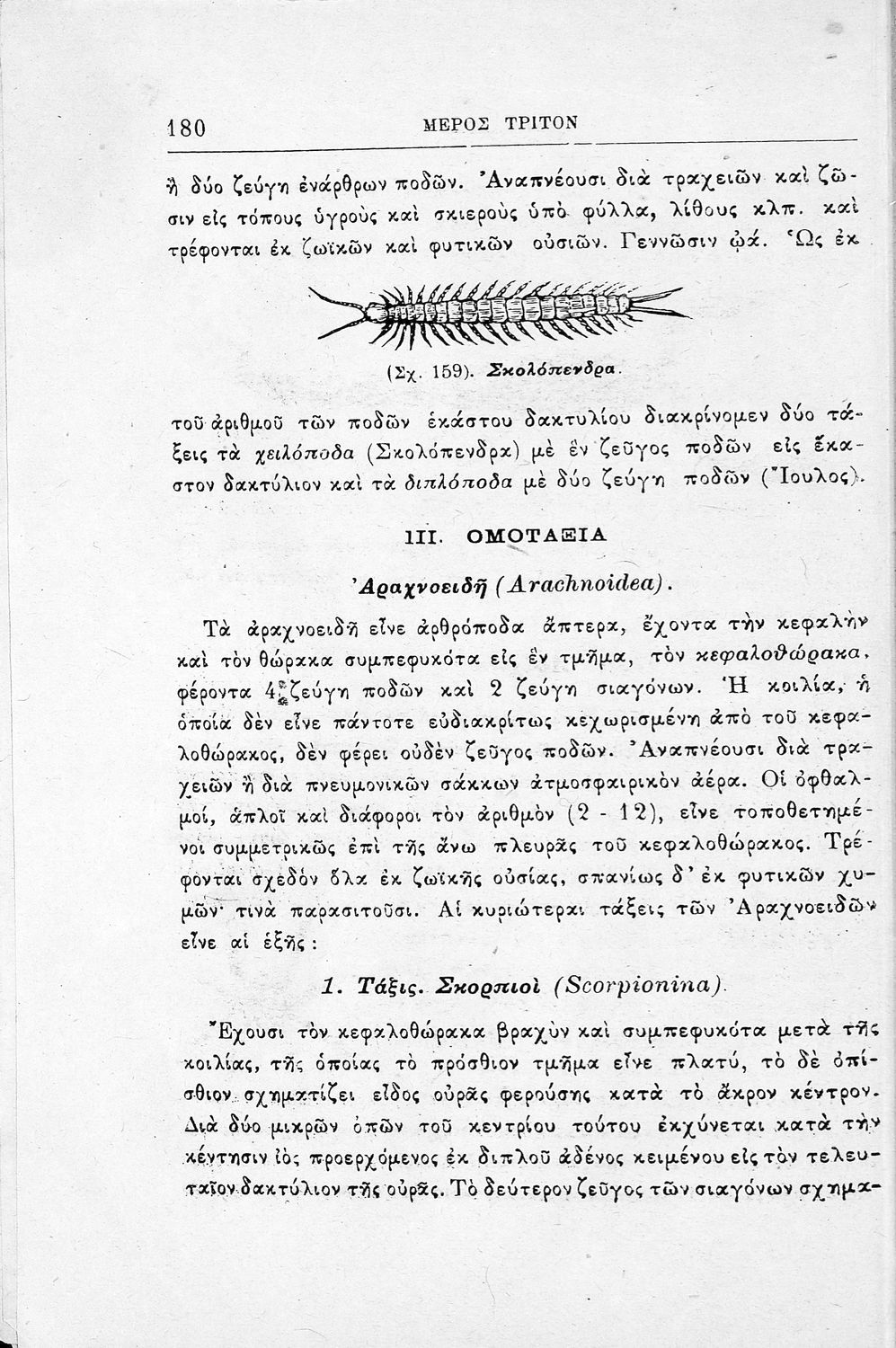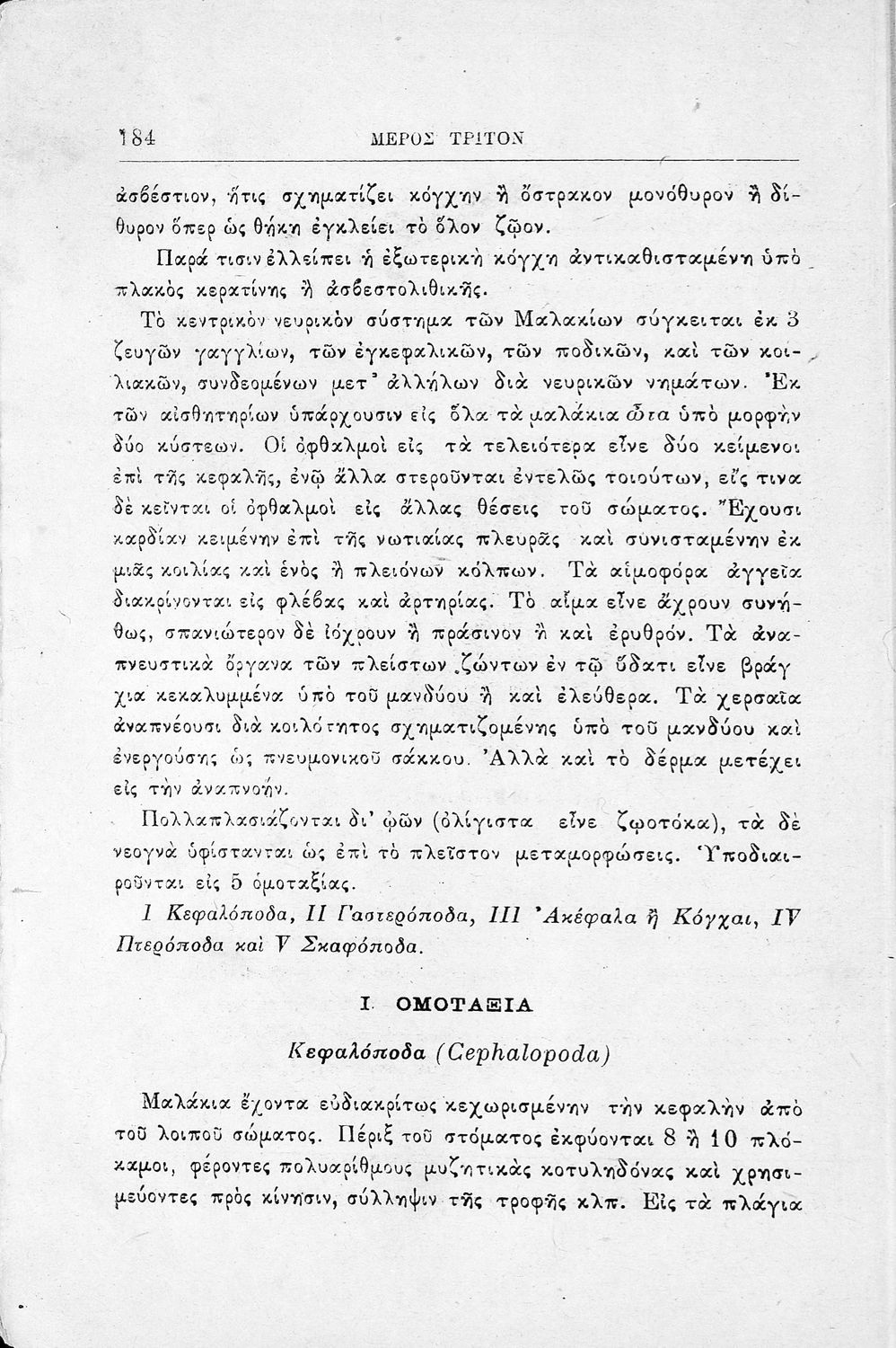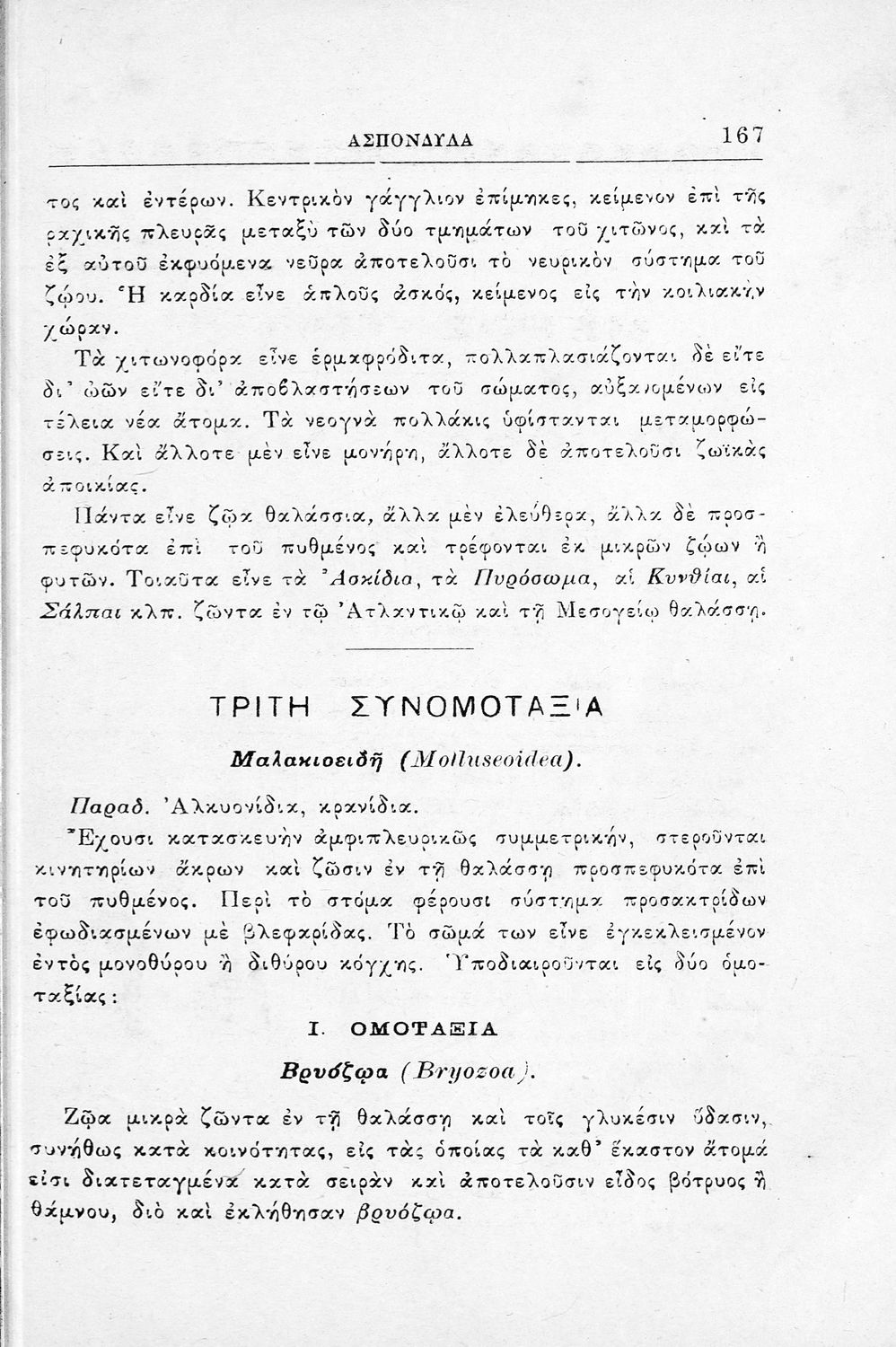 Σχολικό εγχειρίδιο Ζωολογίας για τα Γυμνάσια, τα Παρθεναγωγεία και τα Διδασκαλεία που εστιάζει στην ανθρώπινη φυσιολογία και παρουσιάζει τα διάφορα ζώα ανάλογα με την συνομοταξία στην οποία ανήκουν.