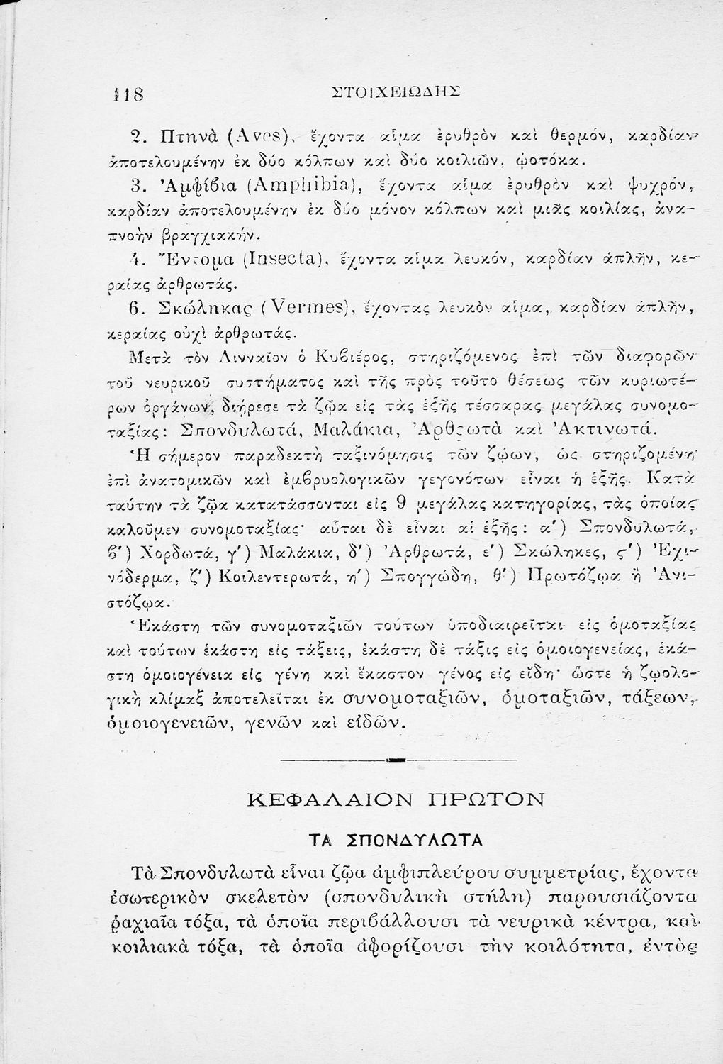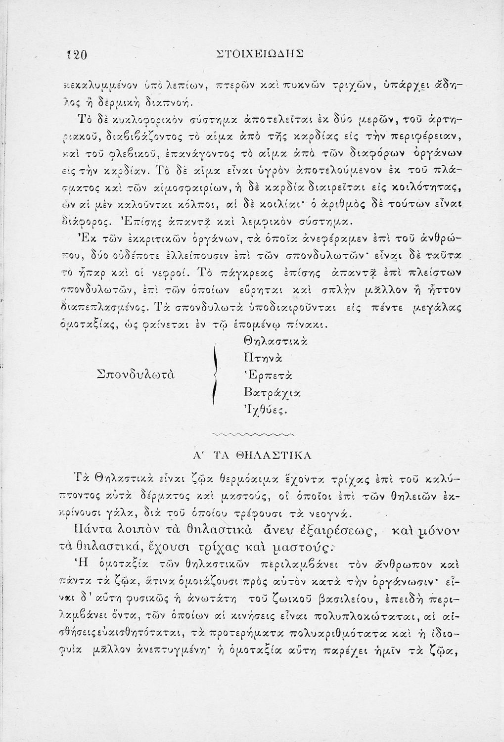 Τίτλος: Στοιχειώδης ζωολογία περιλαμβάνουσα συντόμως την ανατομικήν, την ιστολογίαν και την φυσιολογίαν του ανθρώπου και σύντομον φυσικήν ιστορίαν των ζώων προς χρήσιν των Γυμνασίων και Διδασκαλείων
