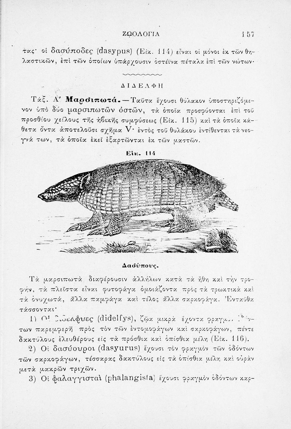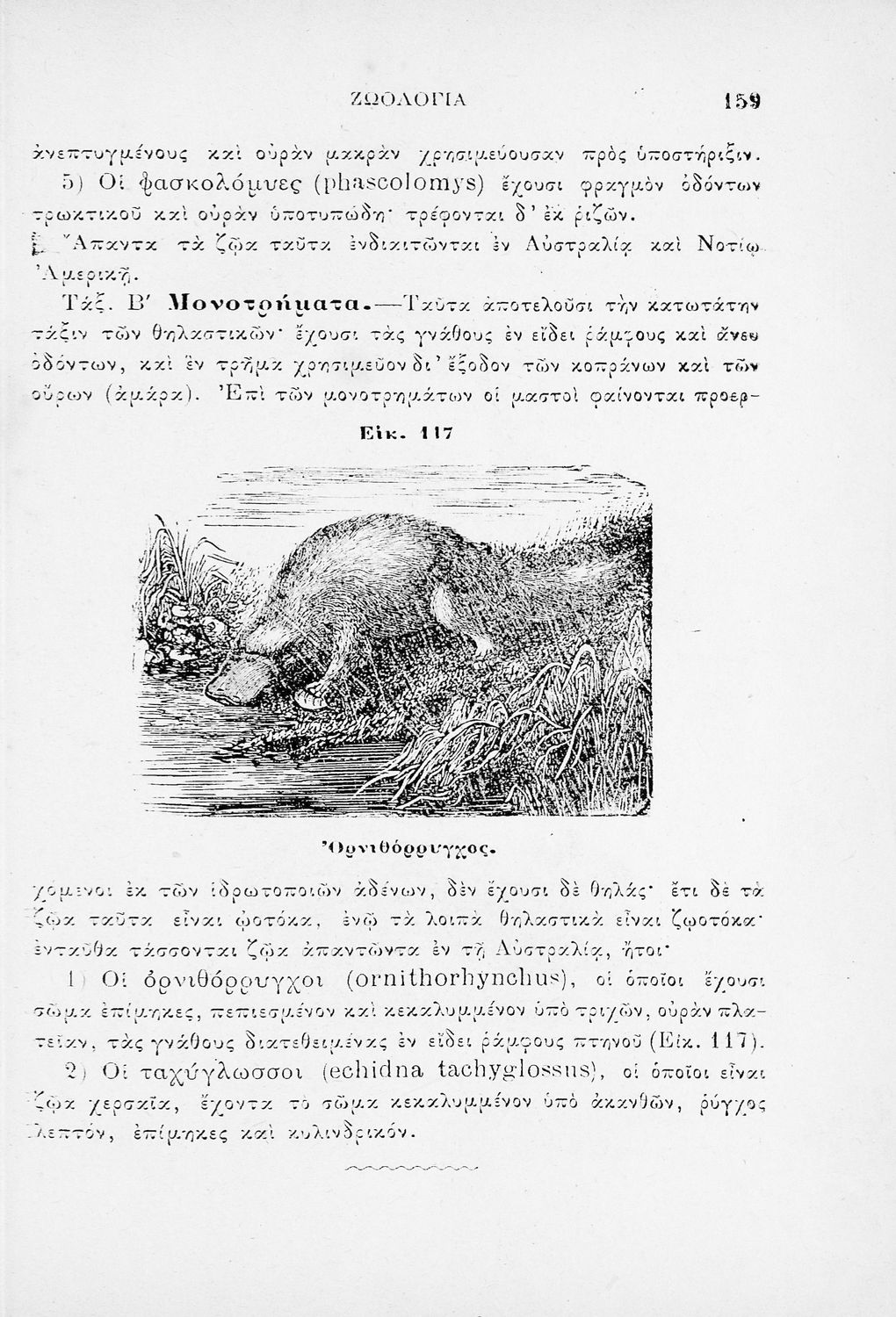 Σχολικό εγχειρίδιο Ζωολογίας για τα Γυμνάσια, τα Διδασκαλεία και τα Παρθεναγωγεία που εστιάζει στην ανθρώπινη φυσιολογία και ανατομία και παρουσιάζει τα διάφορα ζώα ανάλογα με την συνομοταξία στην οποία ...